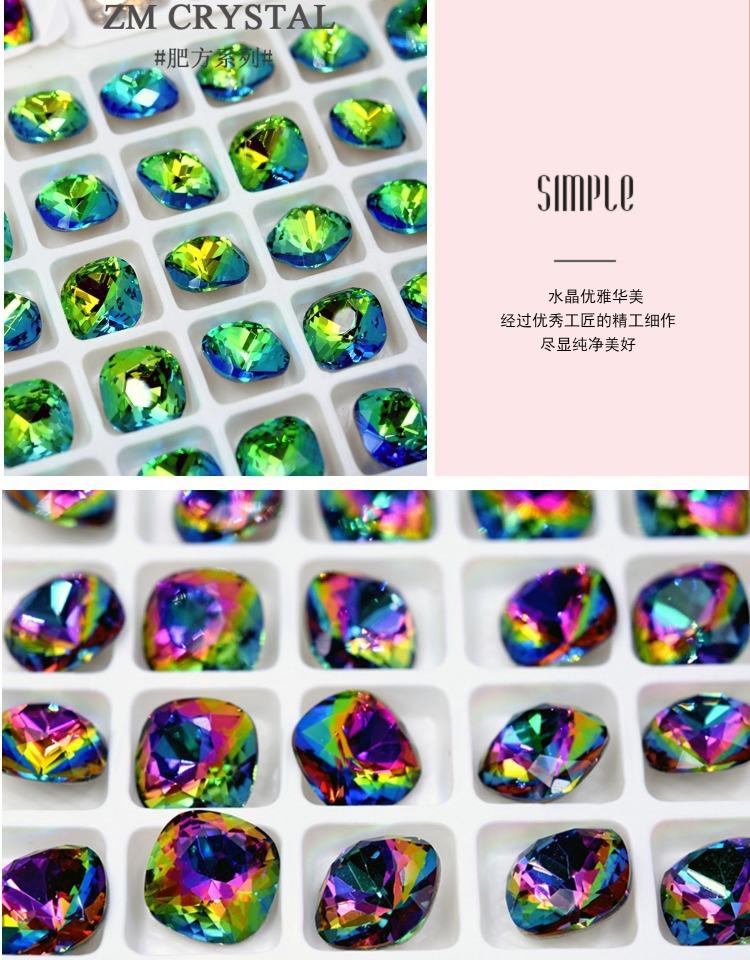 K9 nuevo diamante de taladro para uñas cuadrado gordo de 10 mm de fondo puntiagudo Súper Flash pila diamante uña diamante tridimensional DIY pegado de uñas de vidrio Diamante