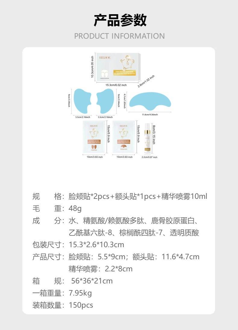 Cheek patch*2pcs+forehead patch*1pcs+ essence spray 10ml