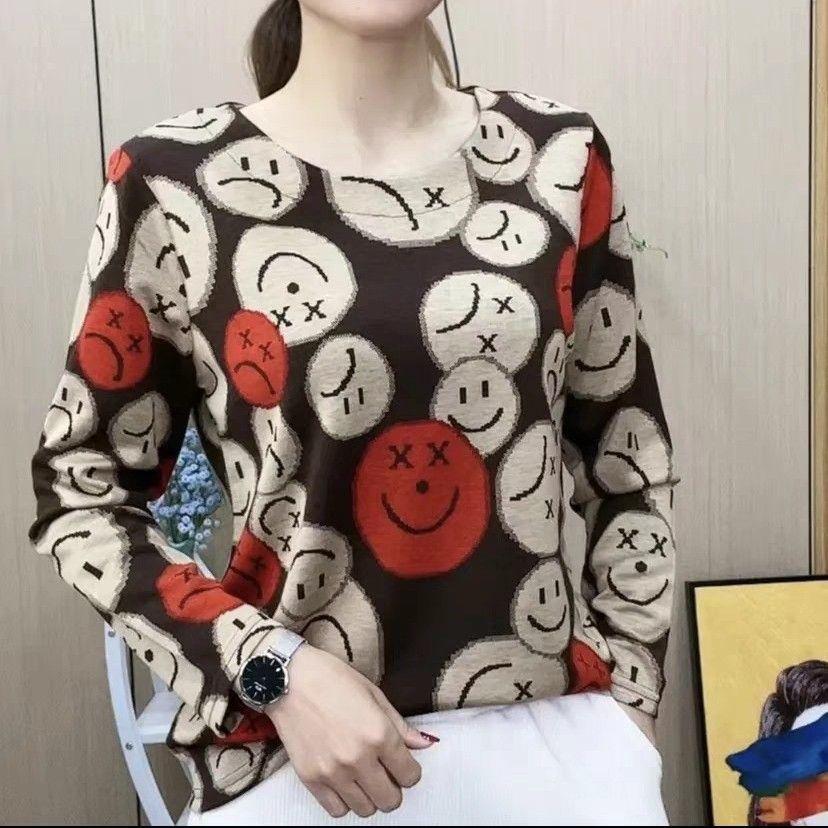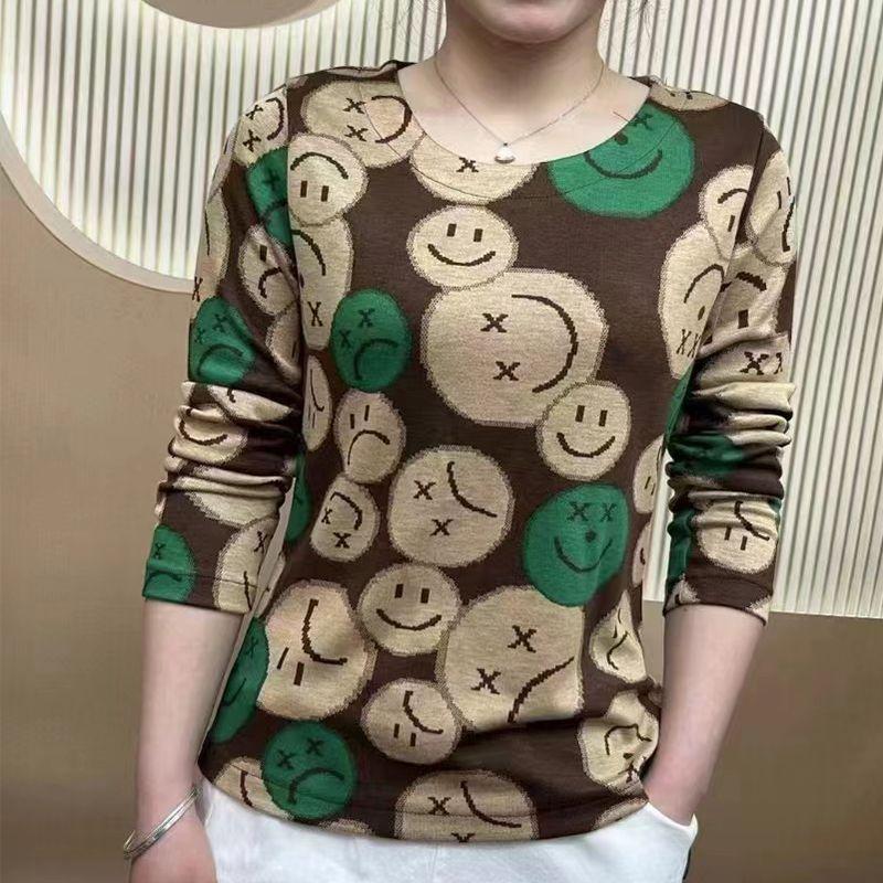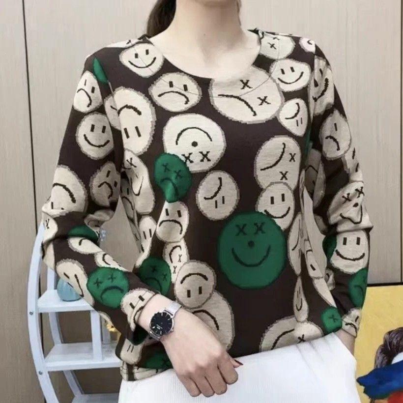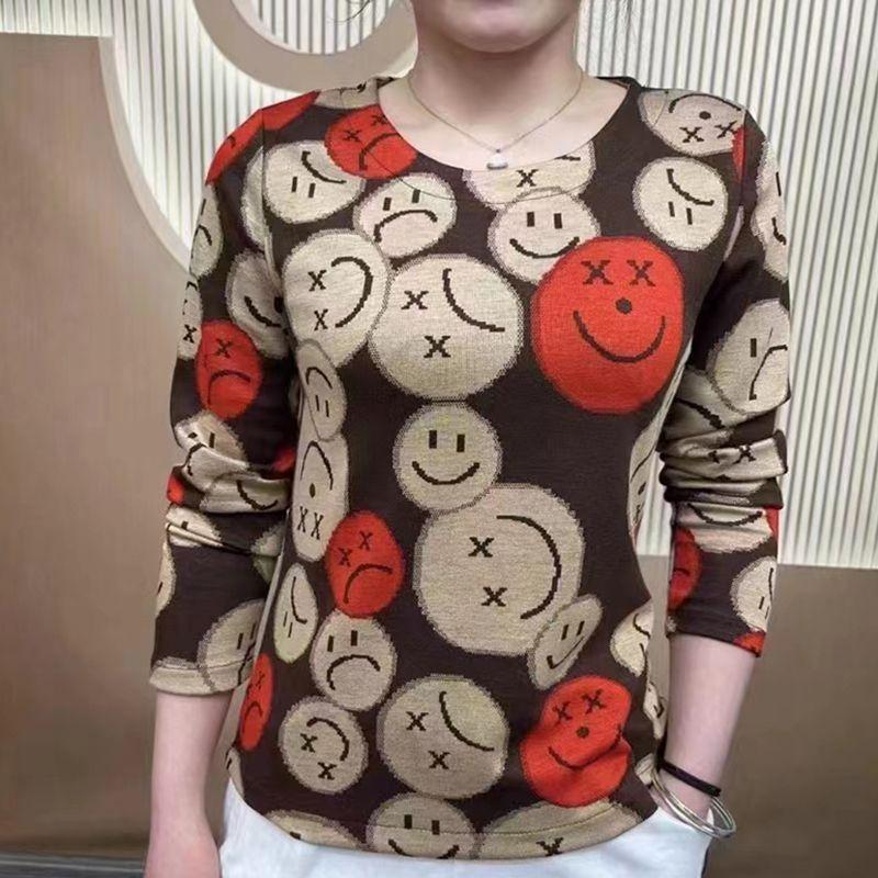 Nueva camiseta básica de manga larga para mujeres de mediana edad y mayores, de primavera y otoño, estilo informal, con cuello redondo, estilo occidental.