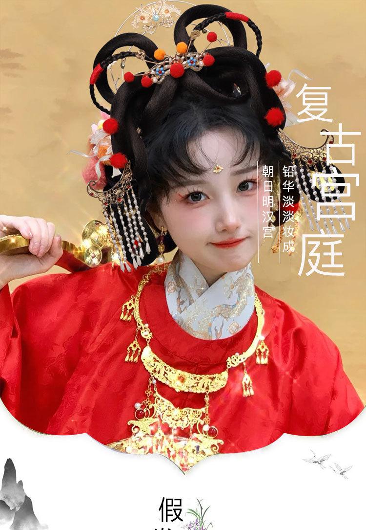 Hanfu Antiguo Año Nuevo Pequeño Dios de la Riqueza Accesorios para el Cabello Combinación de Peluca Pereza Combinación Libre Super Versátil Nuevo Estilo Retro Chino