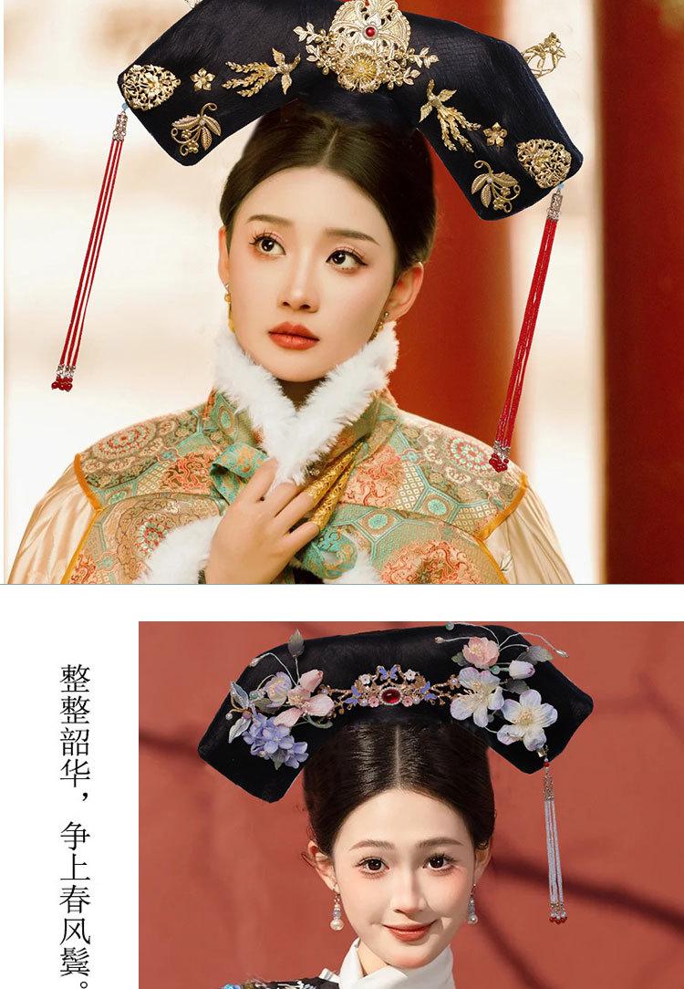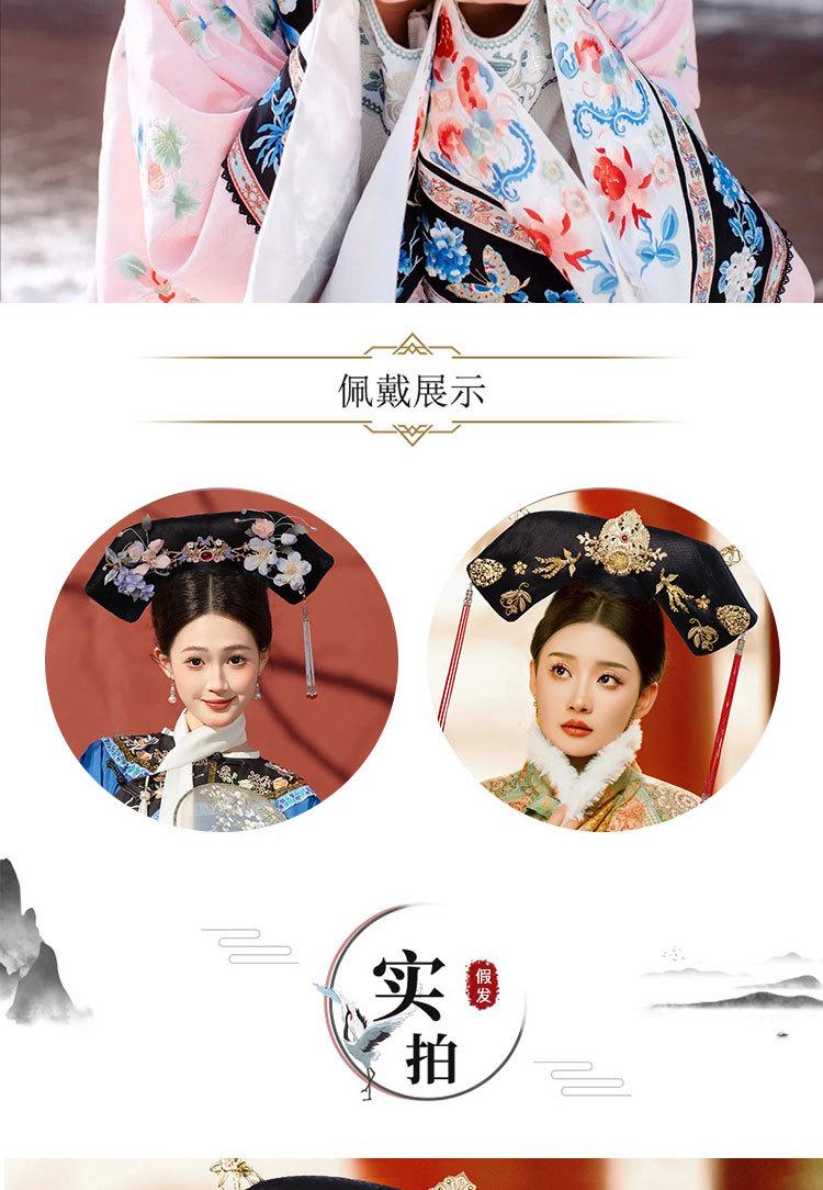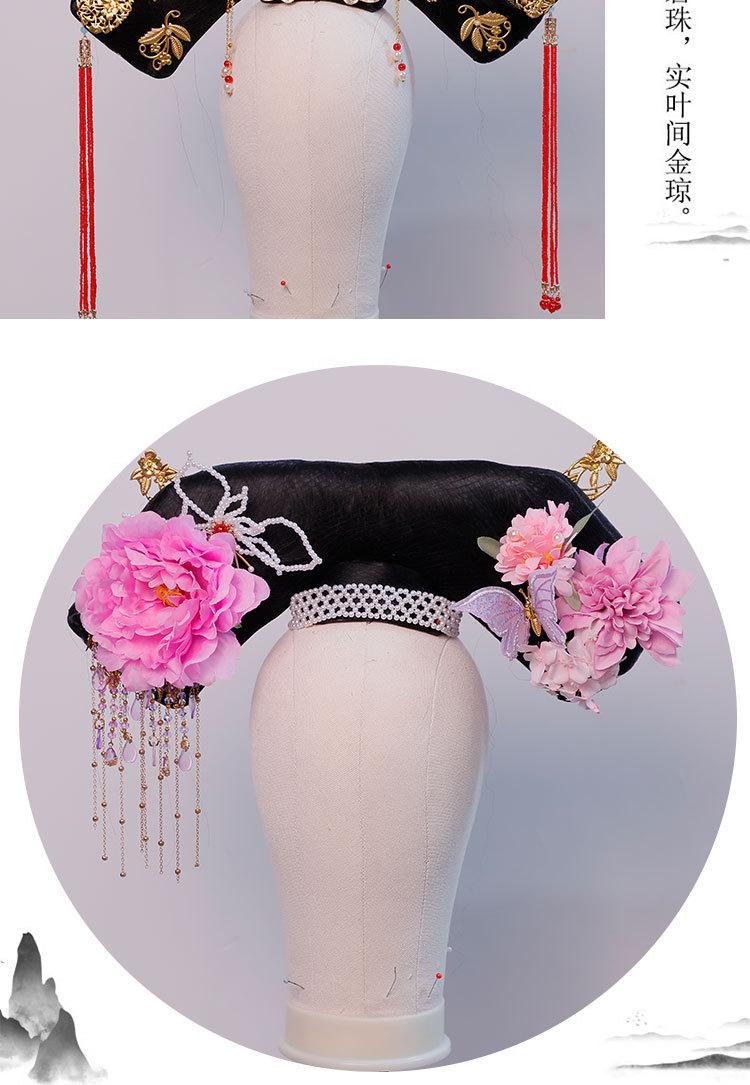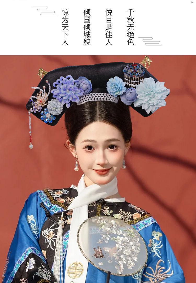 Tocado con bandera de traje antiguo, peinado de emperatriz imperial de la dinastía Qing, concubina Gege, bolsa para el cabello con foto de corte antigua, adorno para la cabeza con bandera