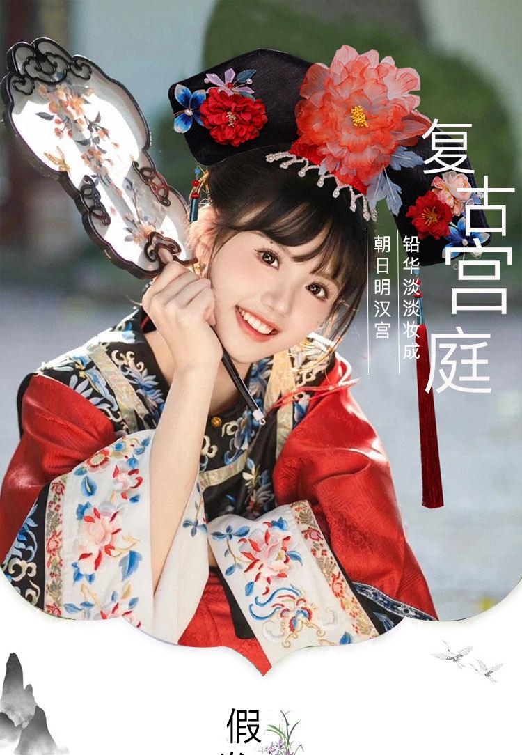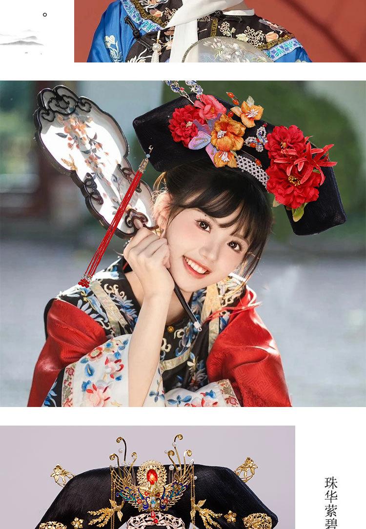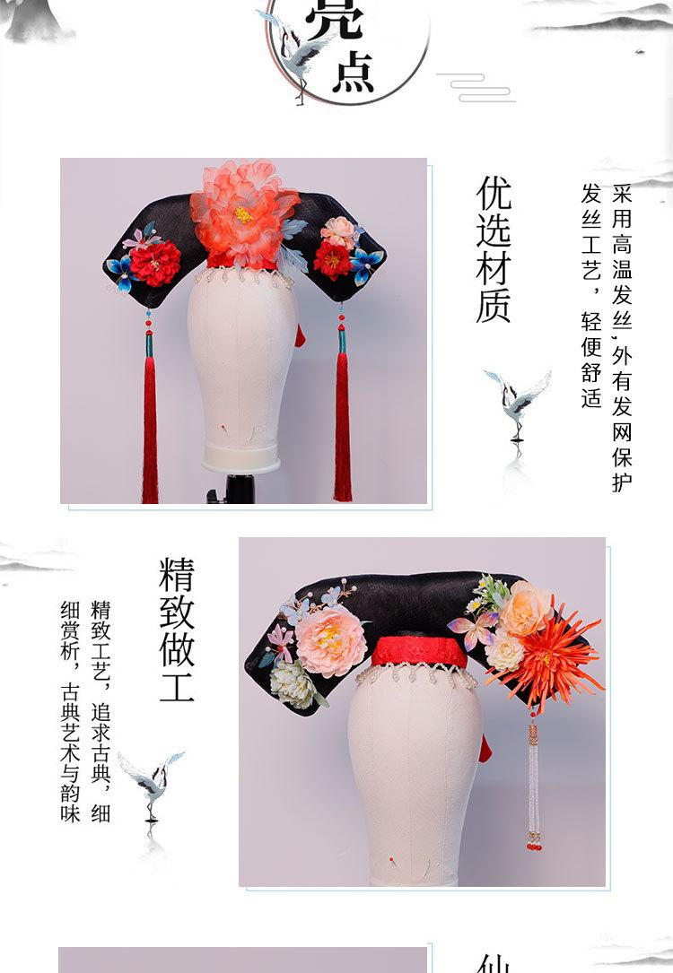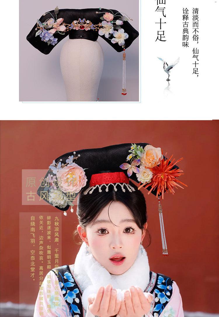 Tocado con bandera de traje antiguo, peinado de emperatriz imperial de la dinastía Qing, concubina Gege, bolsa para el cabello con foto de corte antigua, adorno para la cabeza con bandera