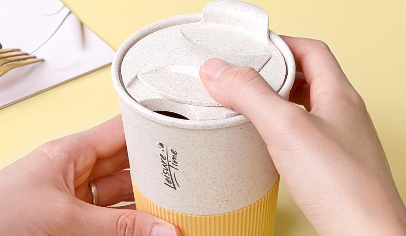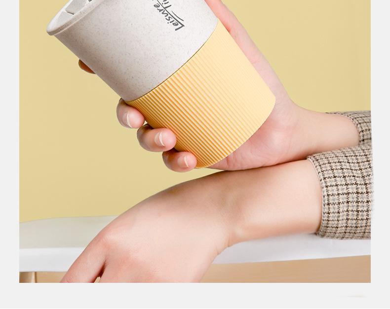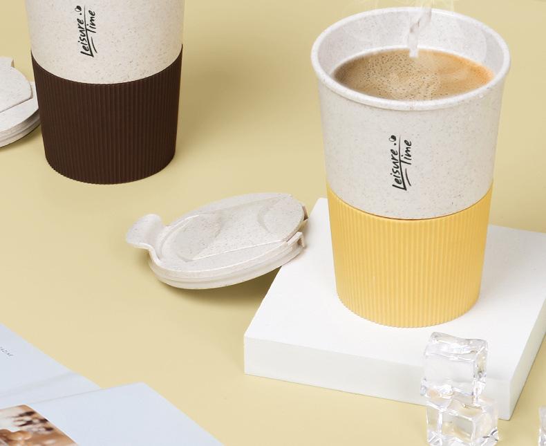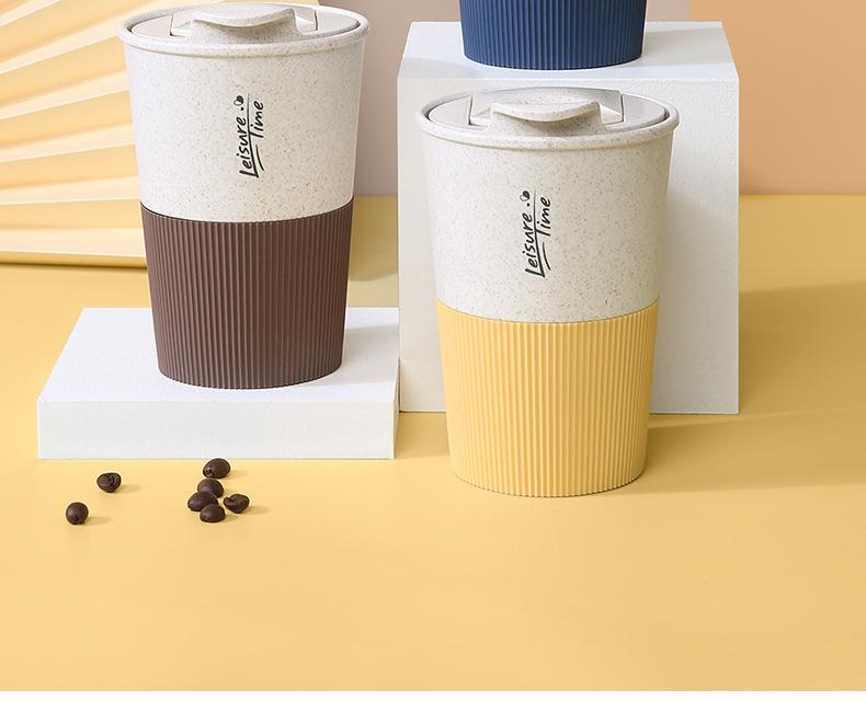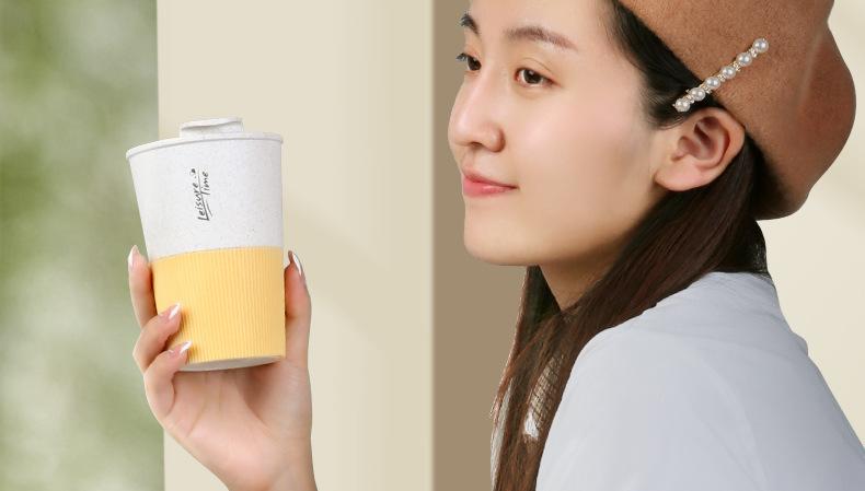 Taza de café japonesa estilo ins, taza práctica para parejas, taza portátil de paja de trigo, taza de café para llevar, 400 ml