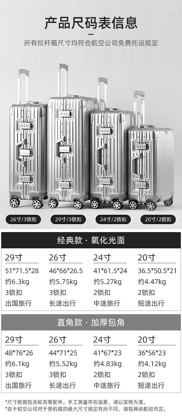 Equipaje de Aluminio Magnesio Todo Aluminio Maleta Trolley con Marco de Aluminio Caja con Contraseña 20 pulgadas Maleta de Mano 24 Dropshipping Rueda de Avión