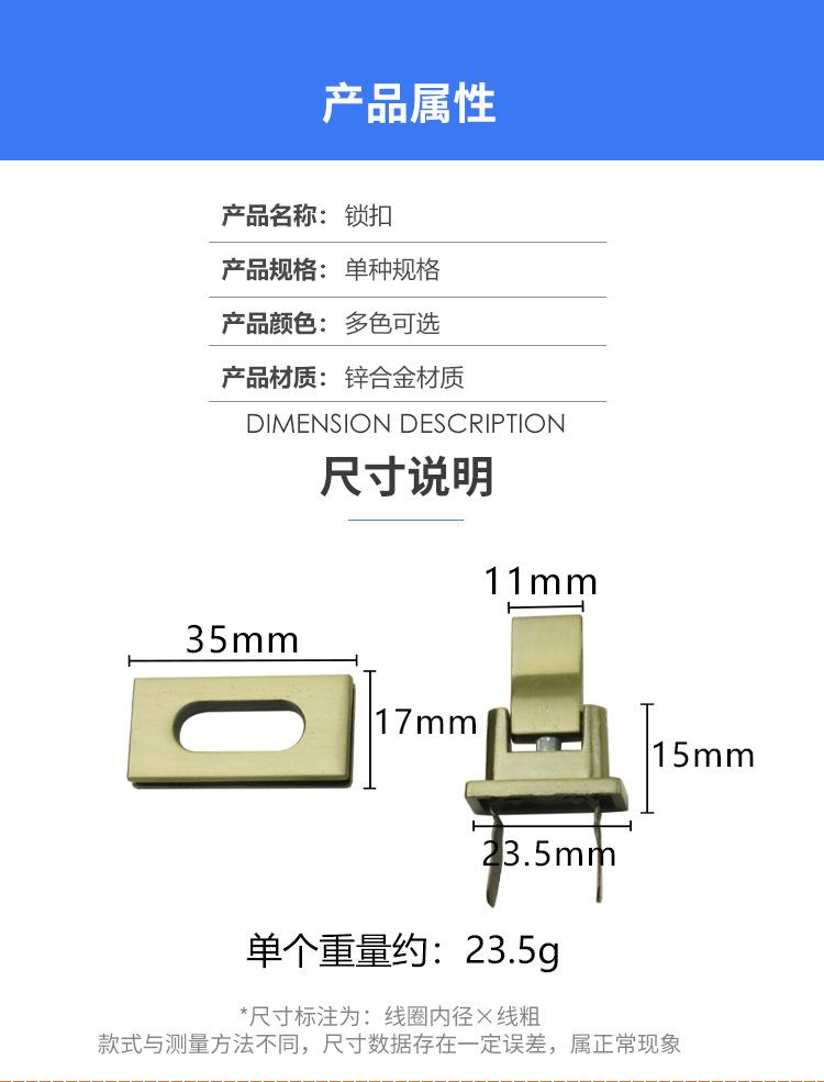 Accesorios de hardware para equipaje al por mayor, cerradura de tornillo de fundición a presión dorada, cerradura de bloqueo ovalada, hebilla de bloqueo para bolso, accesorios de hardware