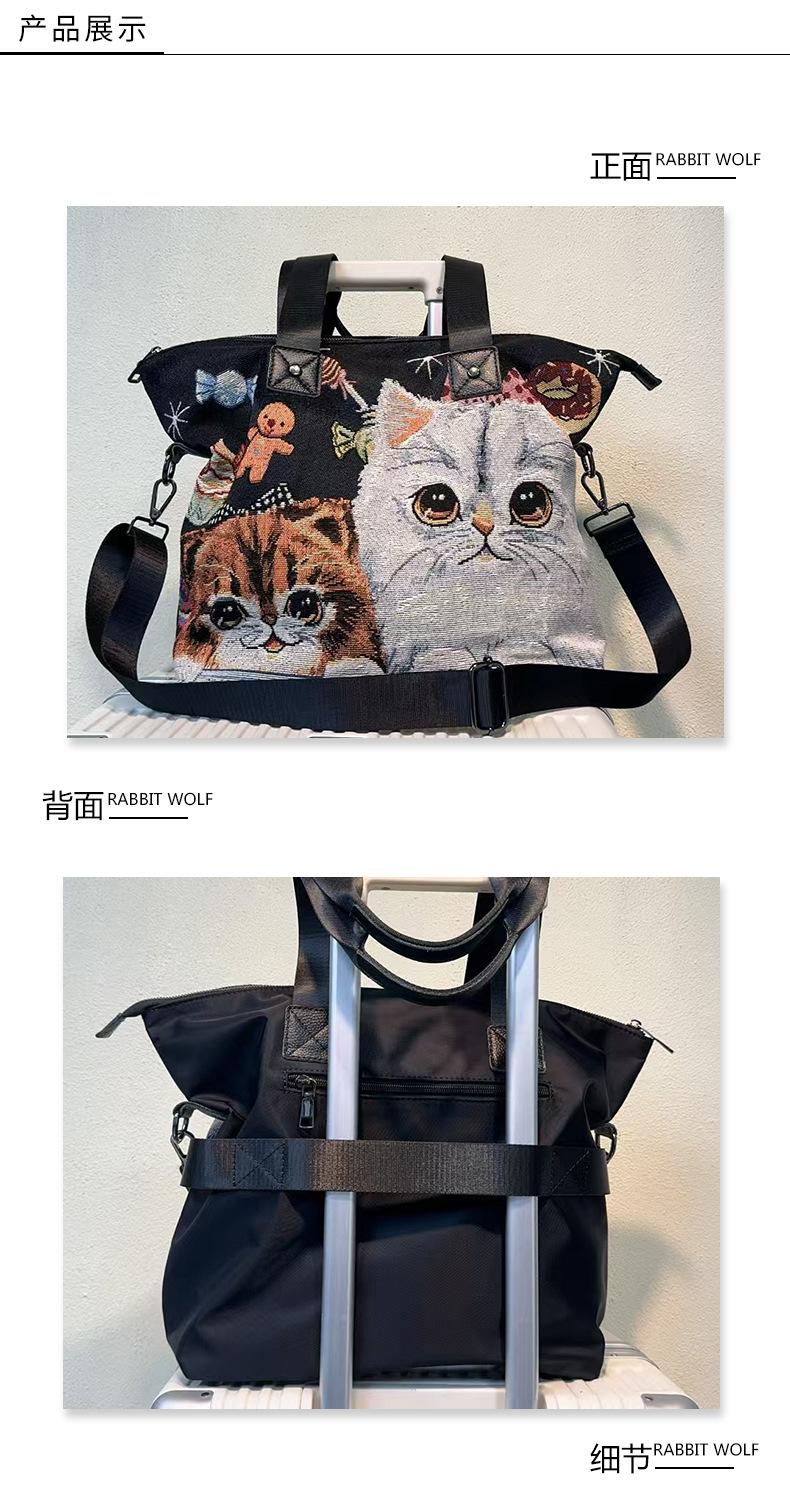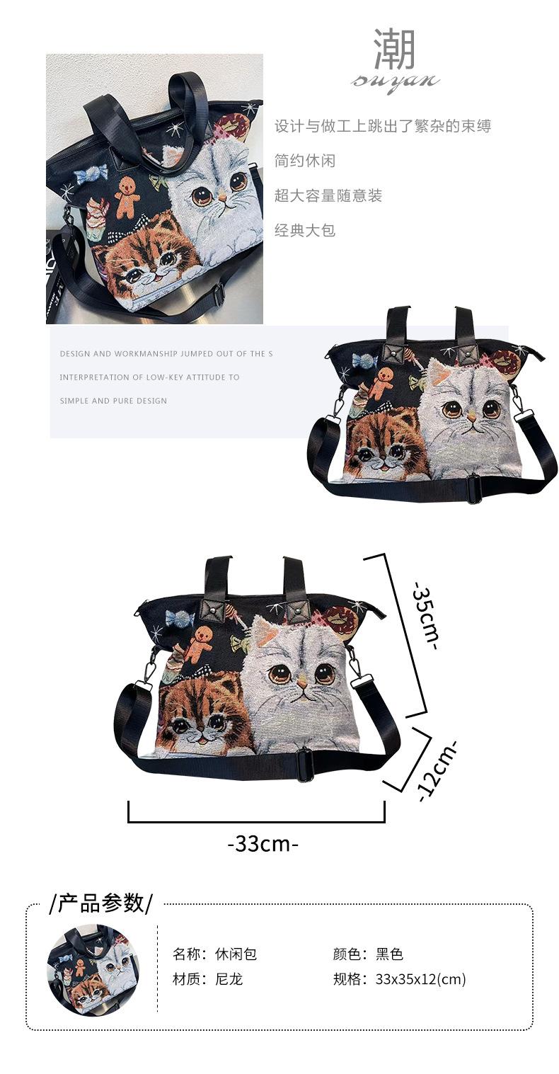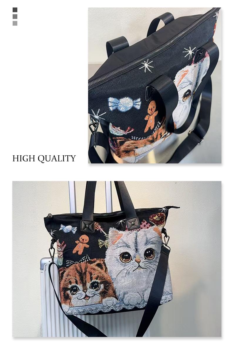Bolso de Mujer de Moda Nuevo Bolso de Hombro Nylon Portátil Bolso Cruzado Moda Bordado Lindo Gato Bolso Casual Bolso para Ir al Trabajo