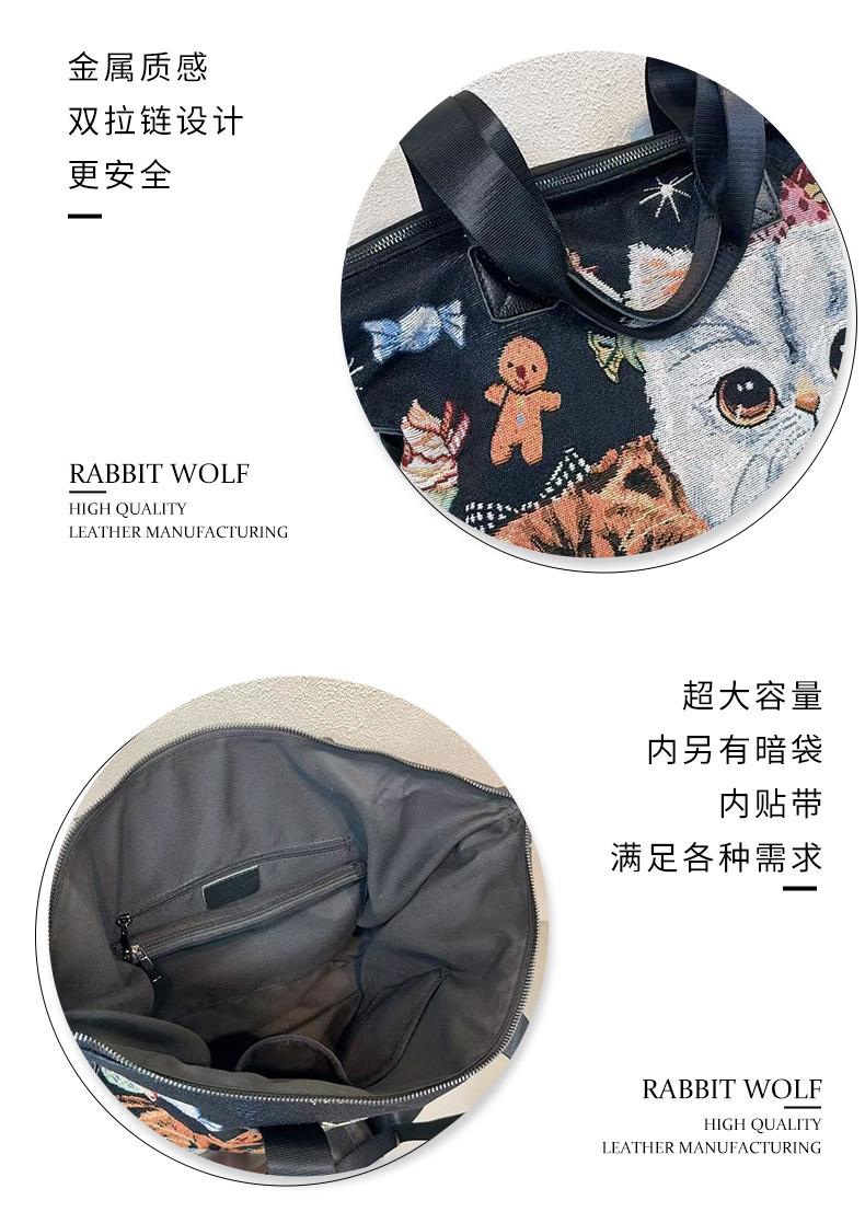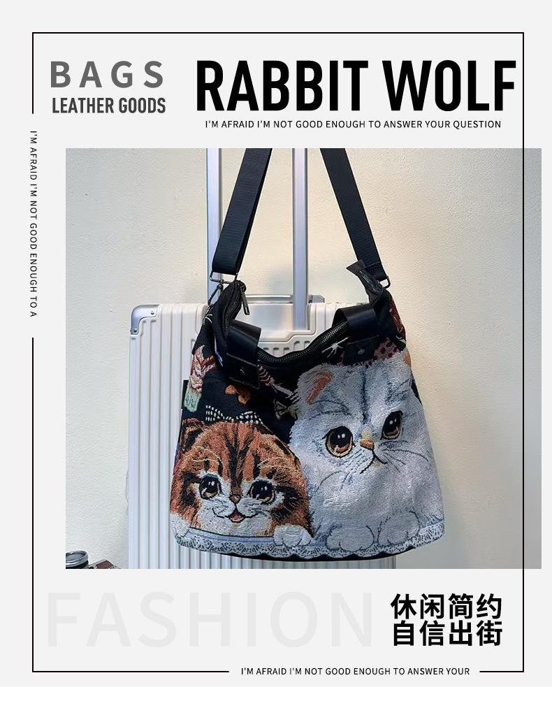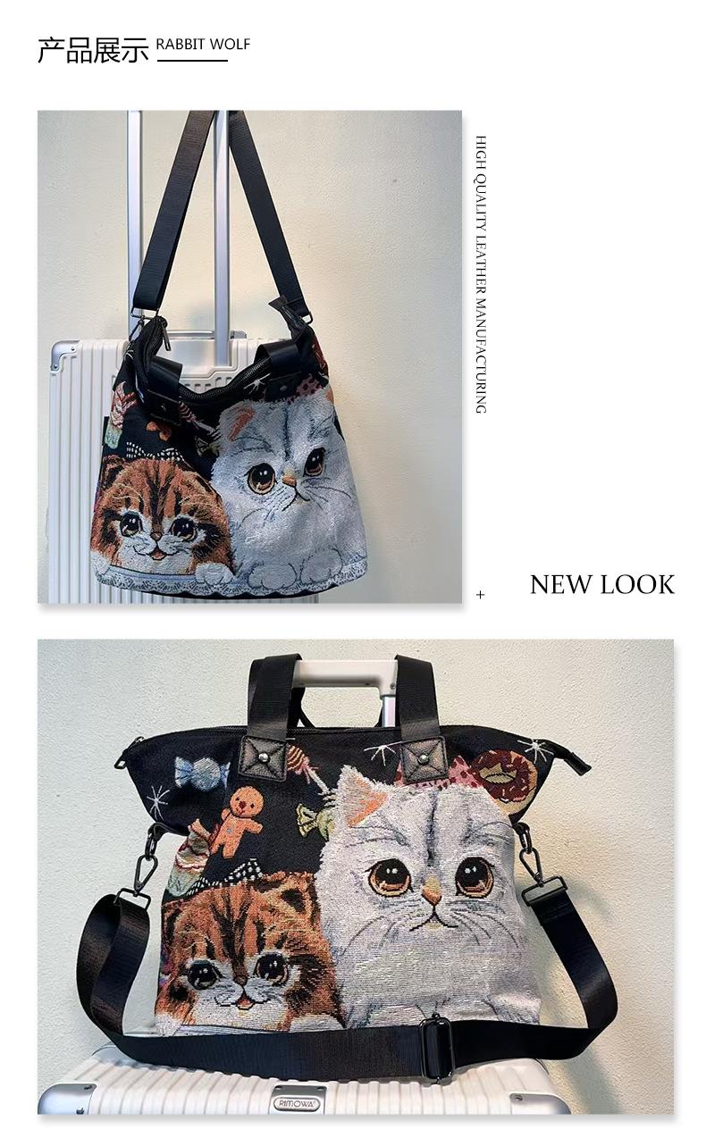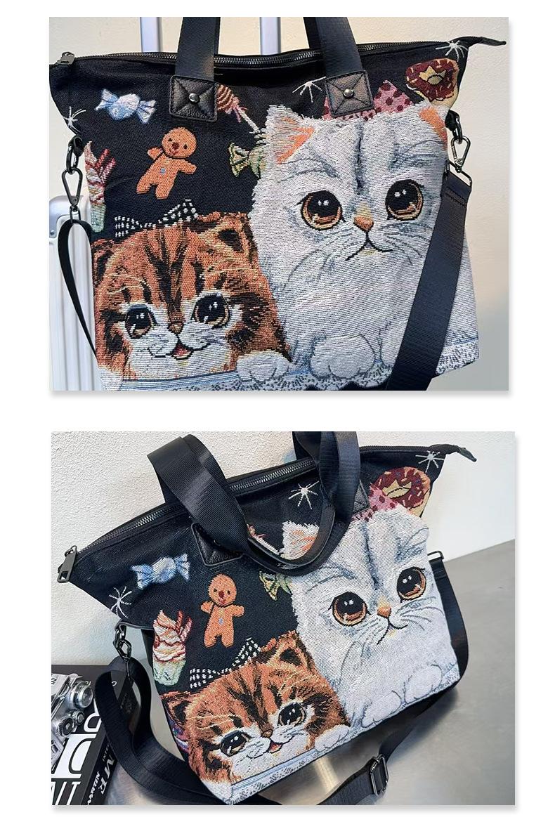 Bolso de Mujer de Moda Nuevo Bolso de Hombro Nylon Portátil Bolso Cruzado Moda Bordado Lindo Gato Bolso Casual Bolso para Ir al Trabajo