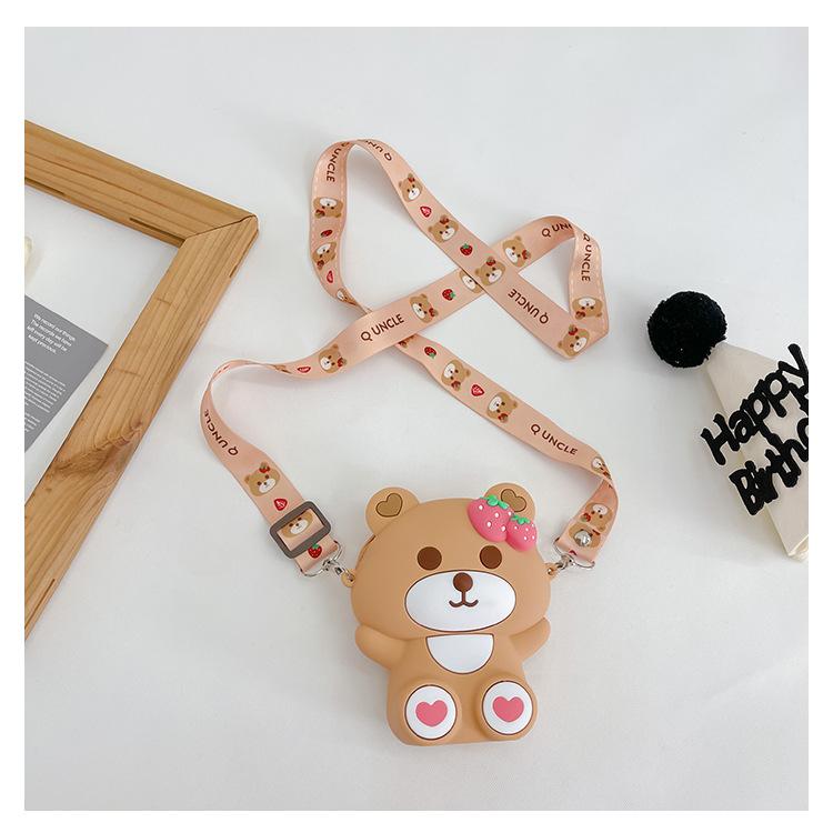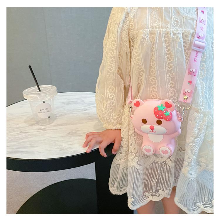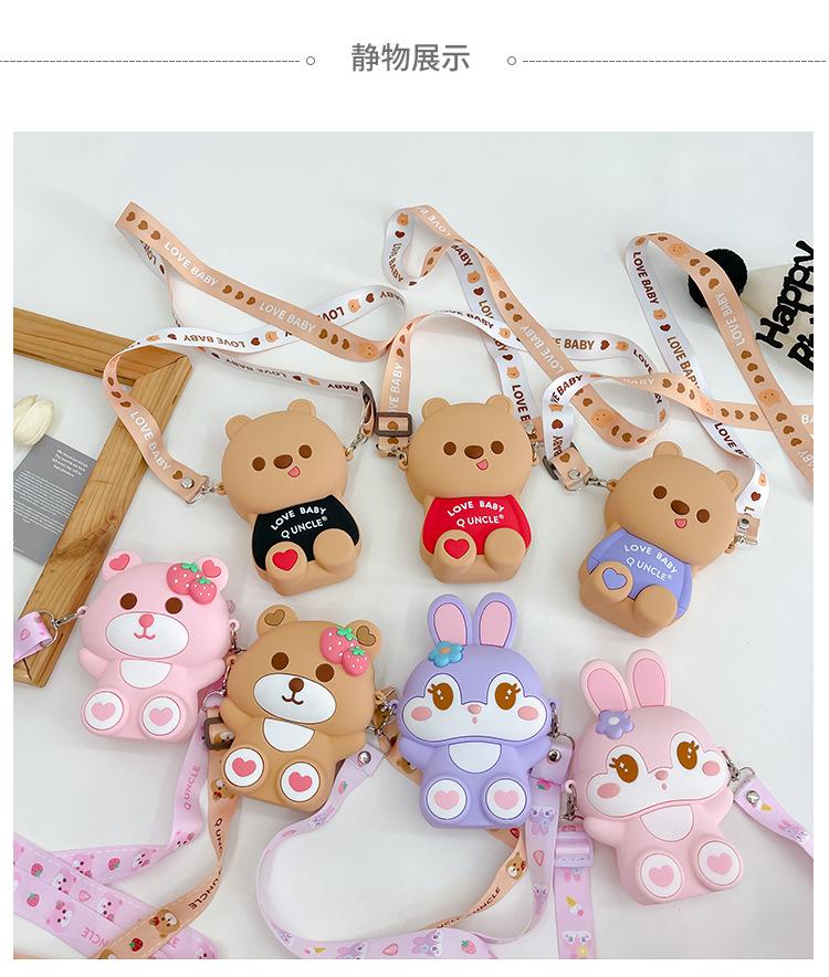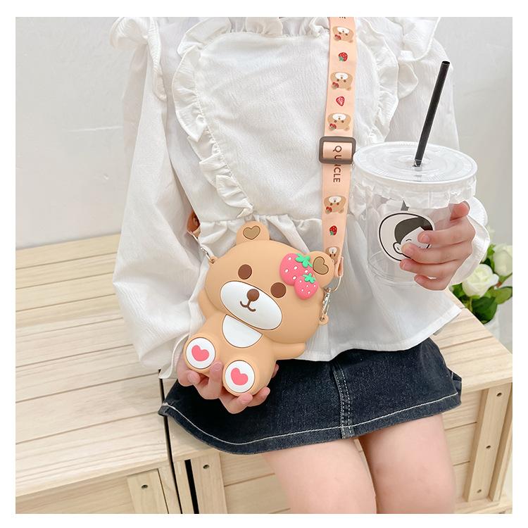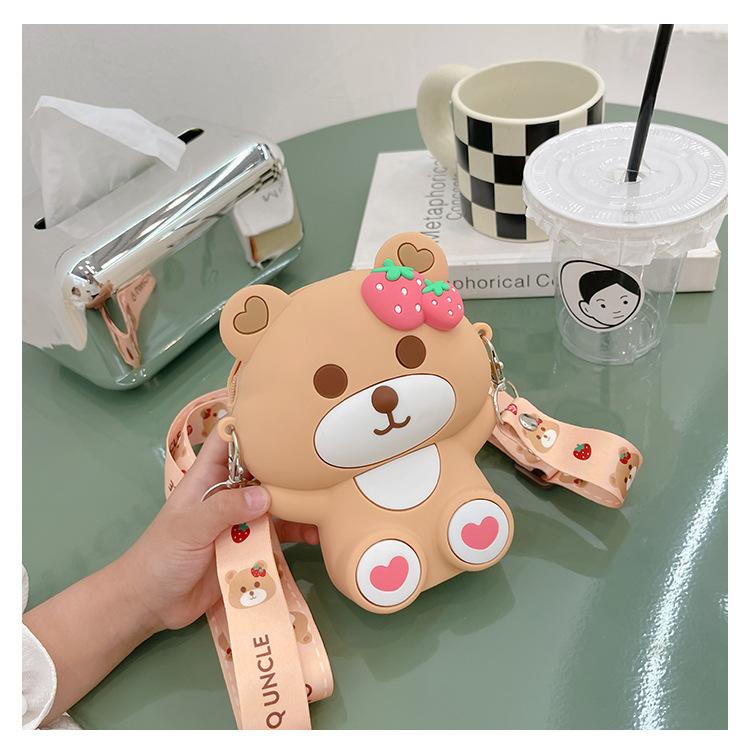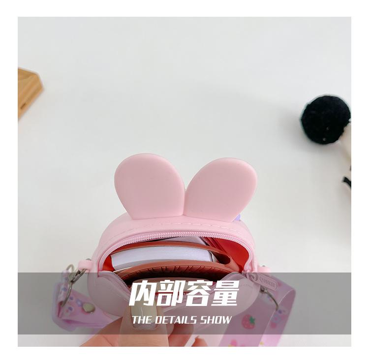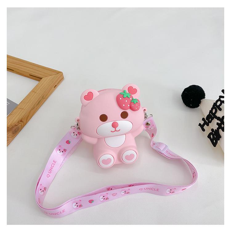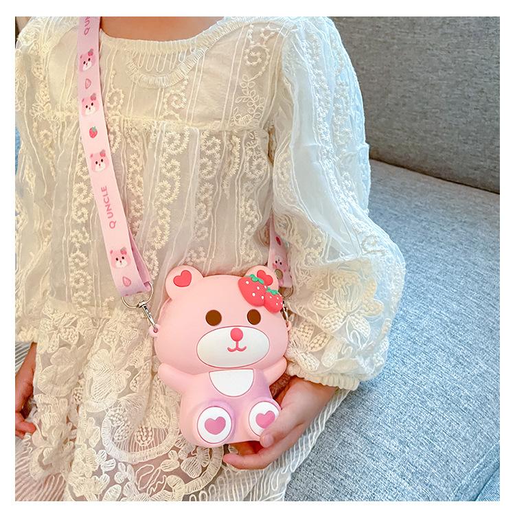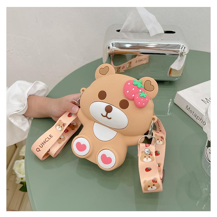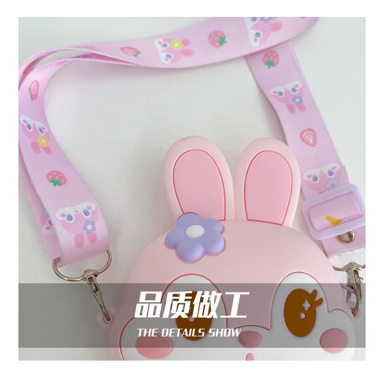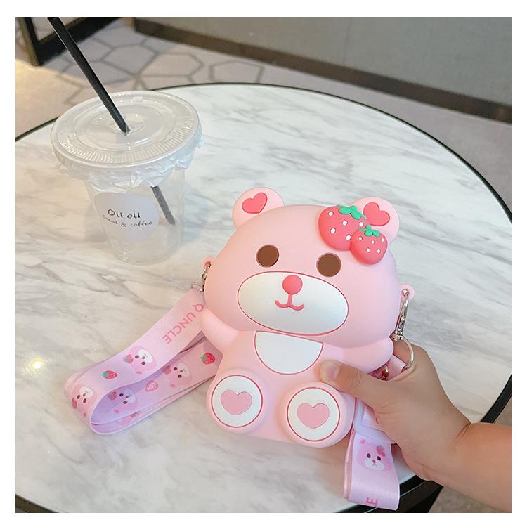 Nuevo y lindo monedero de silicona con forma de conejo para niños, con diseño de oso de fresa y un solo hombro, en diagonal.