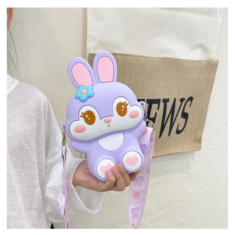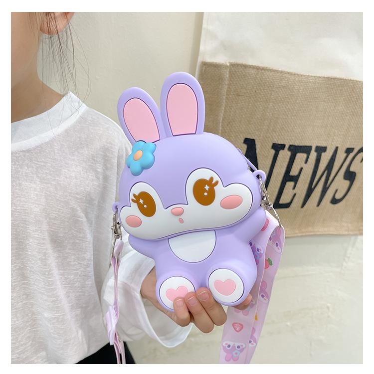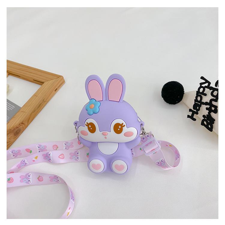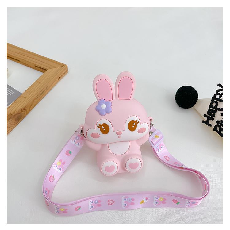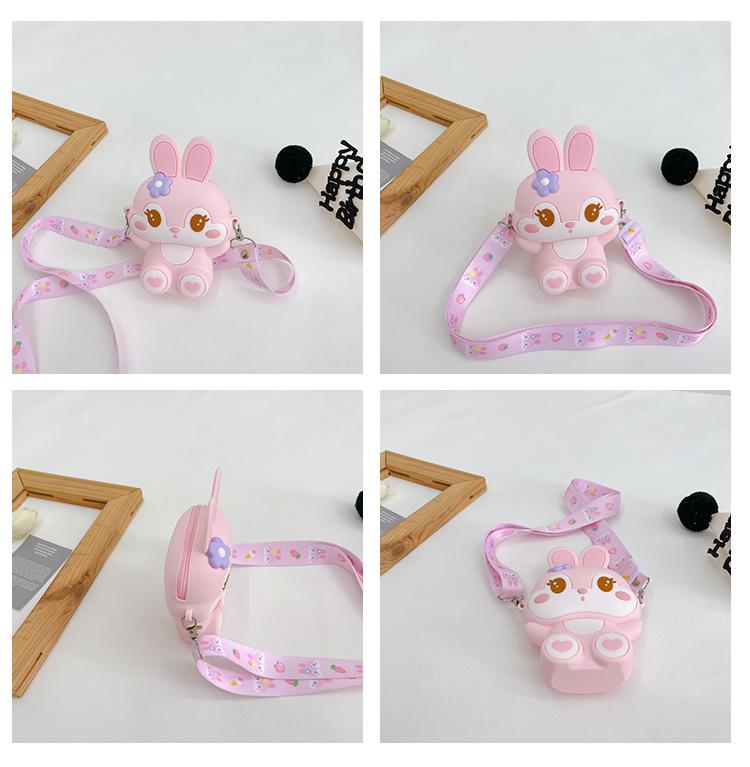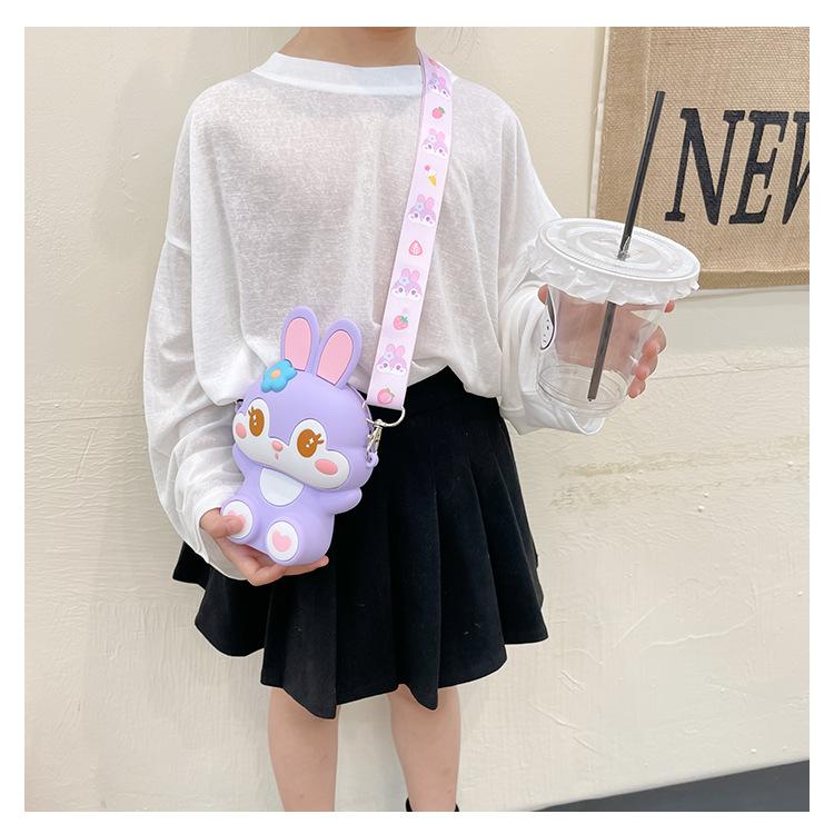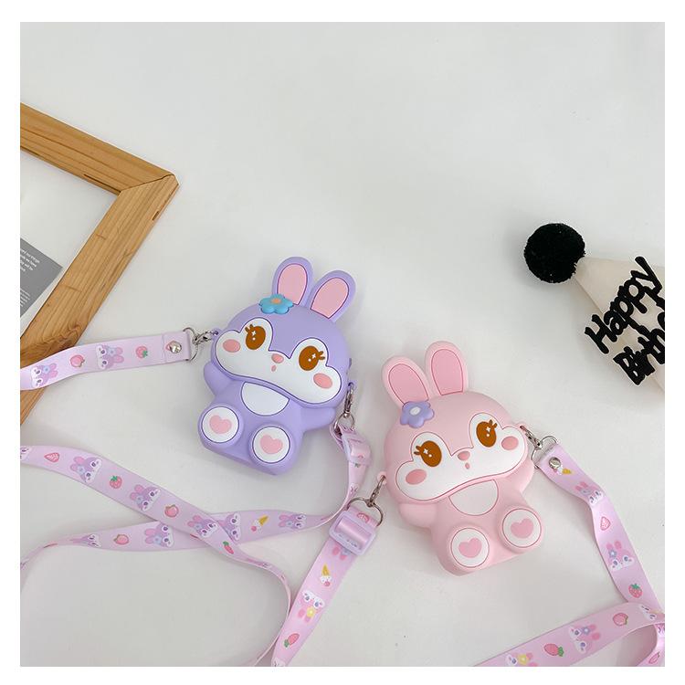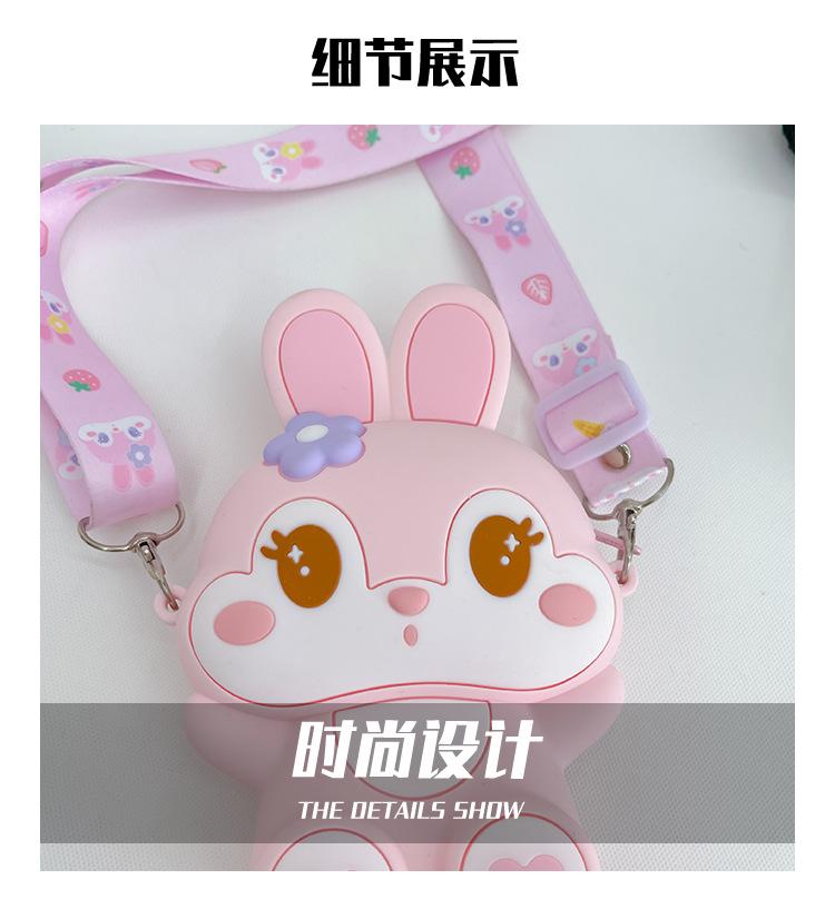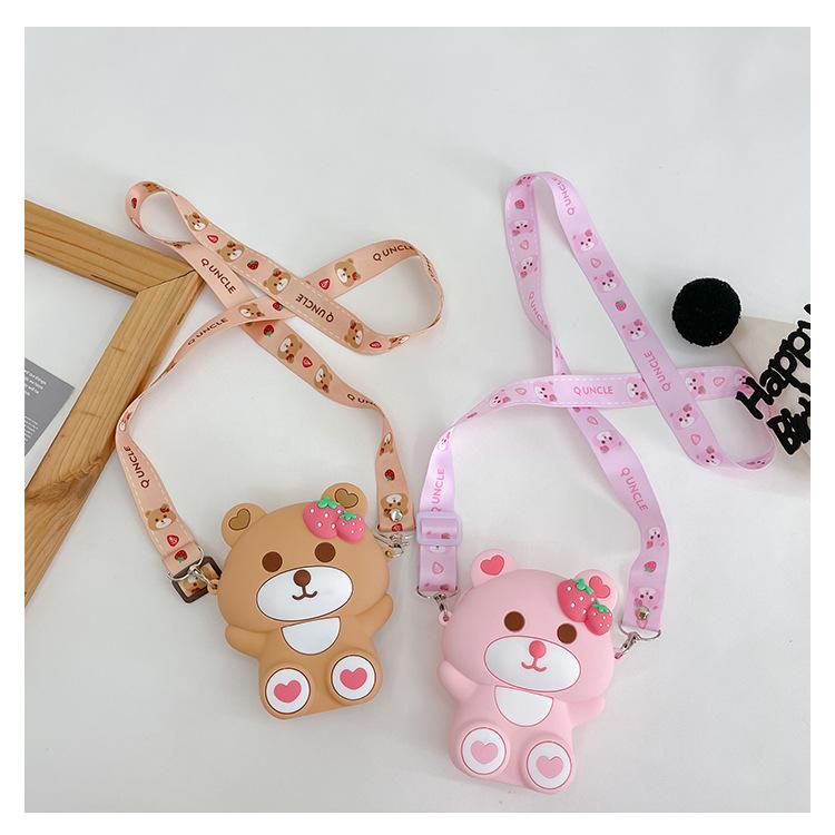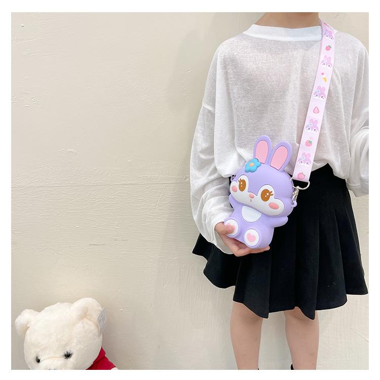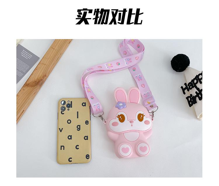 Nuevo y lindo monedero de silicona con forma de conejo para niños, con diseño de oso de fresa y un solo hombro, en diagonal.