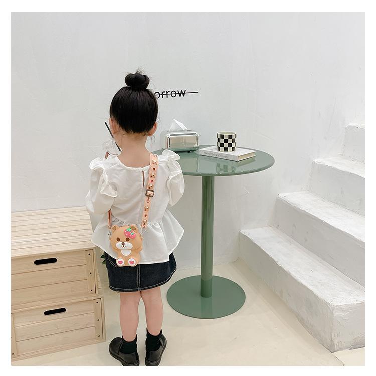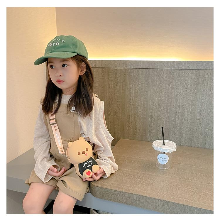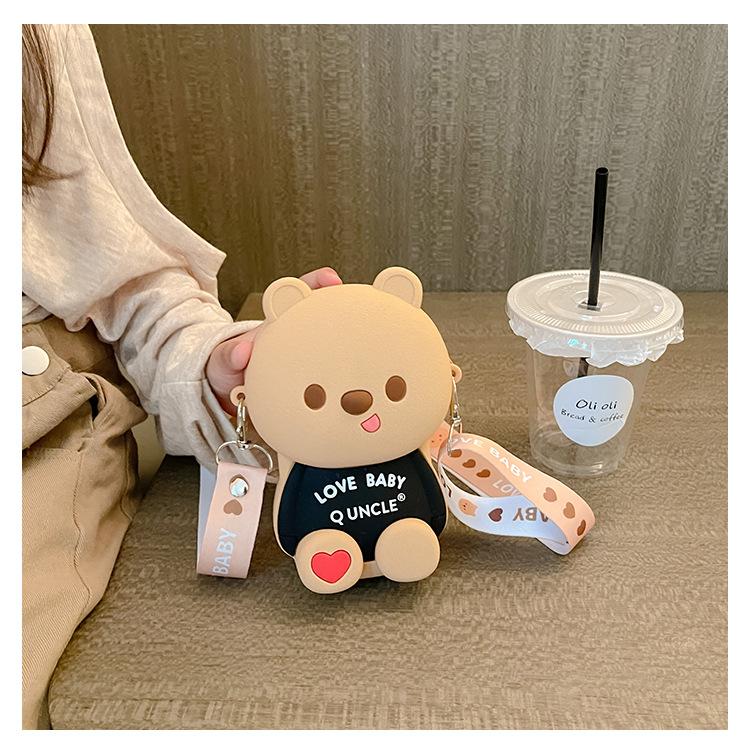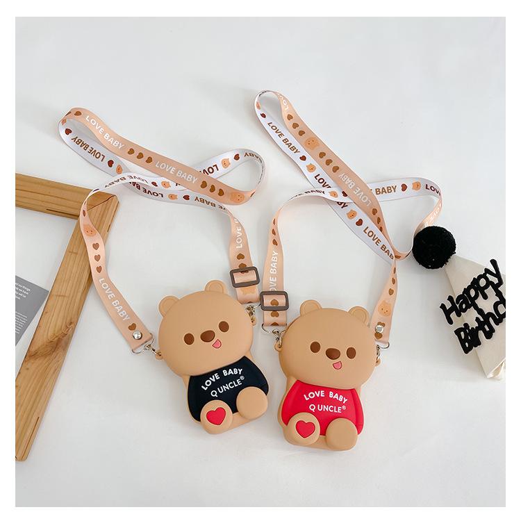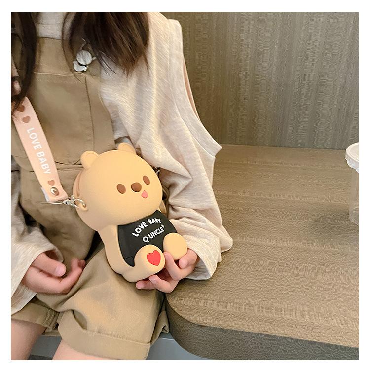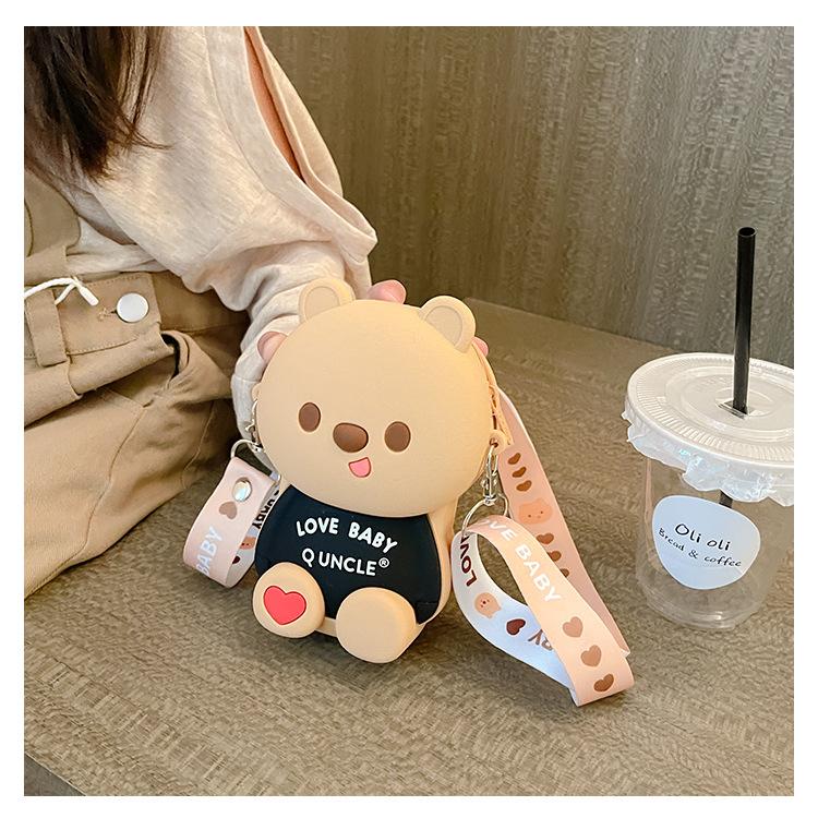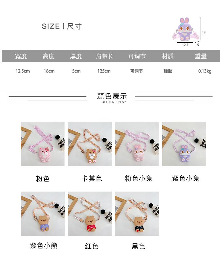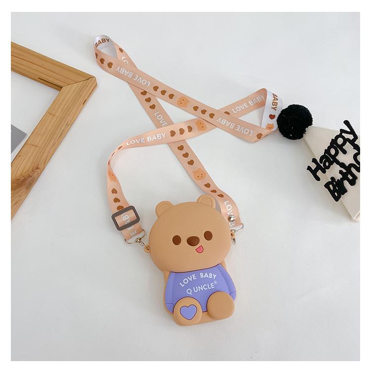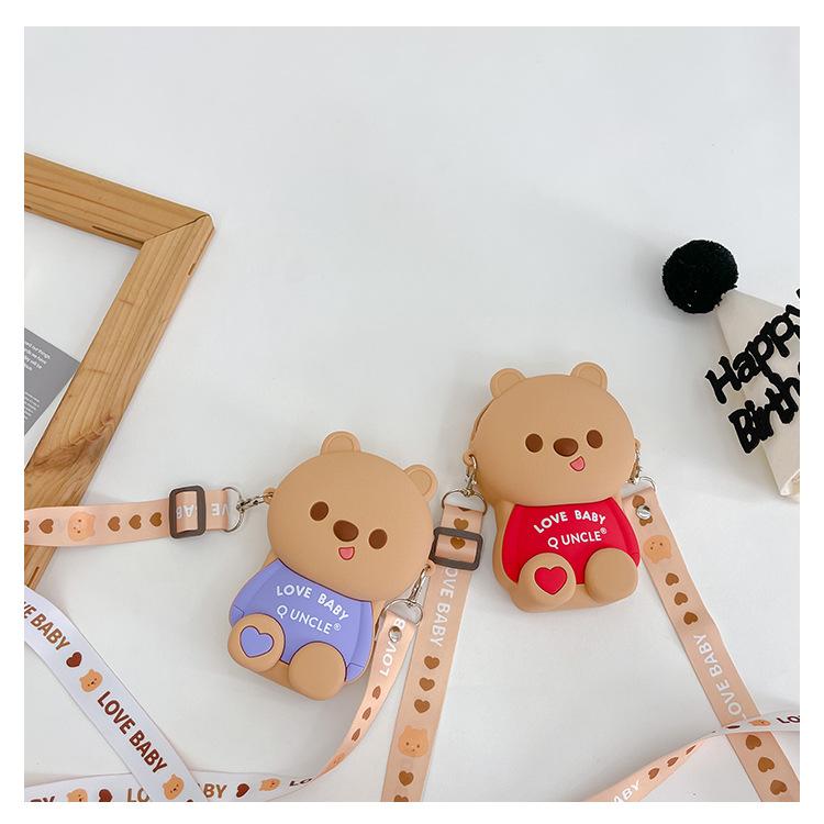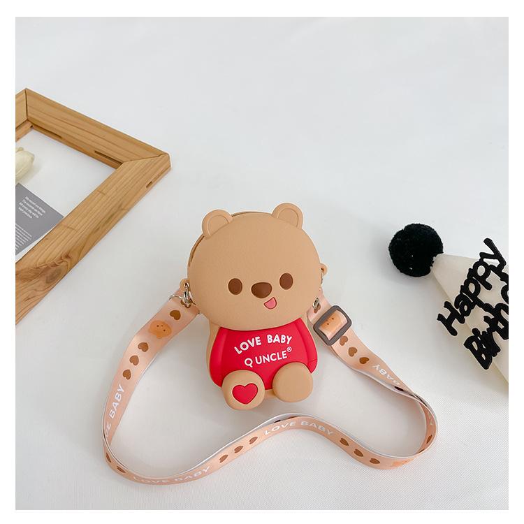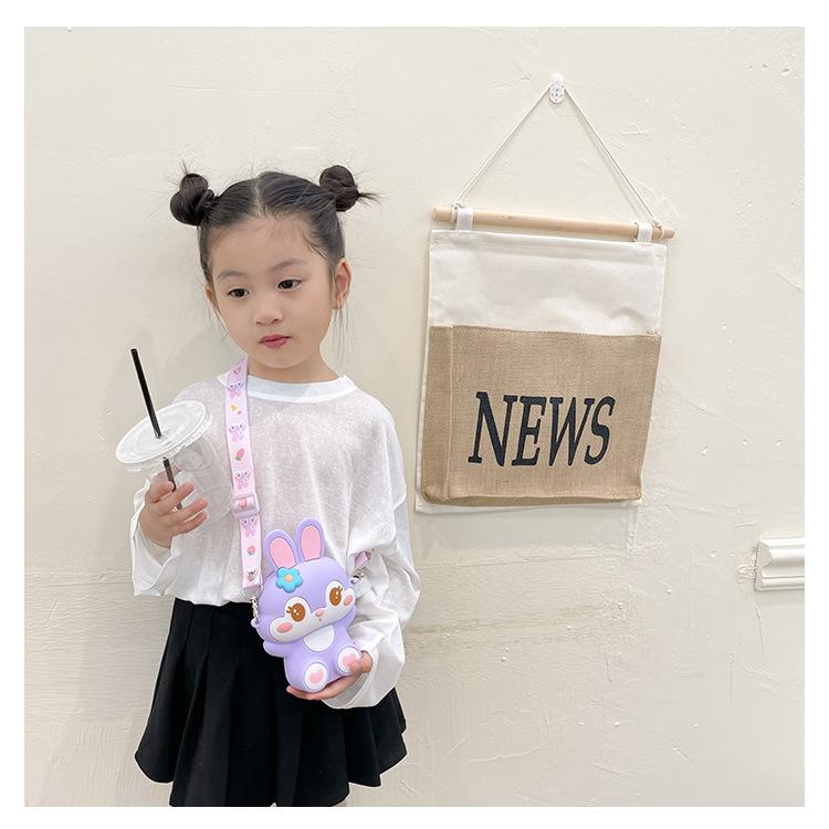 Nuevo y lindo monedero de silicona con forma de conejo para niños, con diseño de oso de fresa y un solo hombro, en diagonal.
