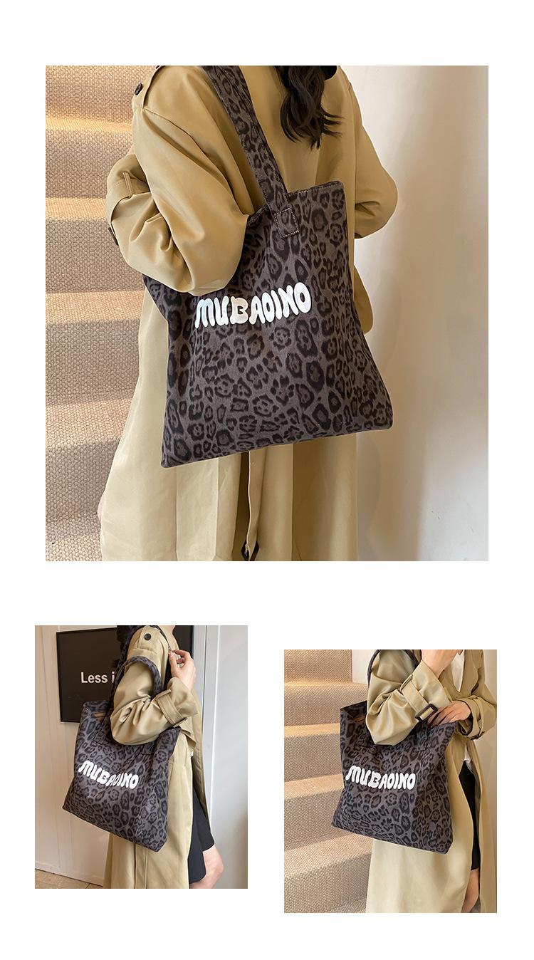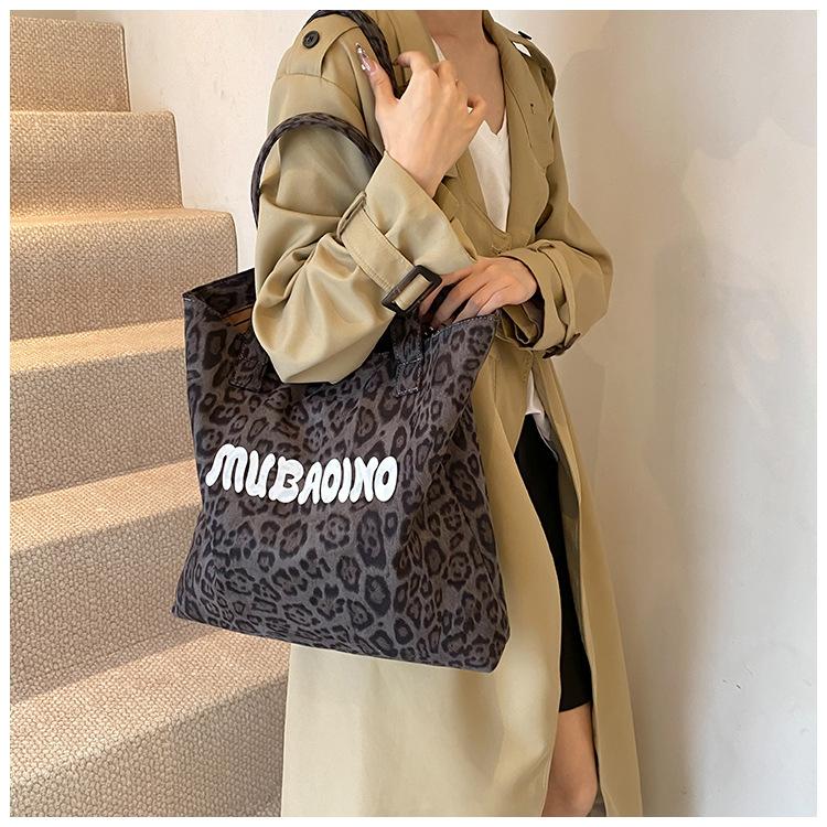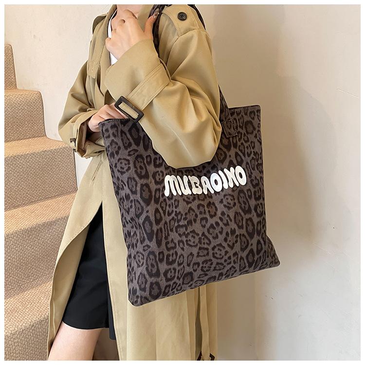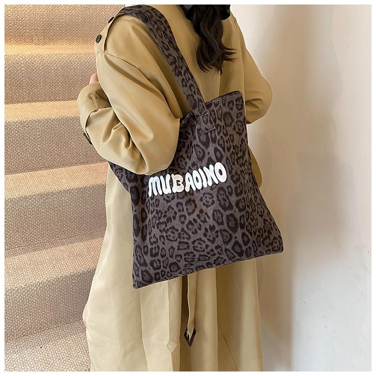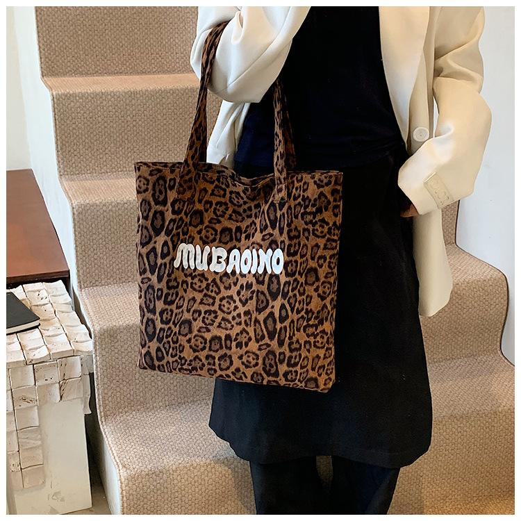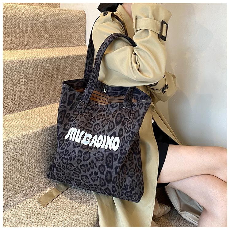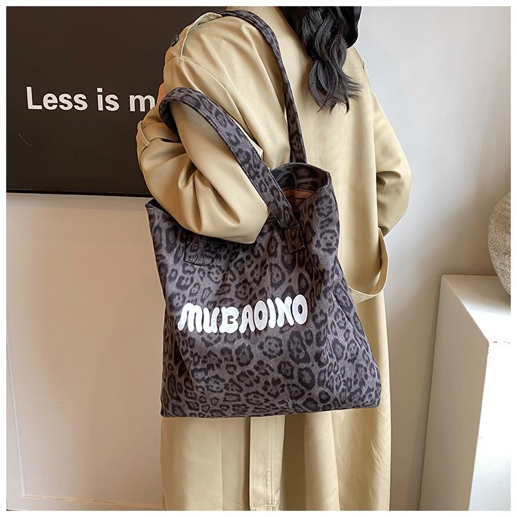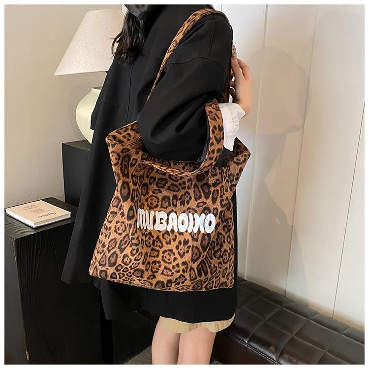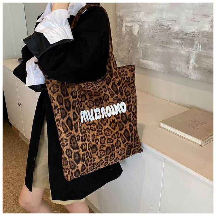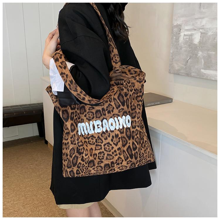 Bolsa de Compras Ins Viajero Letras Personalizadas Estampado de Leopardo Lona Bolso de Hombro Bolso de Mano Elegante Japonés para Mujer Principios de Otoño