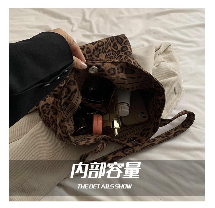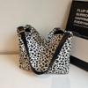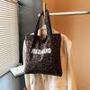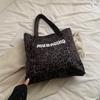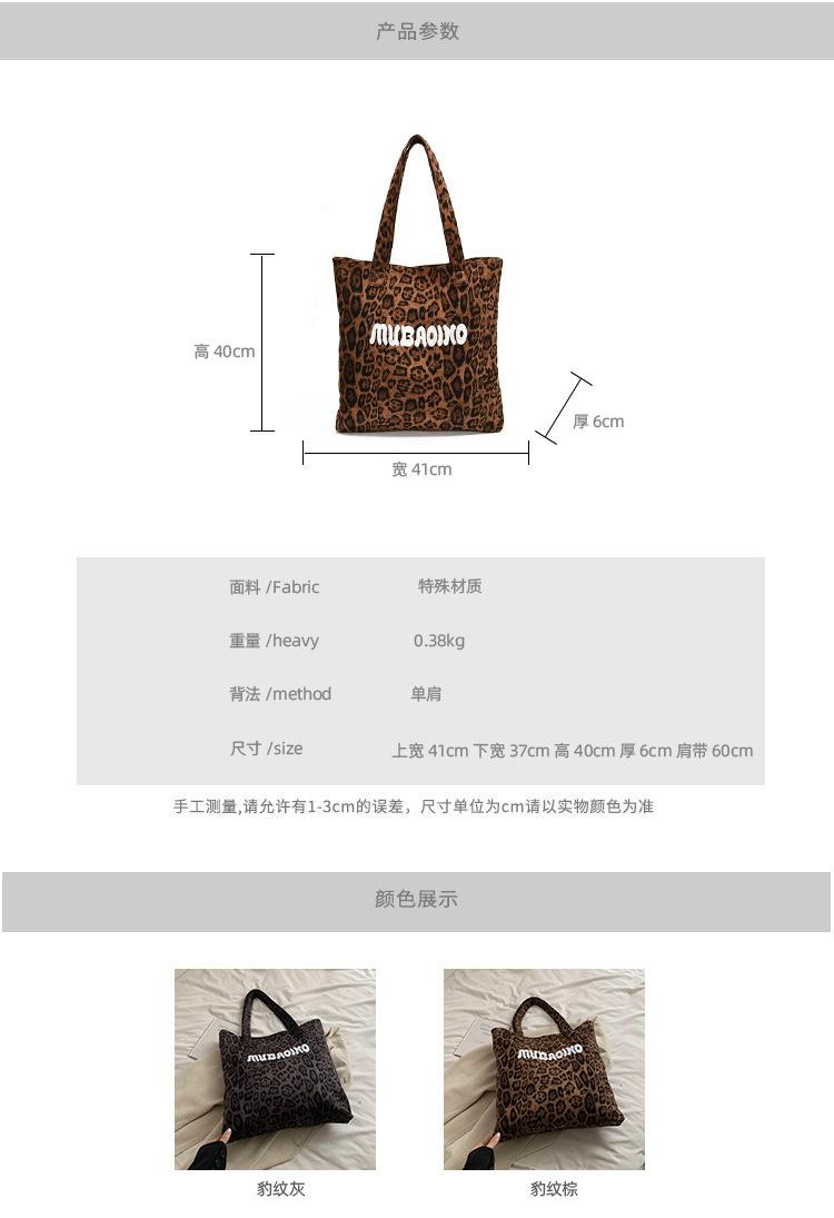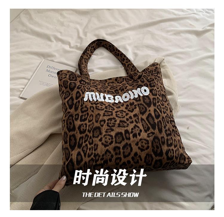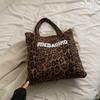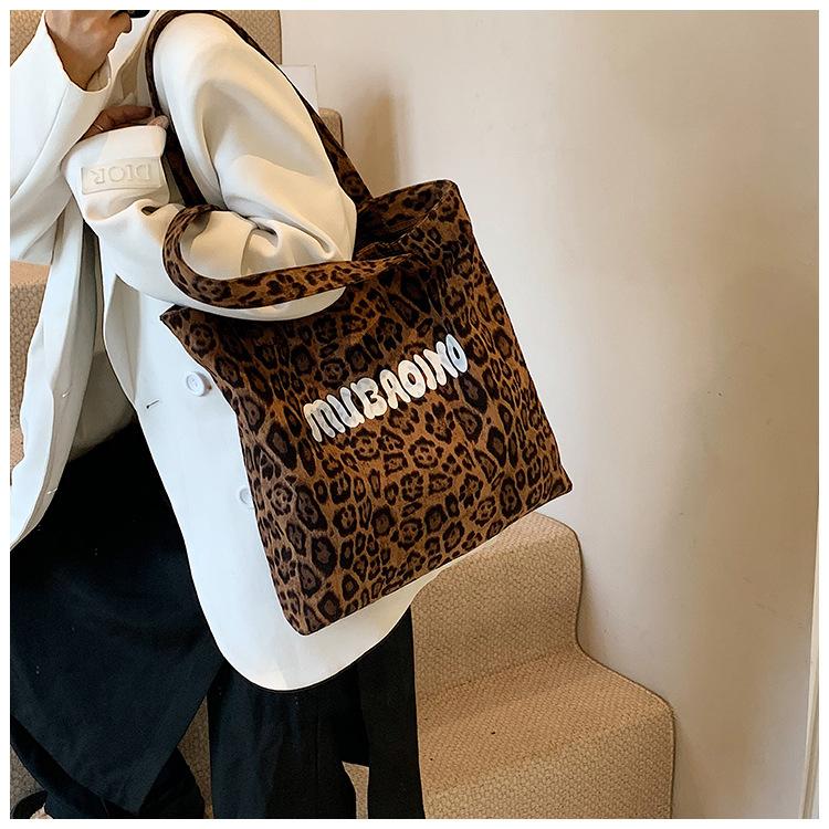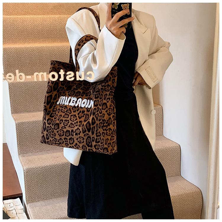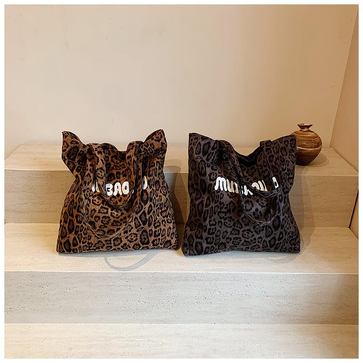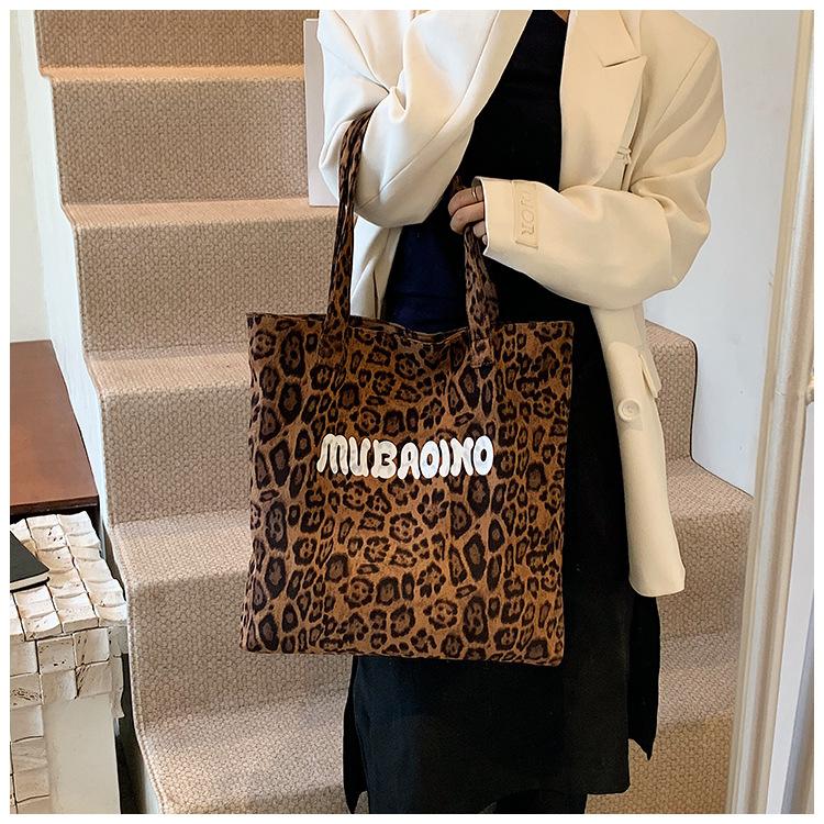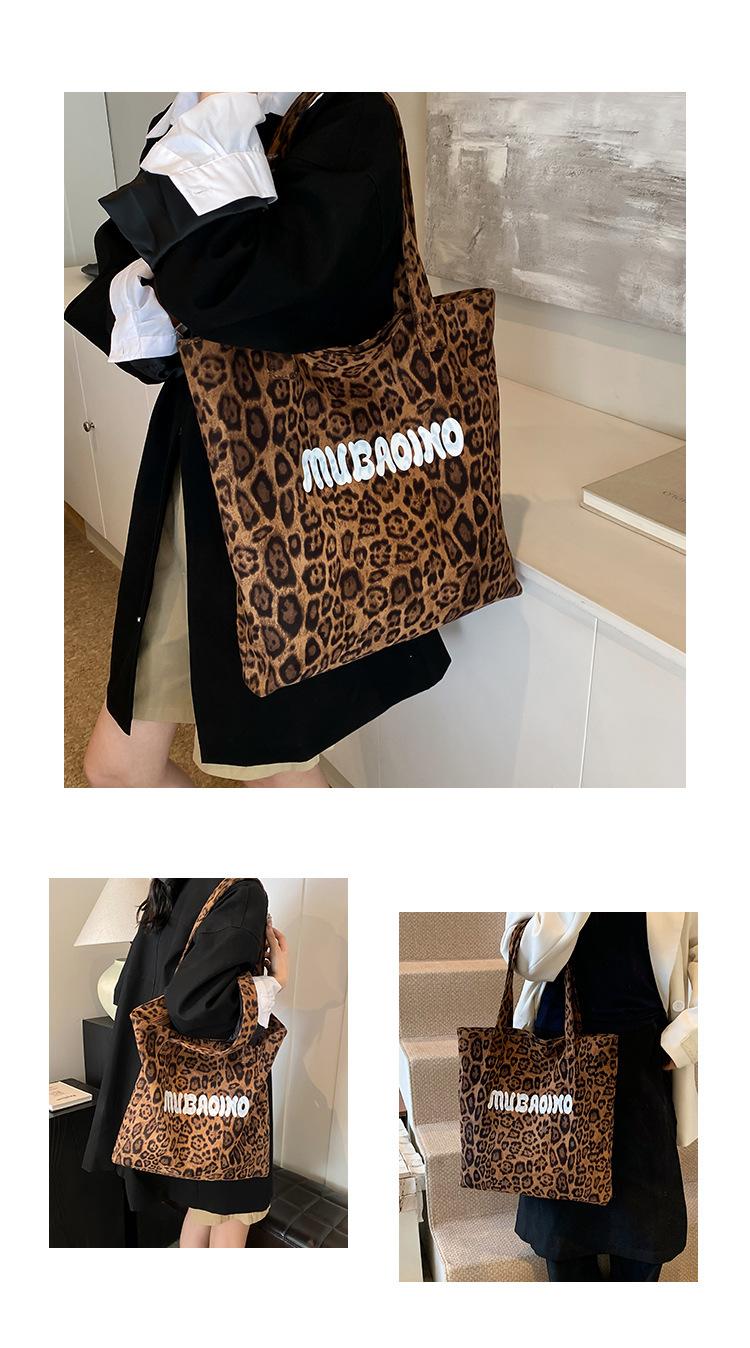 Bolsa de Compras Ins Viajero Letras Personalizadas Estampado de Leopardo Lona Bolso de Hombro Bolso de Mano Elegante Japonés para Mujer Principios de Otoño