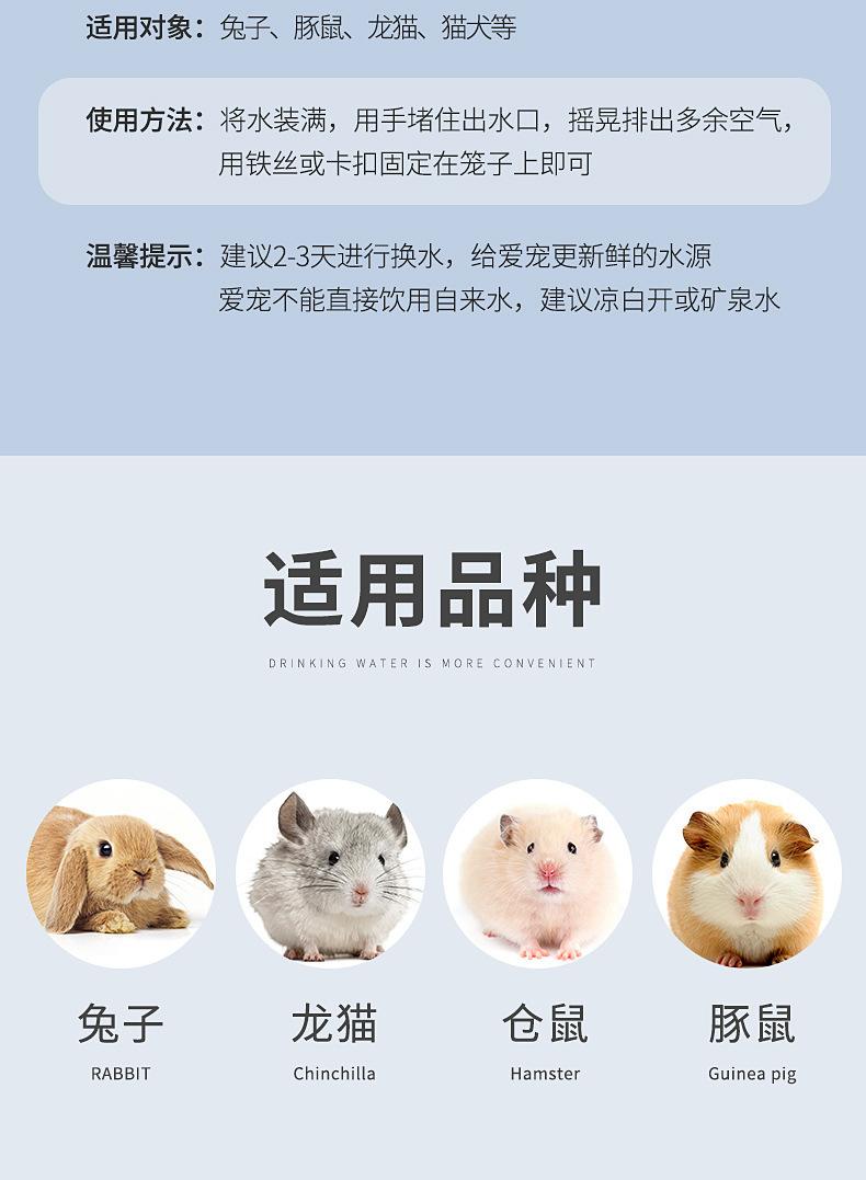 Fuente para Beber para Conejos Colgante Chinchilla Alimentación Bebedero Boquilla de Bola Especial de Gran Capacidad Botella de Agua para Cobayas No Gotea