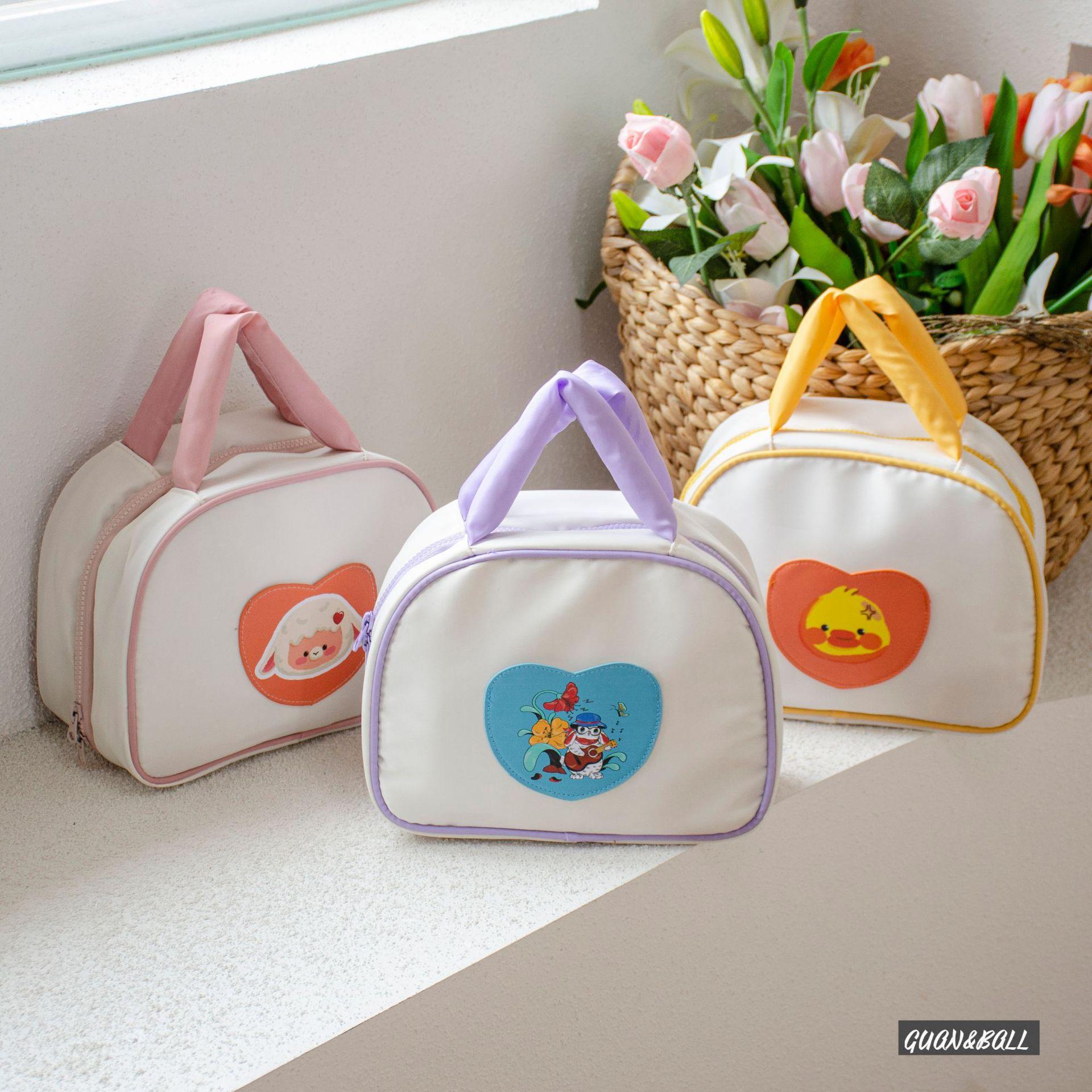 Pink Lamb Makeup Bag, Yellow Duckling Makeup Bag, Night Purple Cat Makeup Bag, Yellow cosmetic bag, Pink cosme...