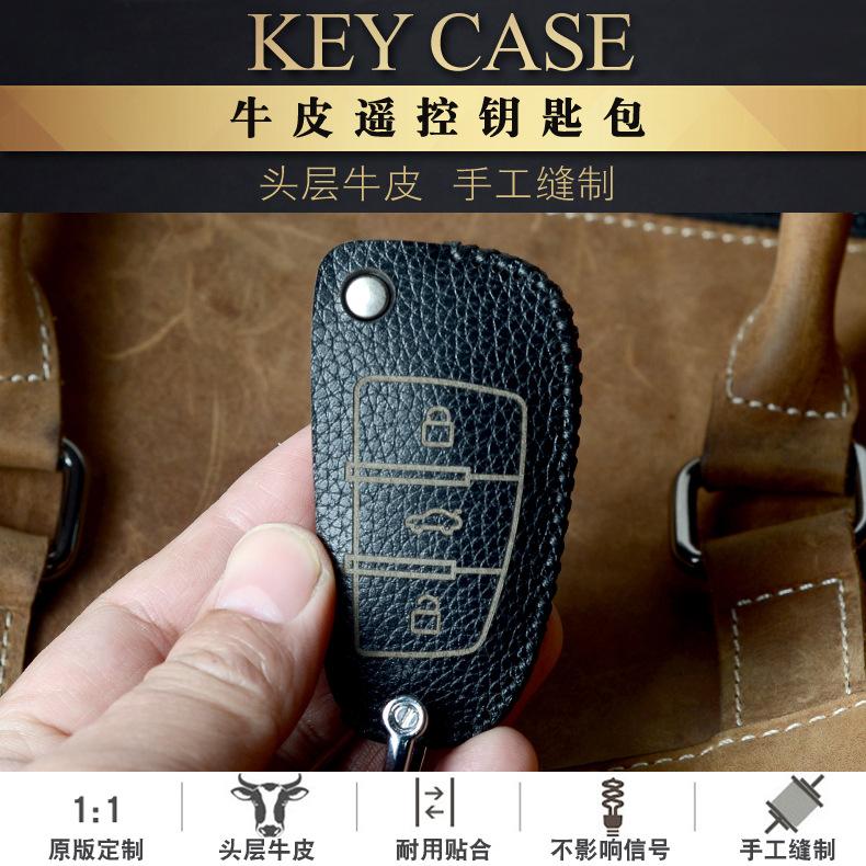Para Audi Q3 juego de llaves antiguo Q7/Q5/TT plegable Q2L/A3/A1 bolsa de protección de piel de vaca hebilla para hombre y mujer