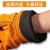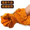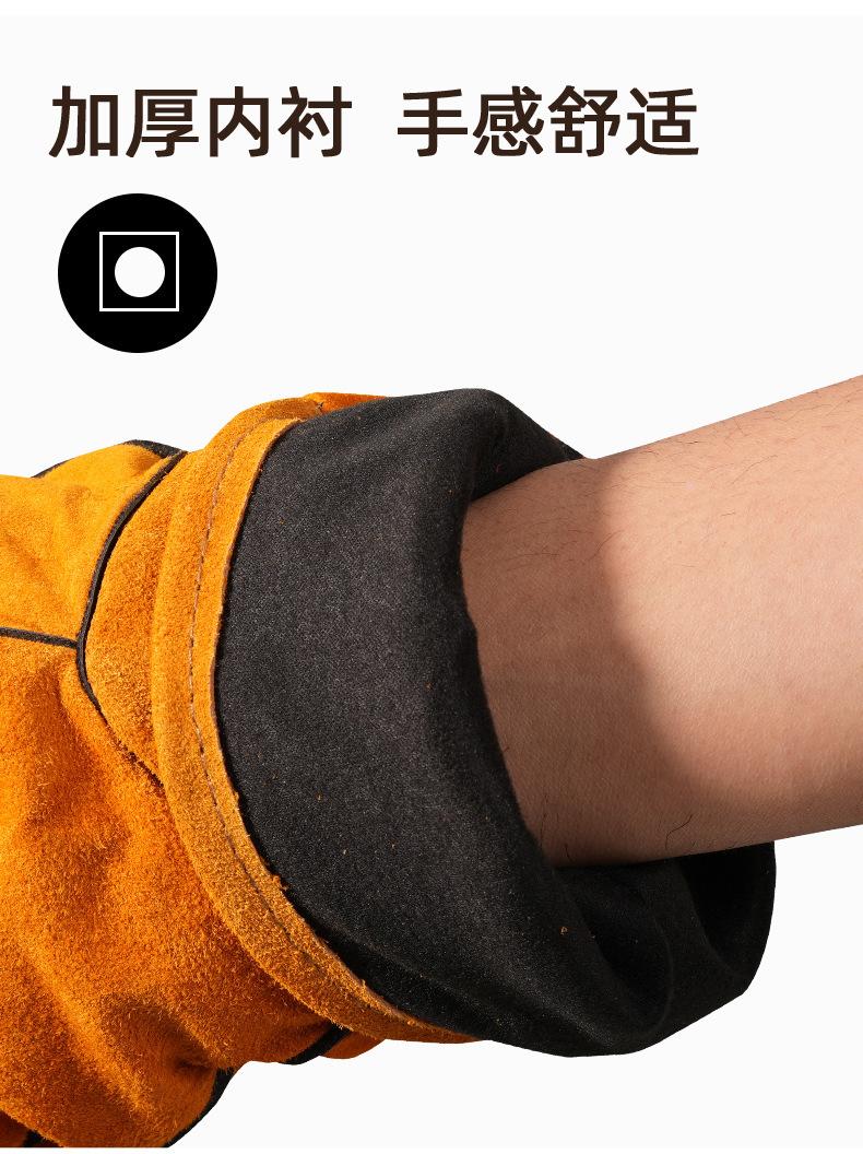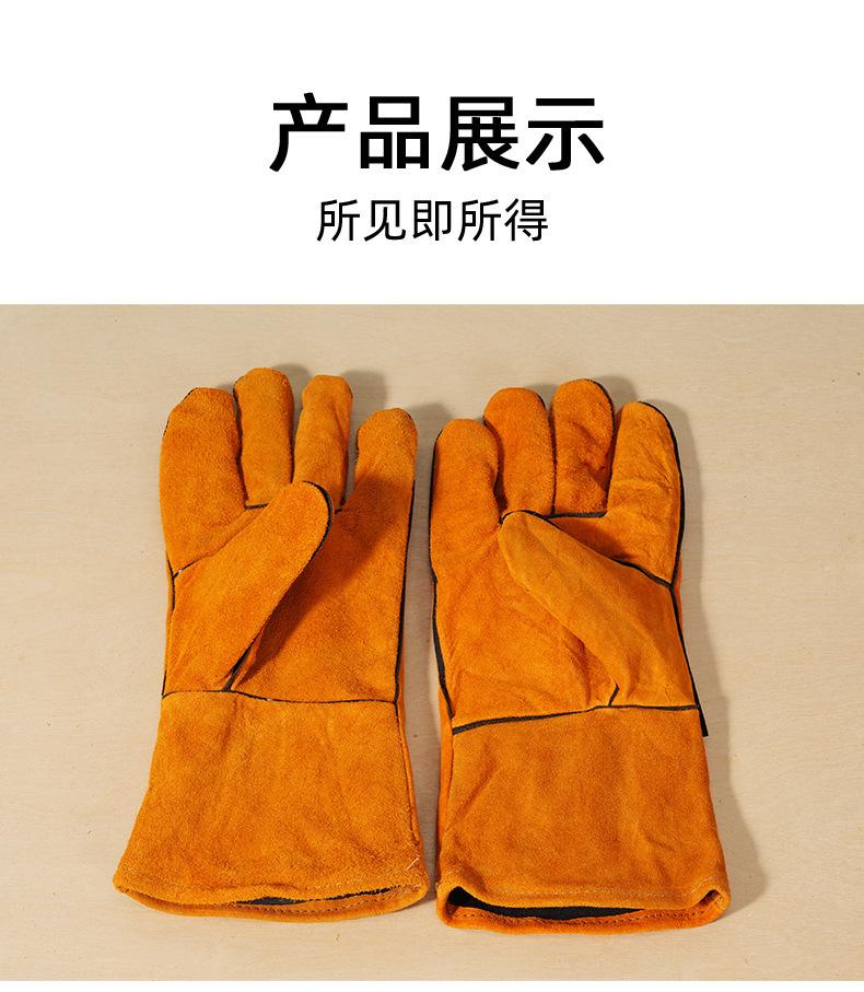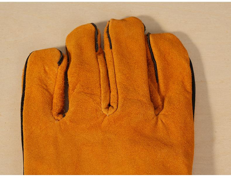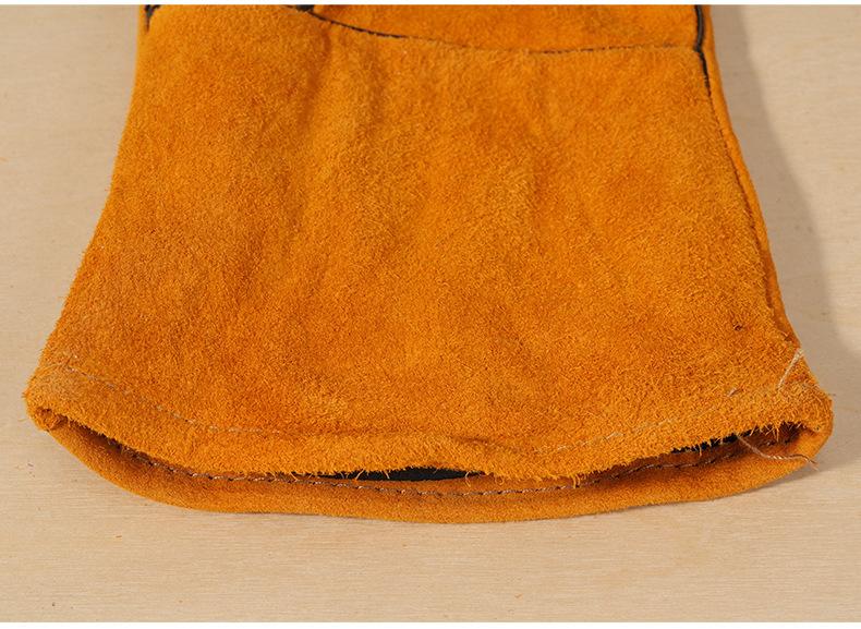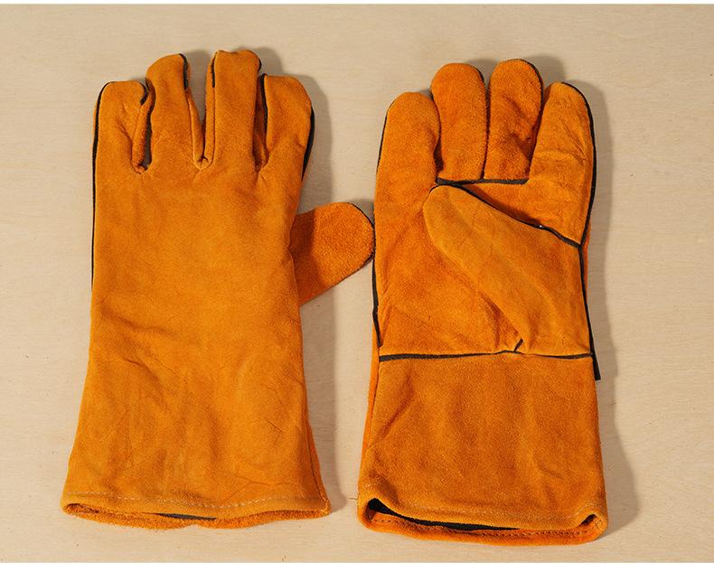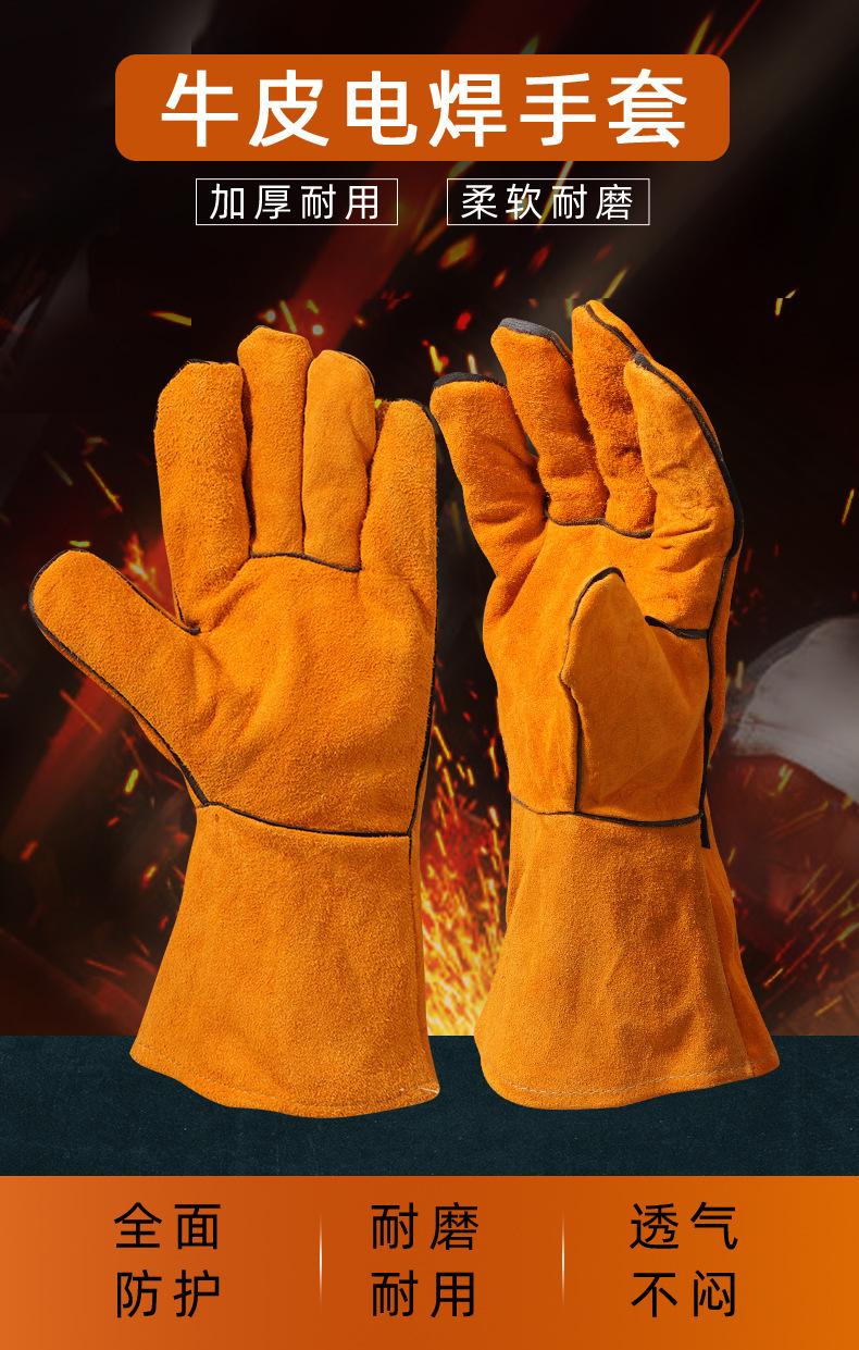 Guantes de soldadura al por mayor de piel de vaca engrosada amarilla para soldar, resistentes al desgaste, con aislamiento térmico, guantes de trabajo de soldadura de cuero completo largos