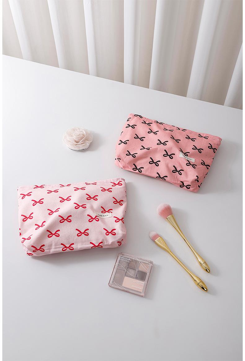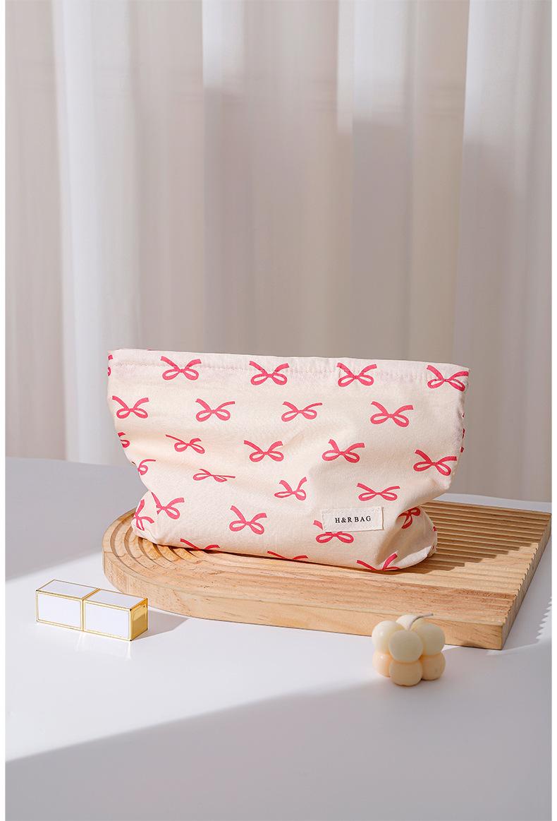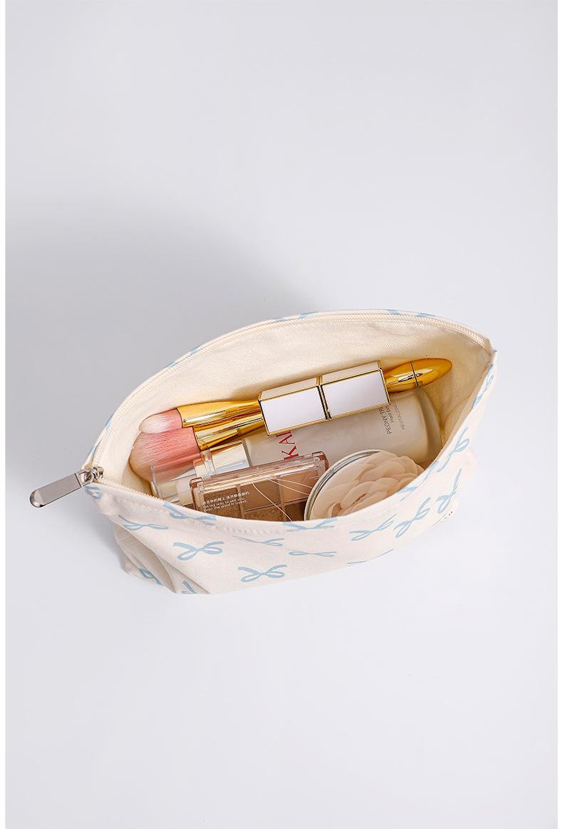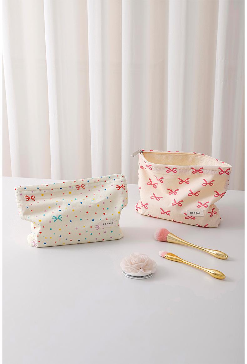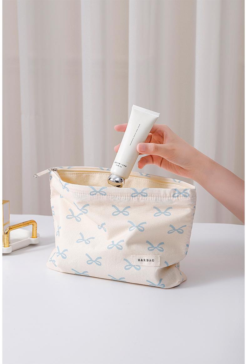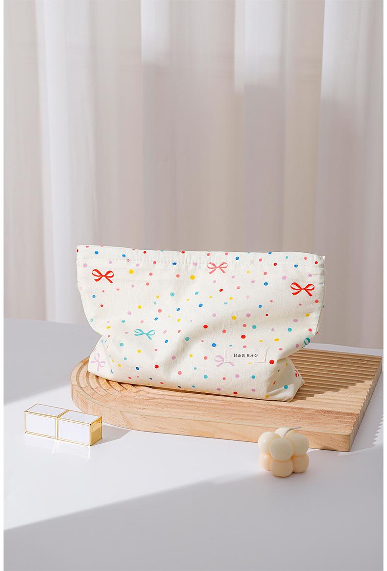 Nuevo Estilo Fresco Simple Lazo Algodón Bolsa de Maquillaje Color Crema para Niña Portátil Bolsa de Almacenamiento para Cuidado de la Piel Bolso de Mano