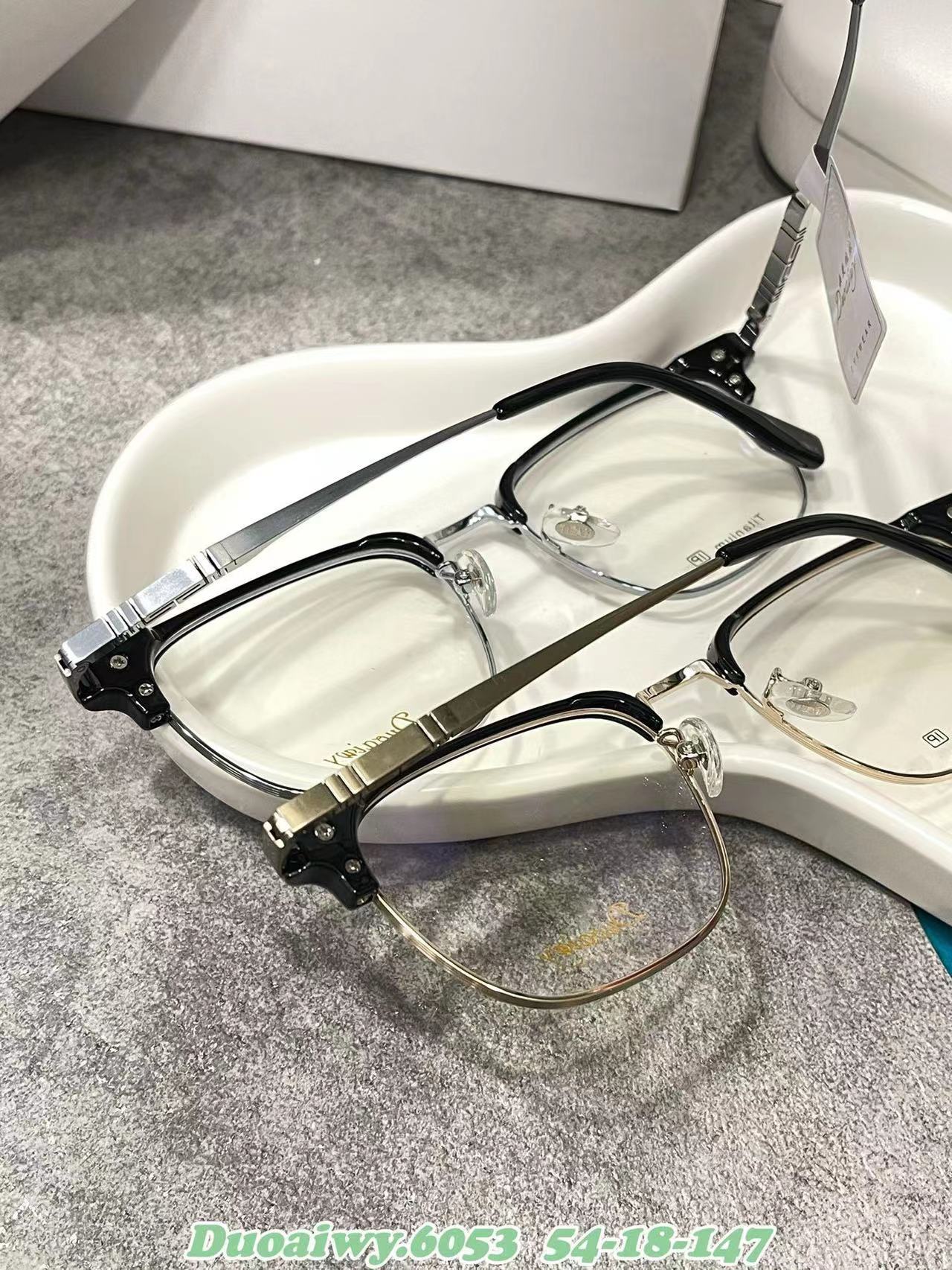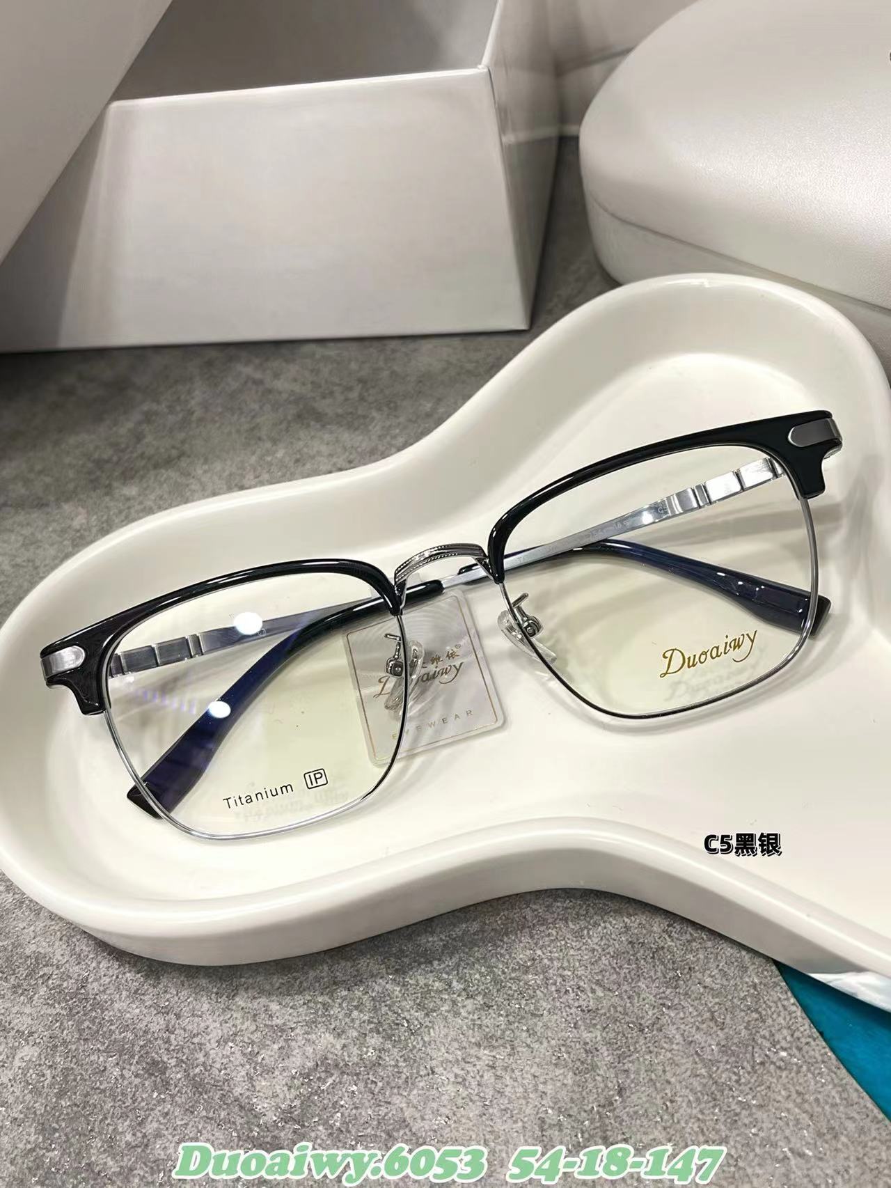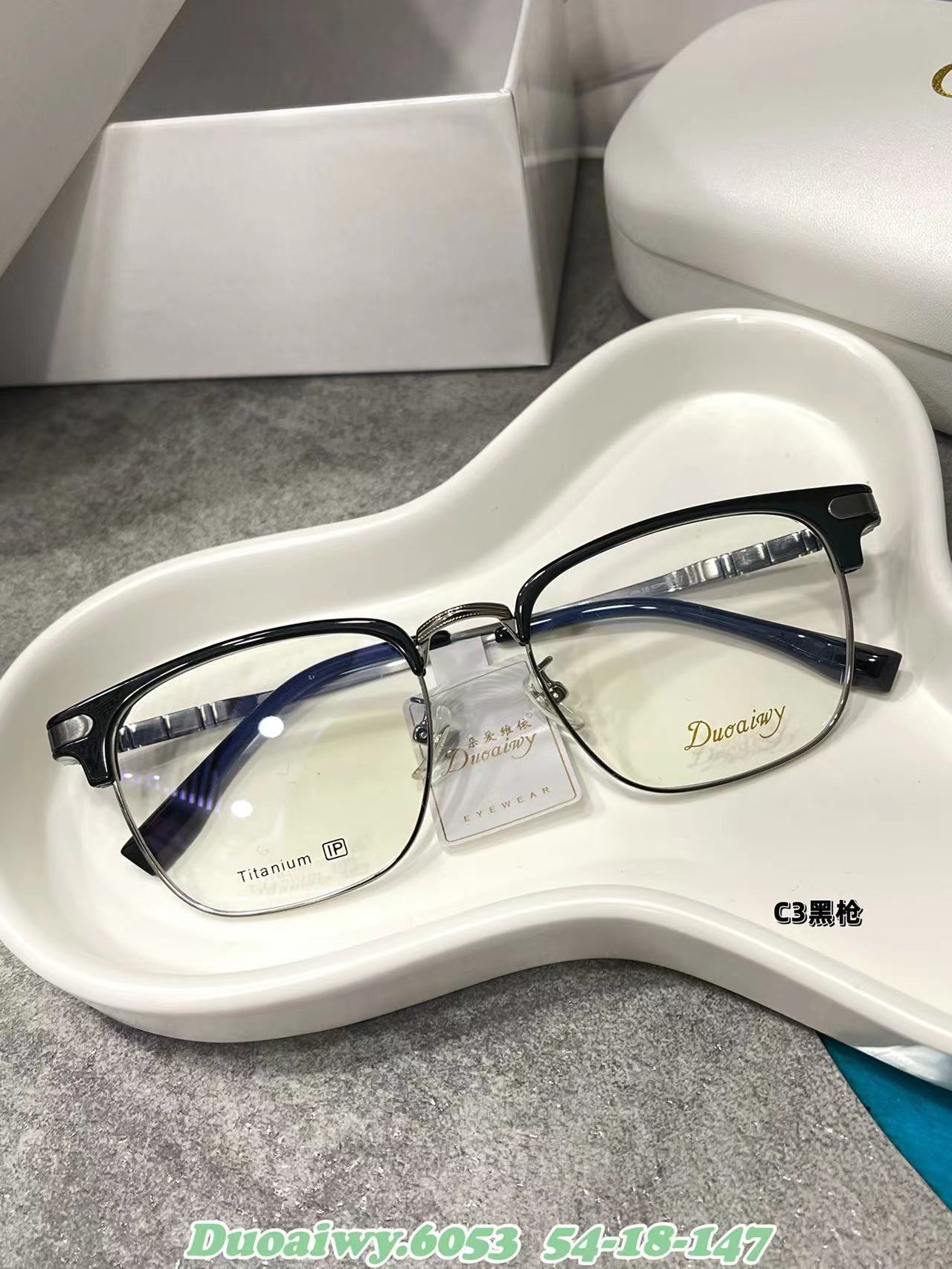 2023 Nuevo 54 Eyebrow Rack 6053 Marco Cuadrado Retro Plano Azul Gafas de Montura Completa Gafas Patas de Órgano para Hombres y Mujeres