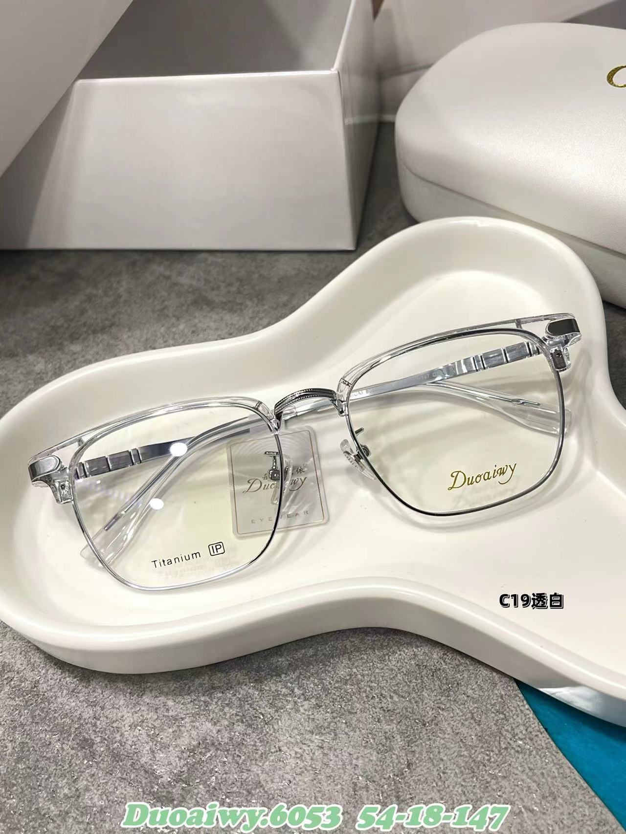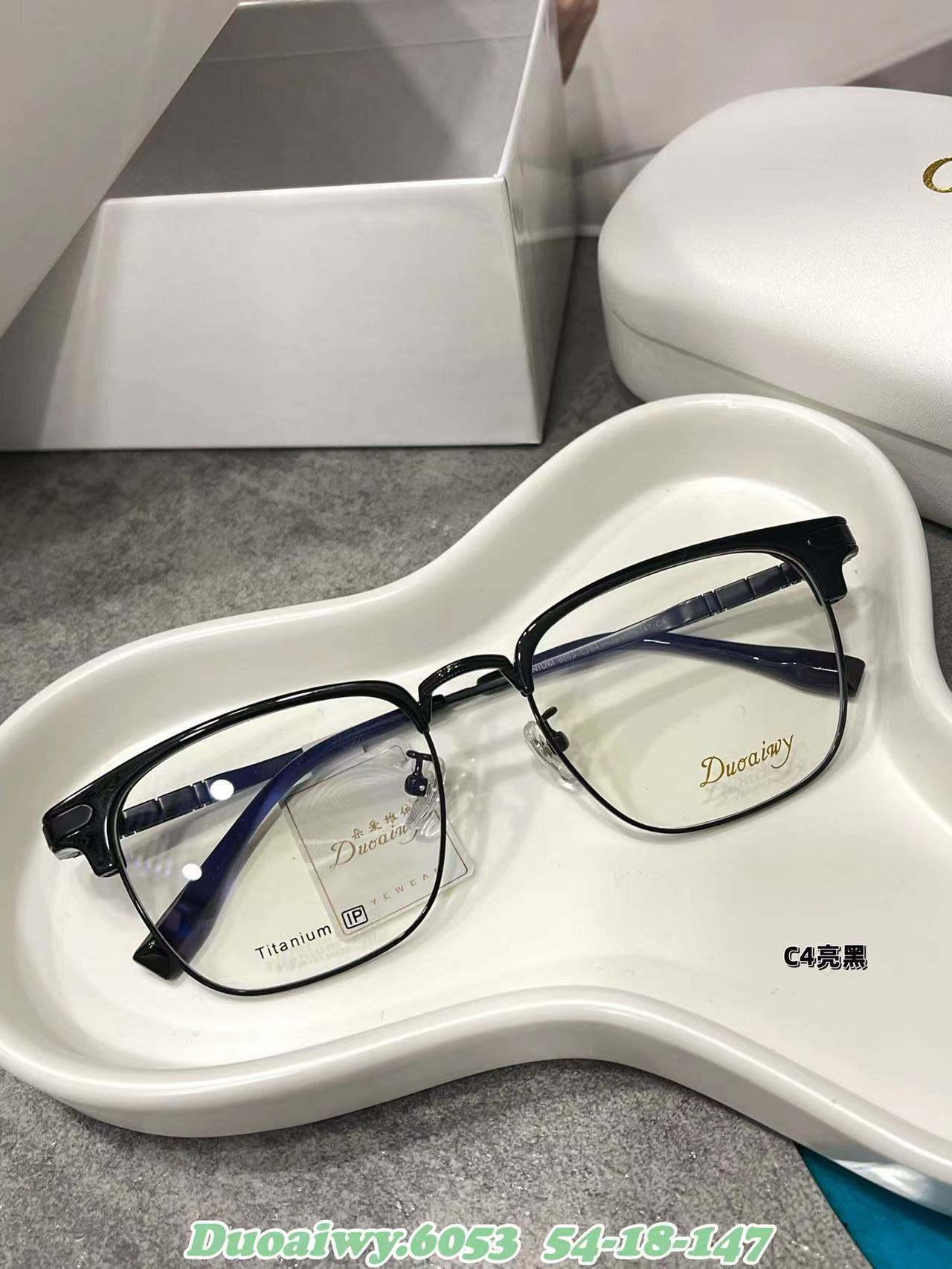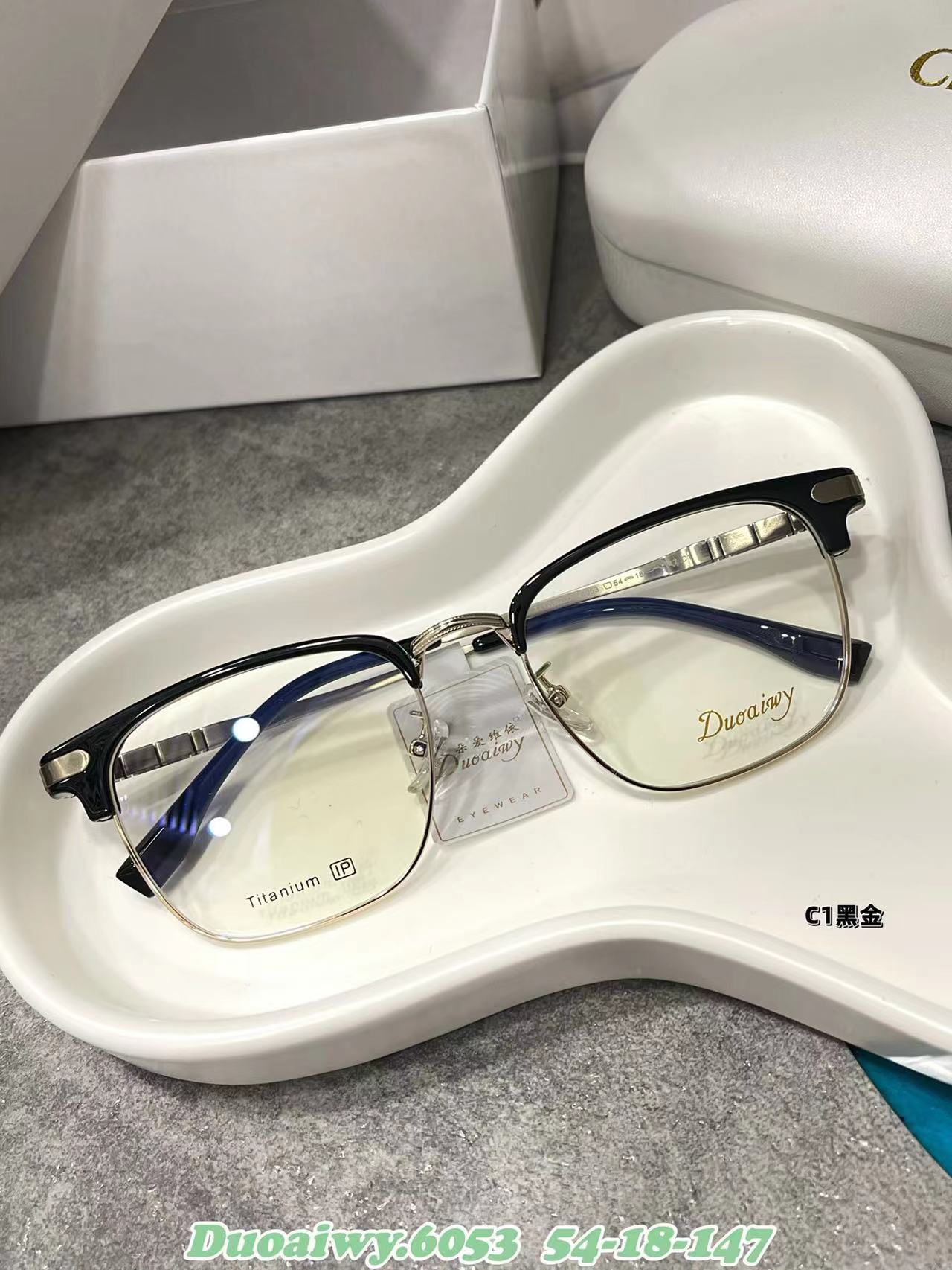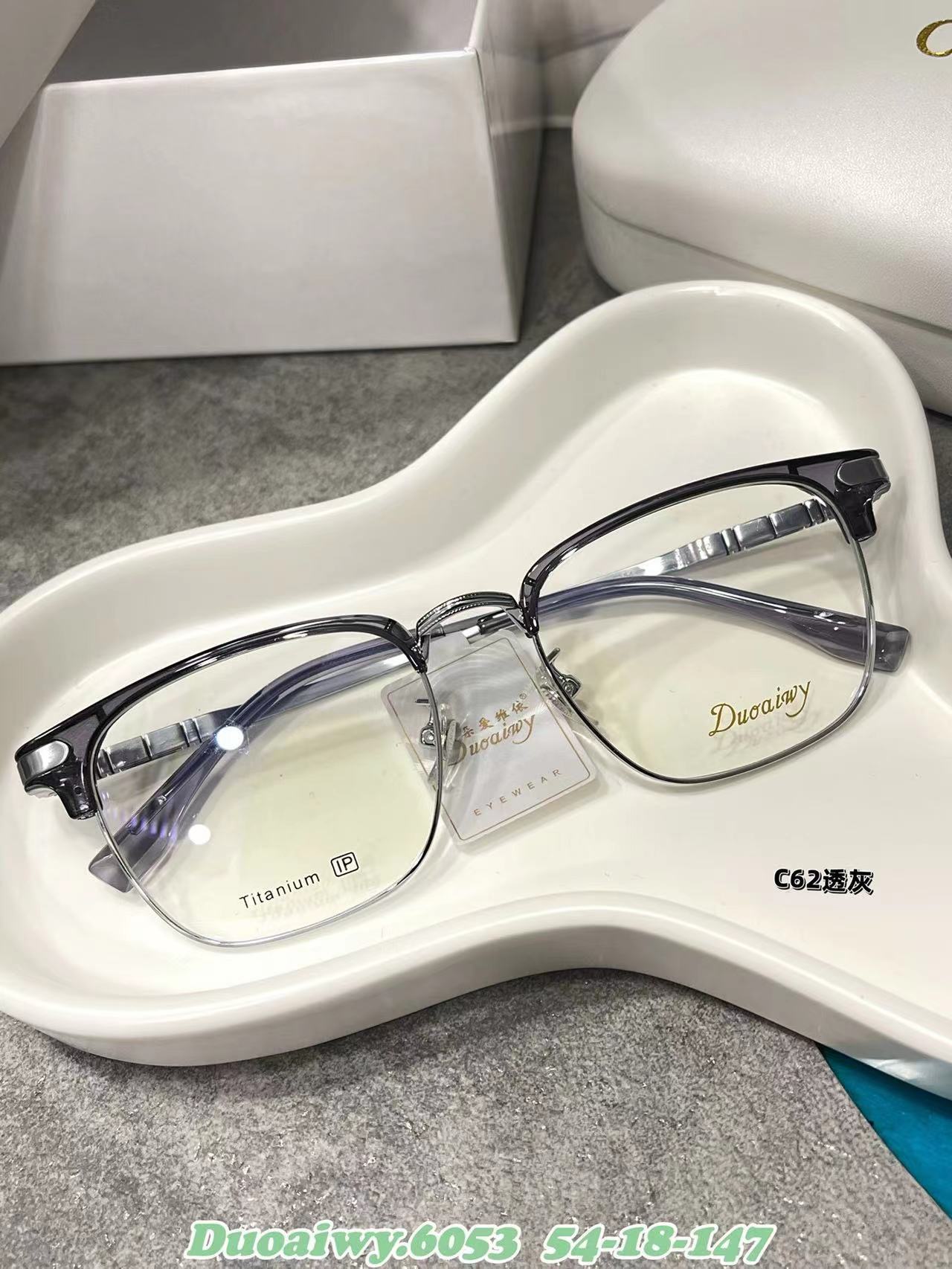 2023 Nuevo 54 Eyebrow Rack 6053 Marco Cuadrado Retro Plano Azul Gafas de Montura Completa Gafas Patas de Órgano para Hombres y Mujeres