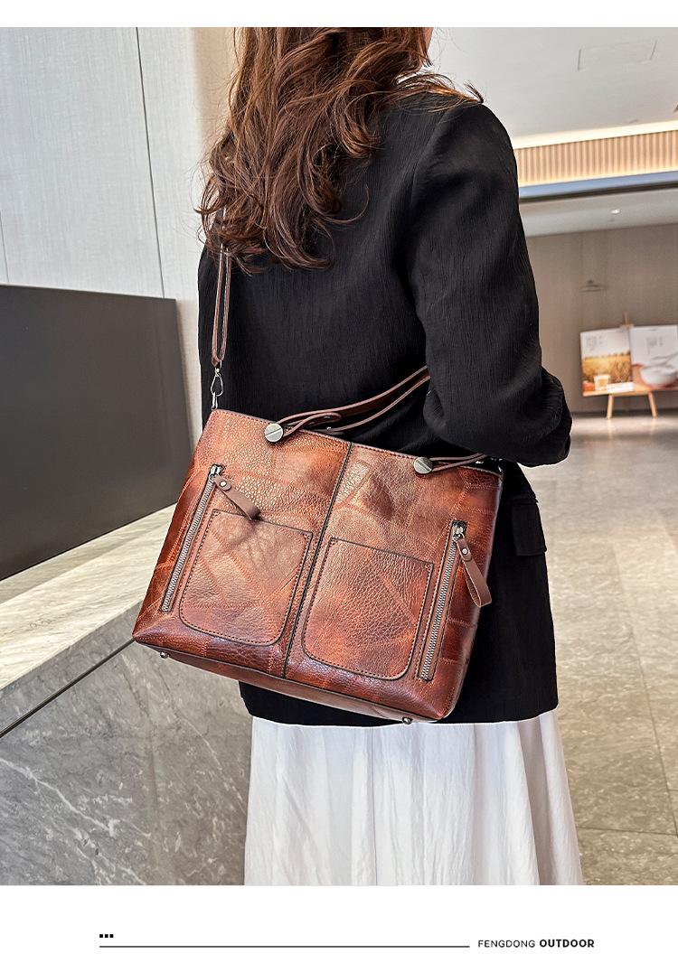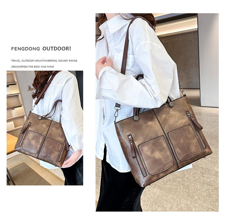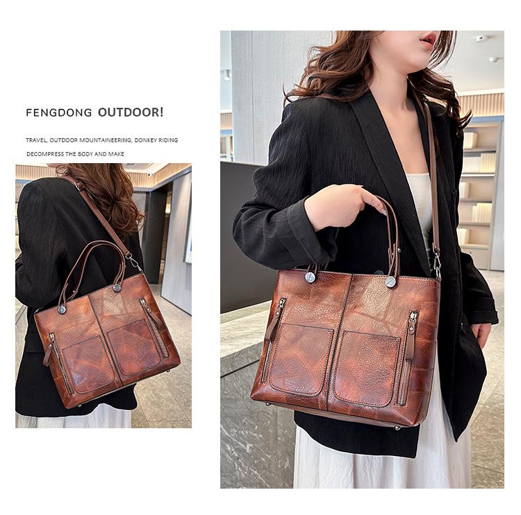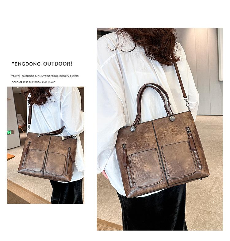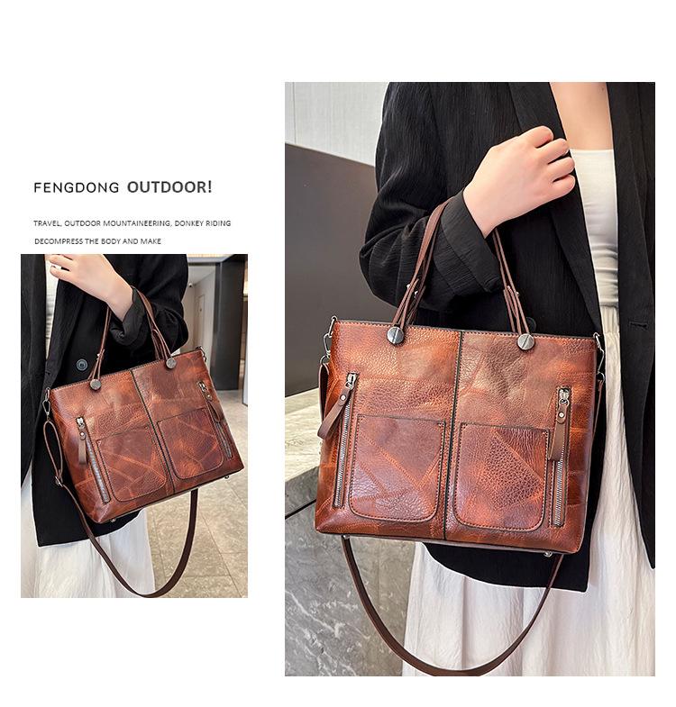 Bolso Tote Bolso de Gran Capacidad Bolso Europeo y Americano Vintage para Mujer Bolso para Madre de Mediana Edad 2025 Bolso de Mano Transfronterizo de Otoño e Invierno