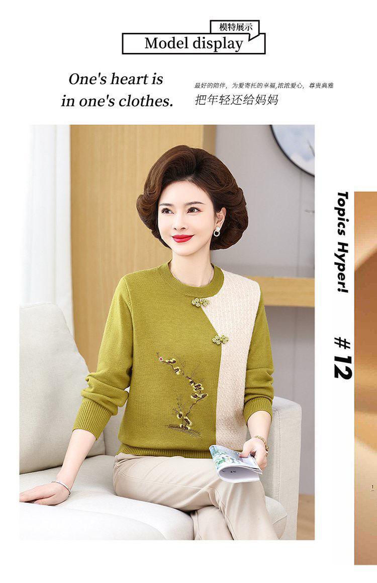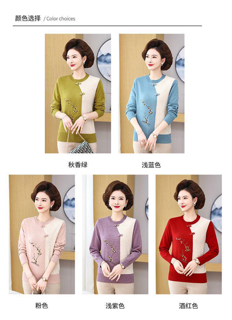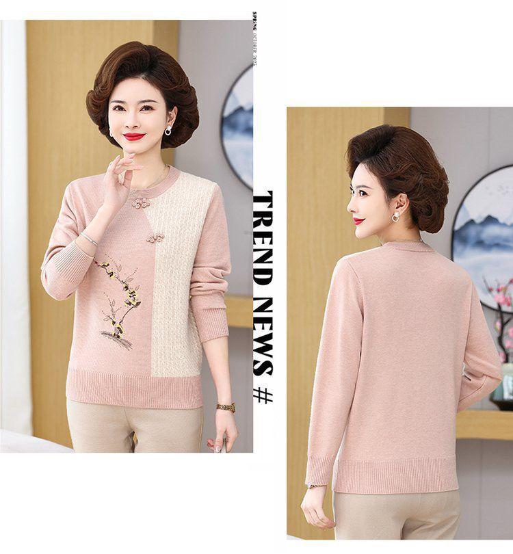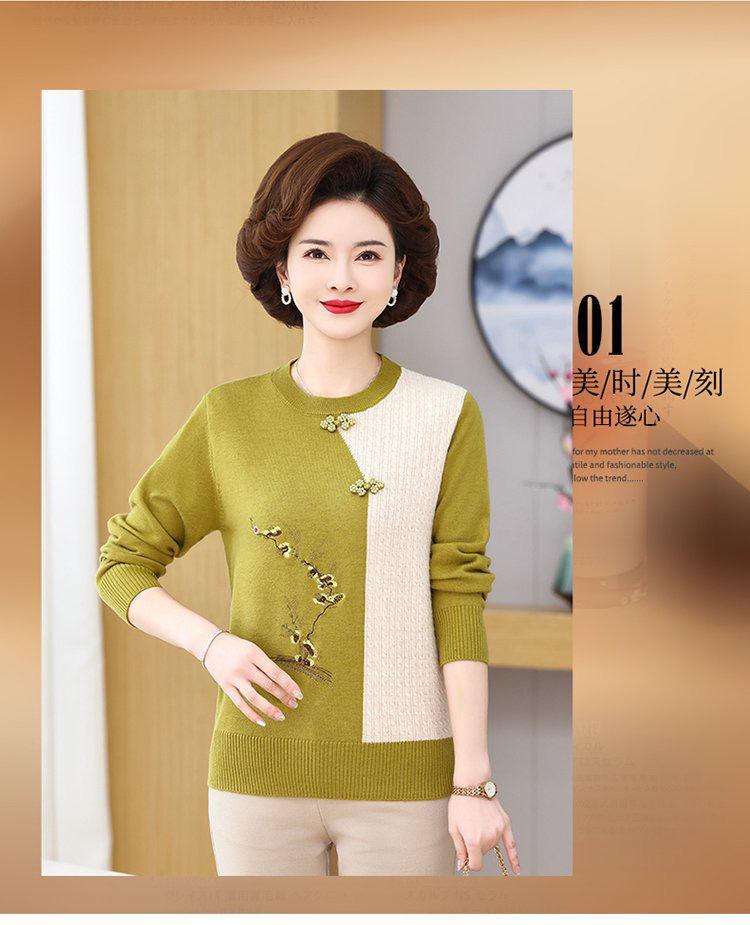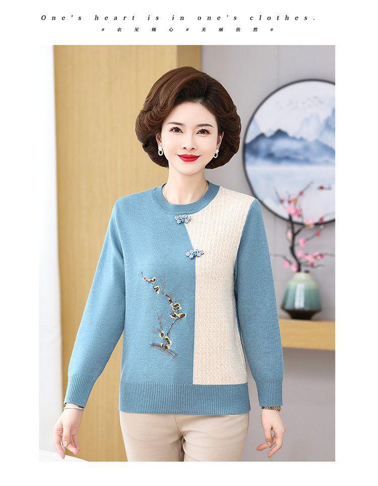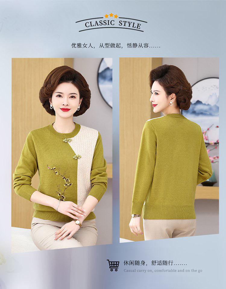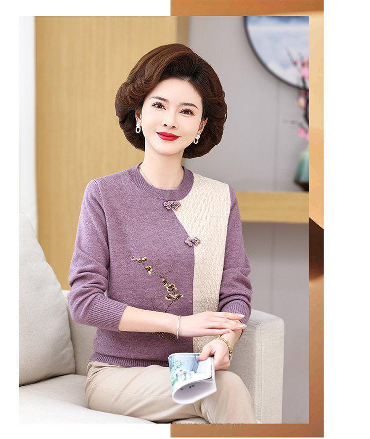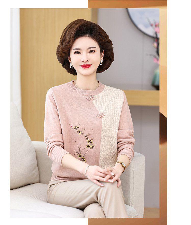 Suéter elegante de manga larga para mujer, de punto, de primavera y otoño, con base holgada y elegante para madres de mediana edad y ancianas