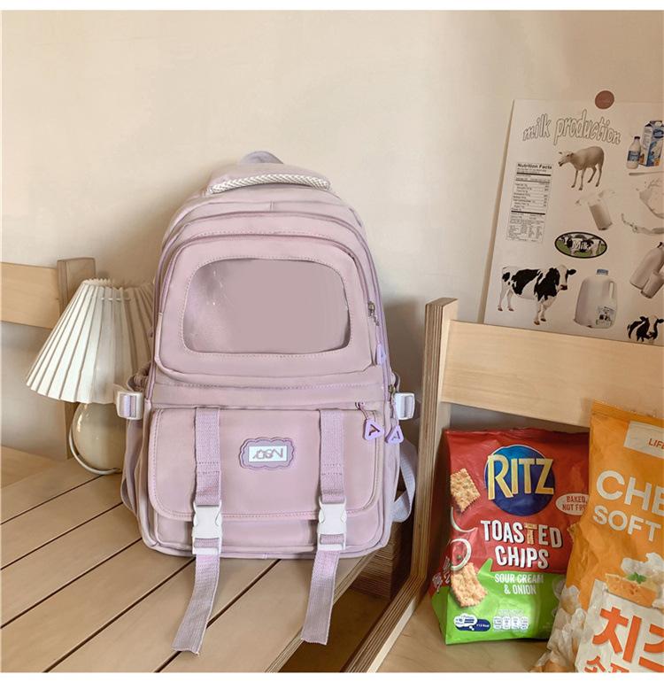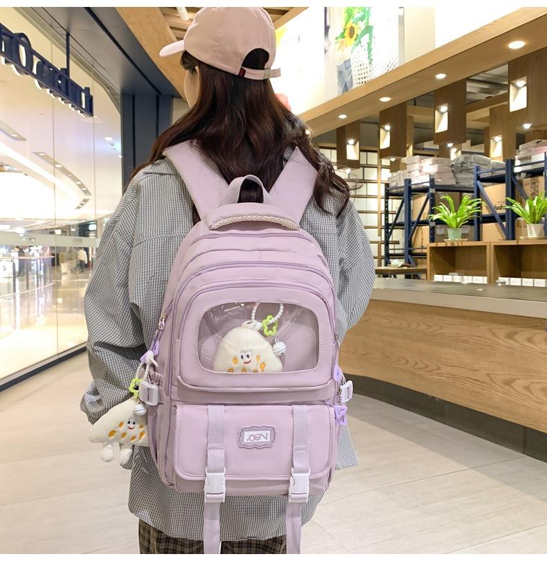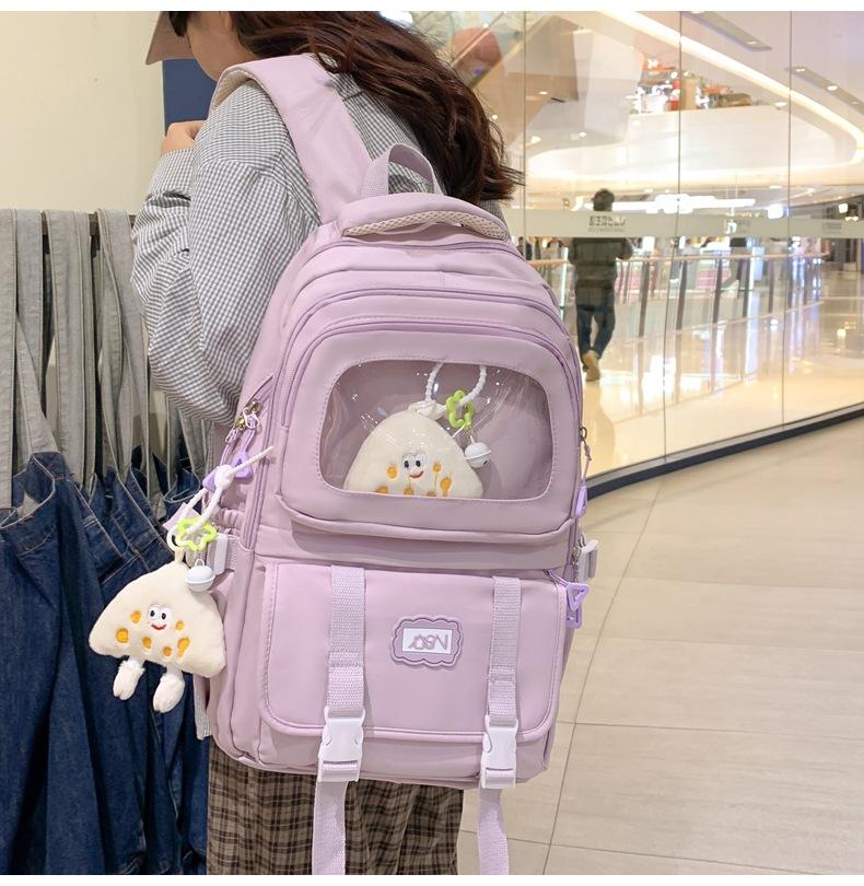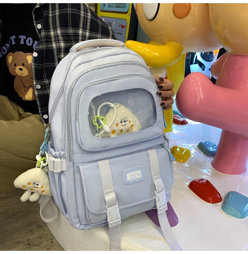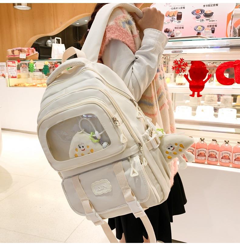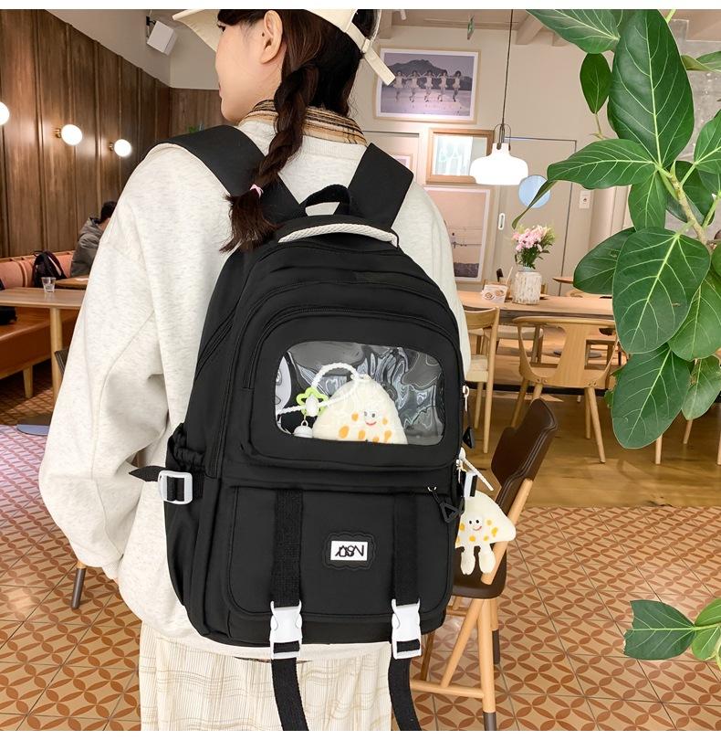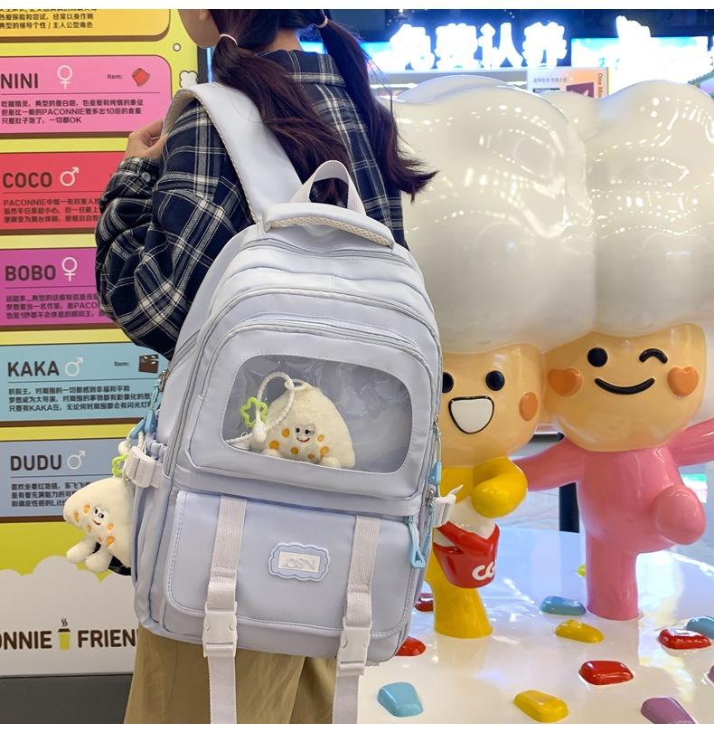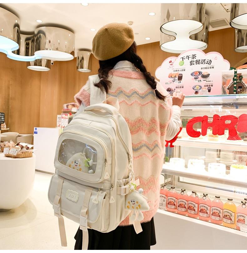 Mochila transparente de PVC de alto valor de color con costuras, gran capacidad, para estudiantes de secundaria, mochila linda, mochila de campus, pequeña y fresca, mochila escolar para mujer