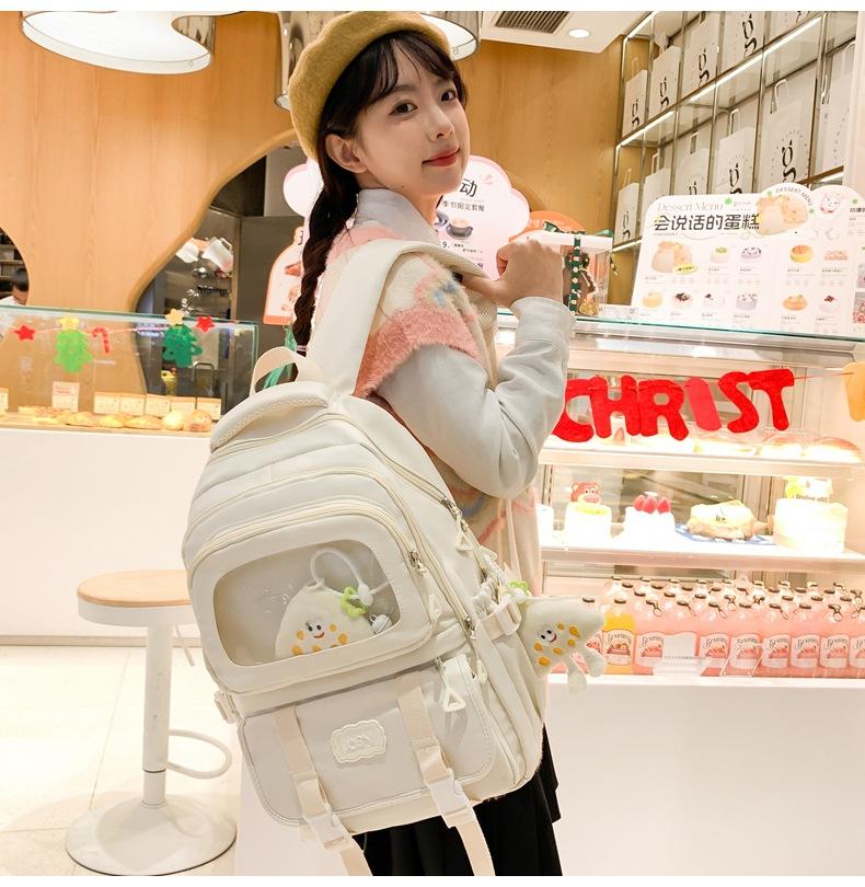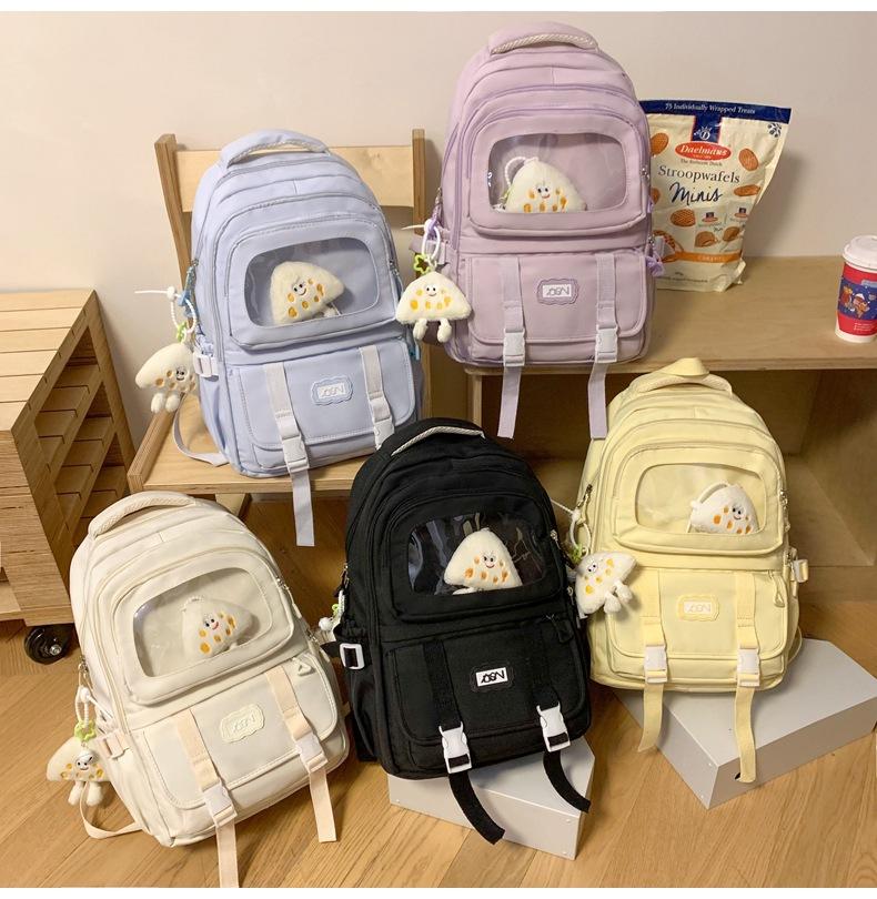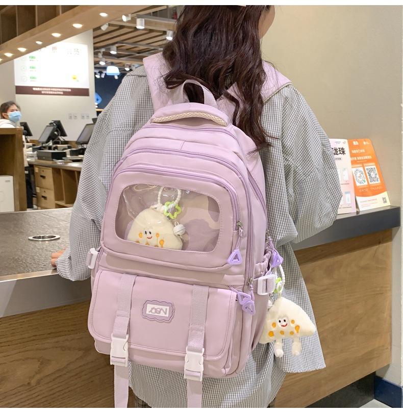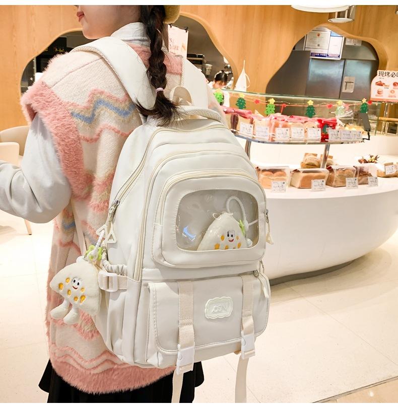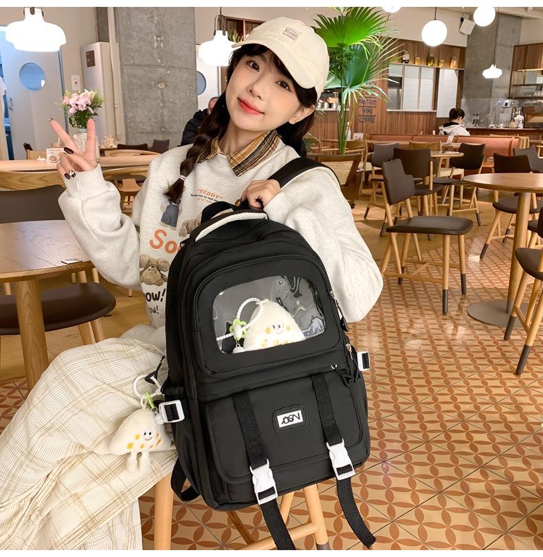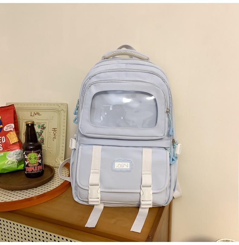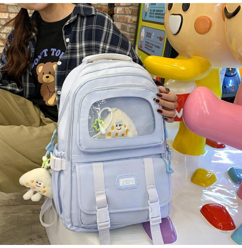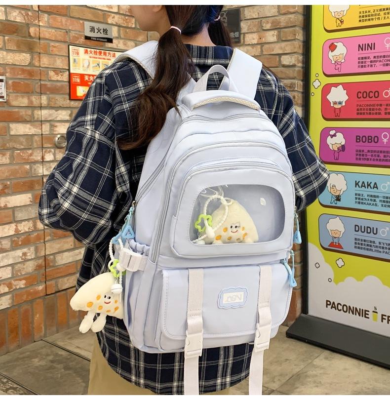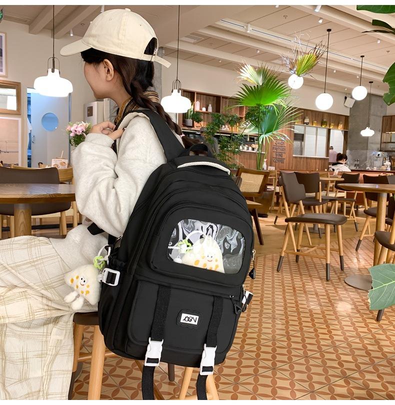 Mochila transparente de PVC de alto valor de color con costuras, gran capacidad, para estudiantes de secundaria, mochila linda, mochila de campus, pequeña y fresca, mochila escolar para mujer