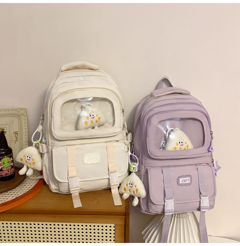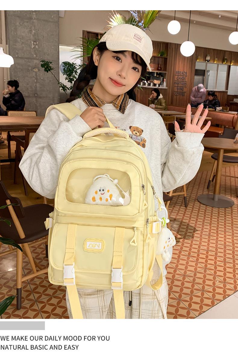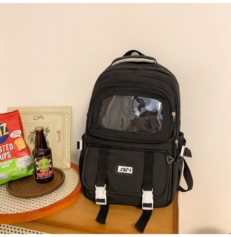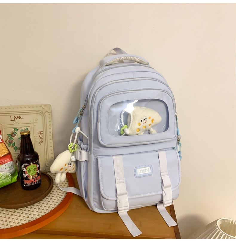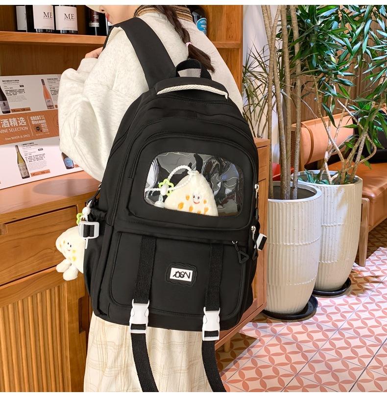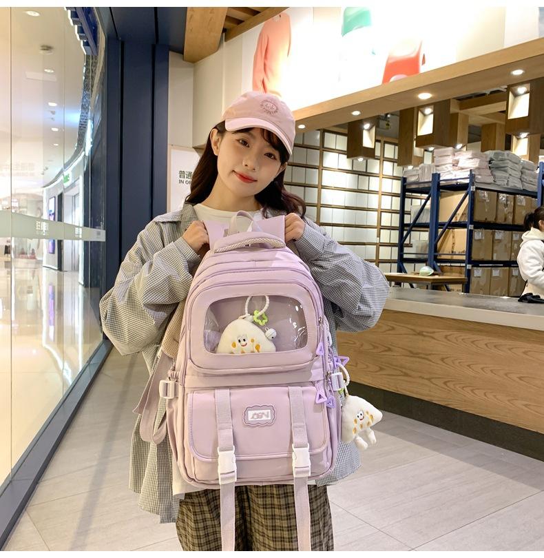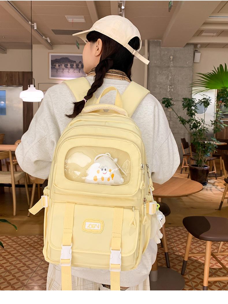 Mochila transparente de PVC de alto valor de color con costuras, gran capacidad, para estudiantes de secundaria, mochila linda, mochila de campus, pequeña y fresca, mochila escolar para mujer