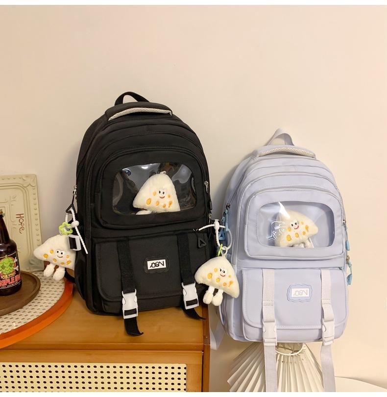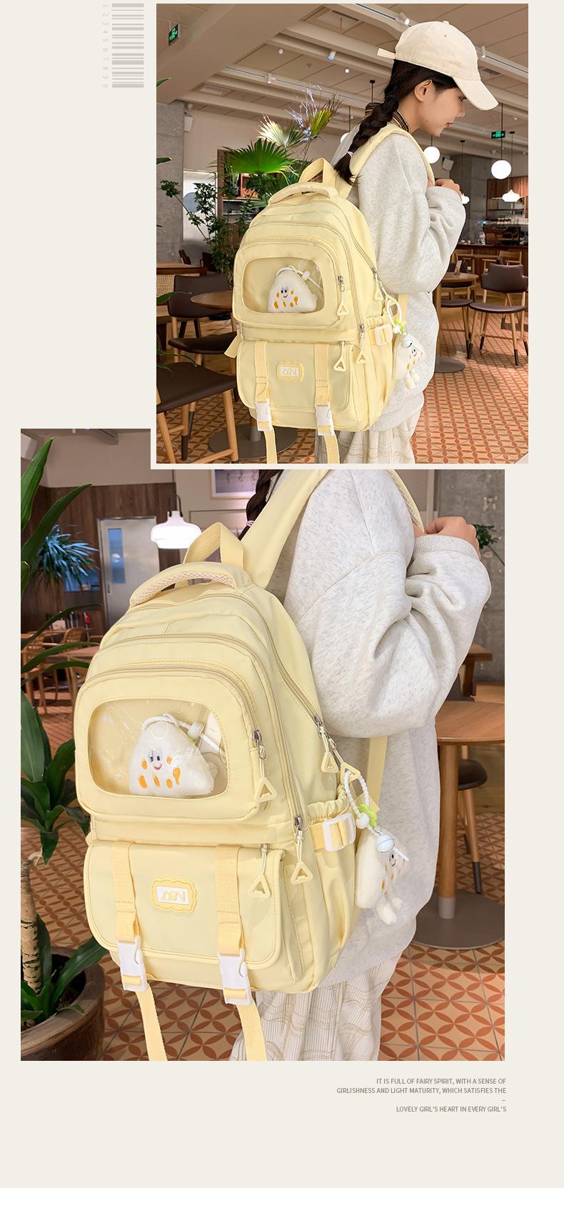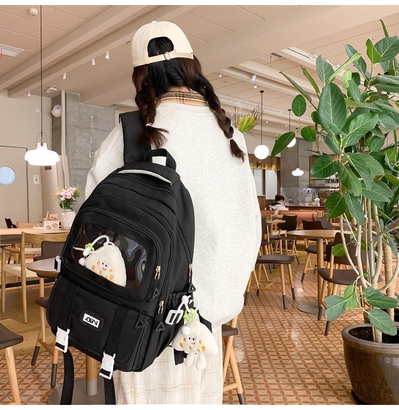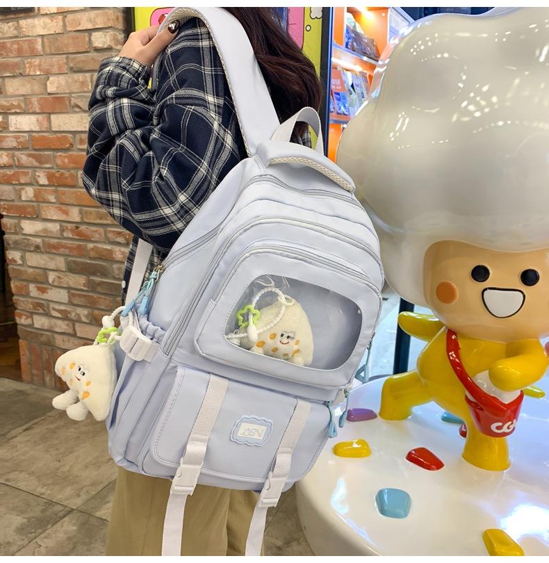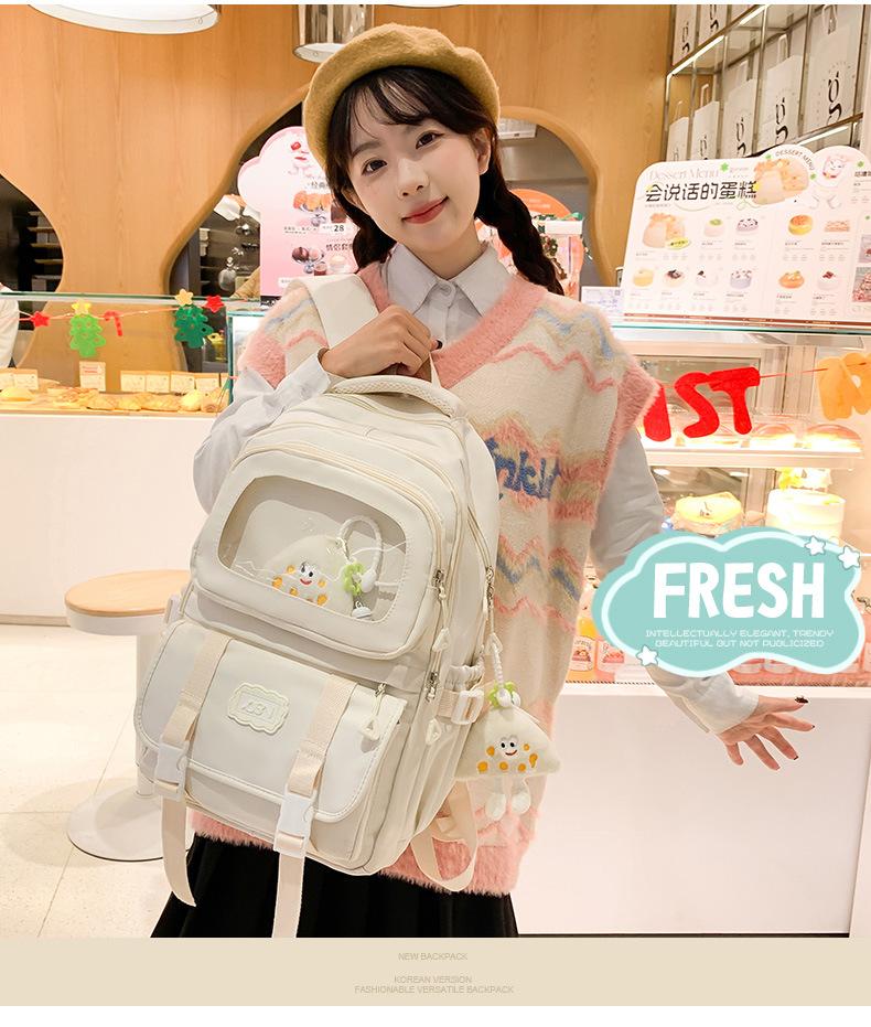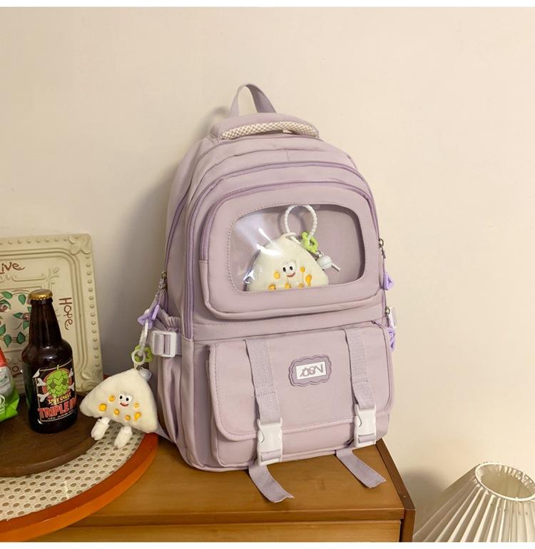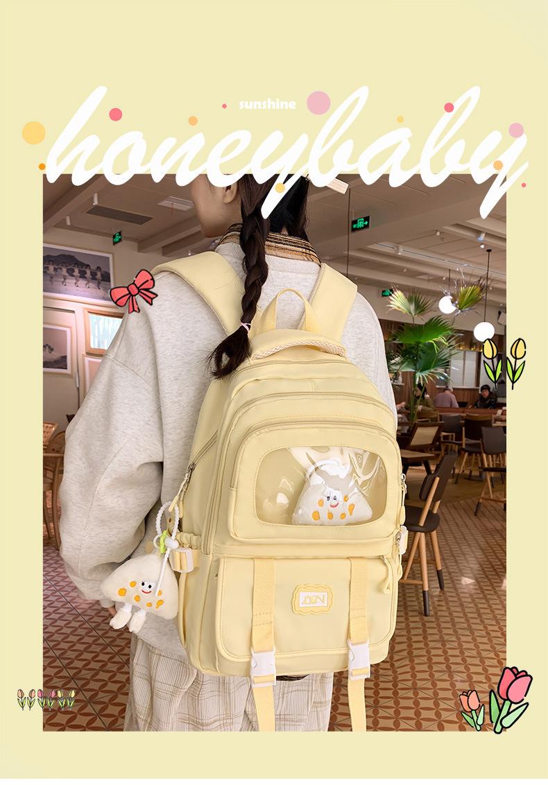 Mochila transparente de PVC de alto valor de color con costuras, gran capacidad, para estudiantes de secundaria, mochila linda, mochila de campus, pequeña y fresca, mochila escolar para mujer