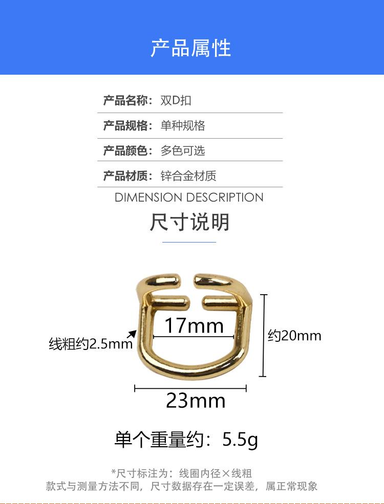 Accesorios de Herrajes para Equipaje Aleación Fundida a Presión Hebilla Doble D Abierta de Metal Hebilla Bidireccional en Forma de D Diámetro Interior 1.7cm