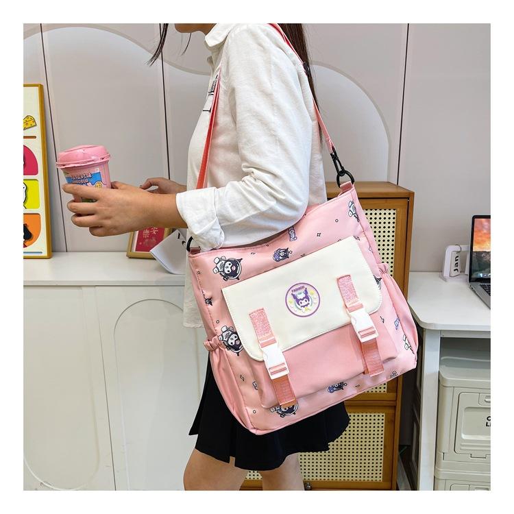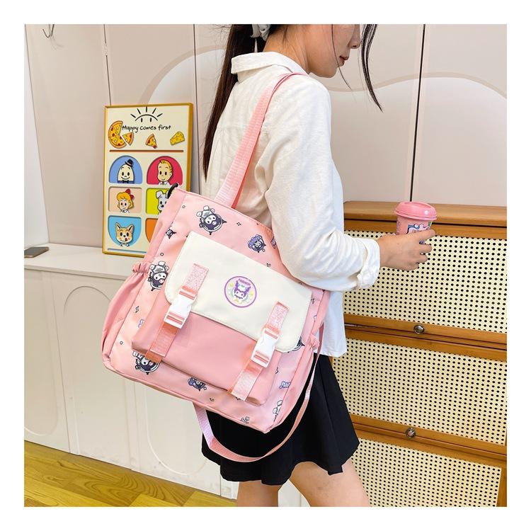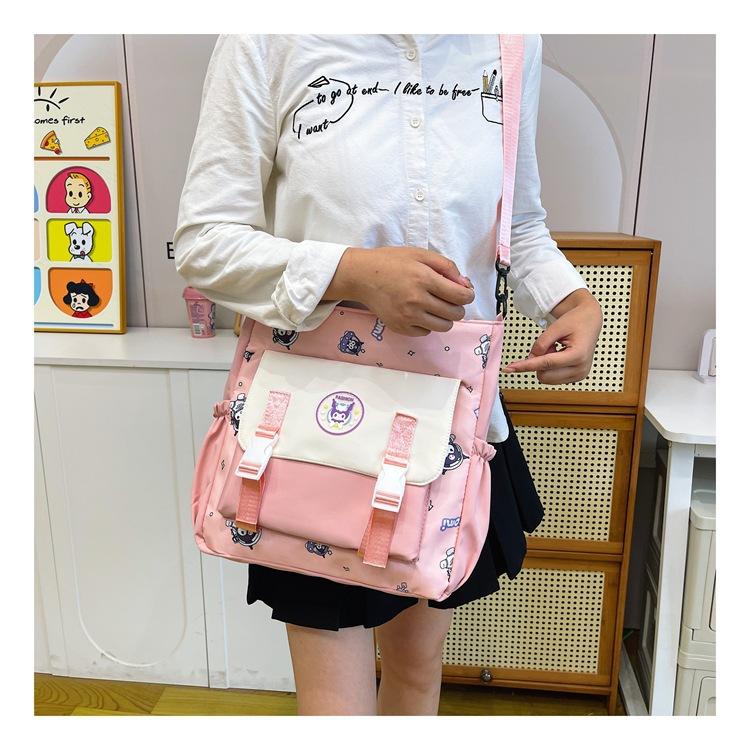 Bolso de hombro de nailon con dibujos animados para mujer, mochila escolar de gran capacidad, estilo oso, informal, para remendar, novedad de 2024