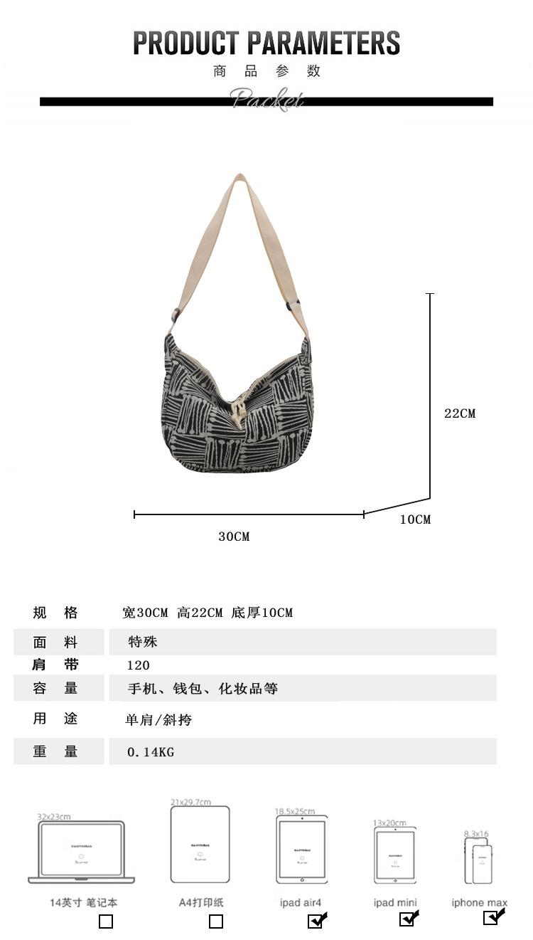 Bolso de lona para mujer, de gran capacidad, nuevo, otoño e invierno 2024, informal, combinable, bandolera de hombro, bolso de viaje de clase.