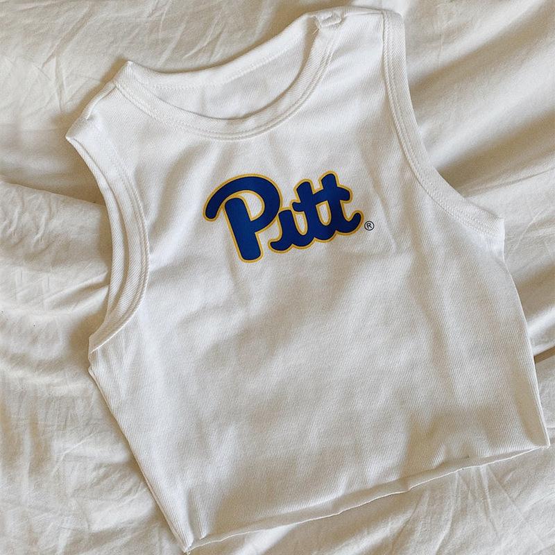Chaleco de verano corto con ombligo al descubierto, ajustado, estilo urbano, con estampado de letras transfronterizo de estilo europeo y americano.