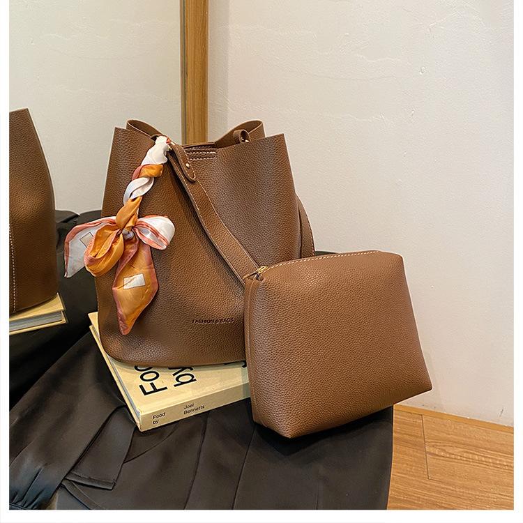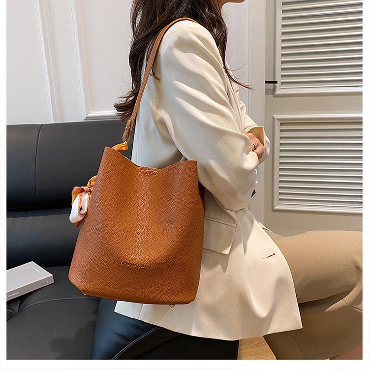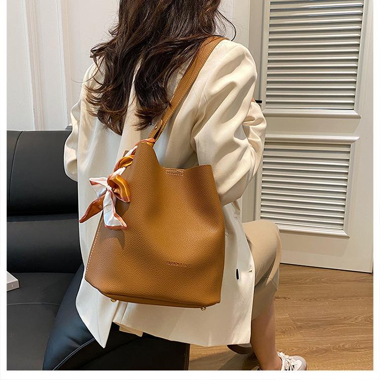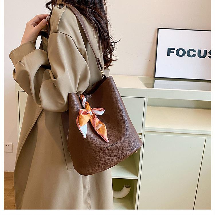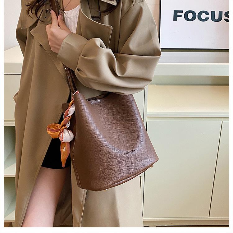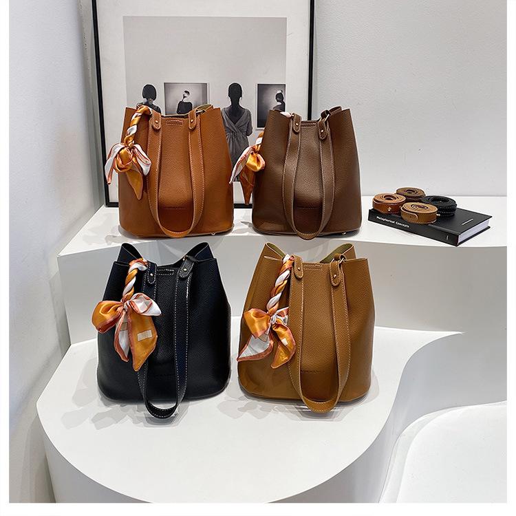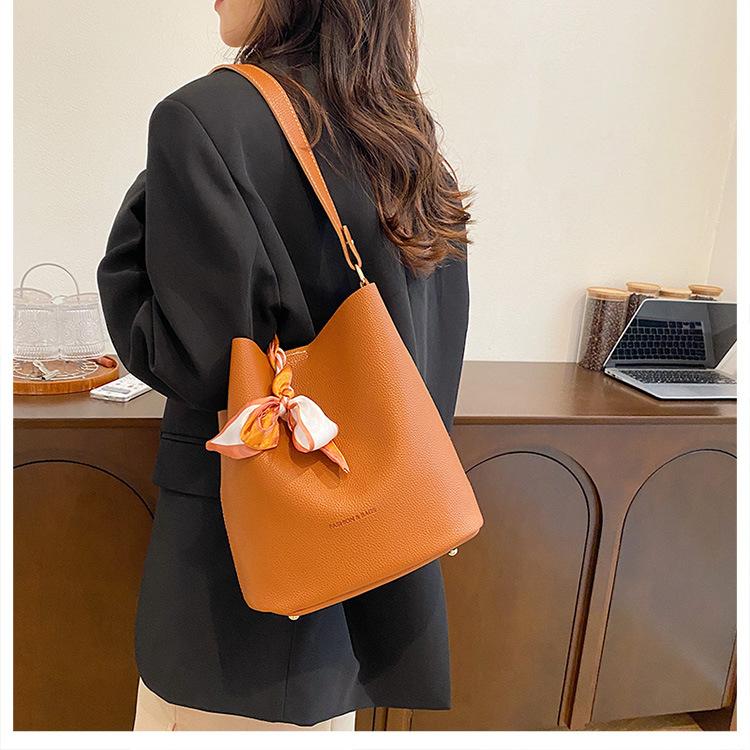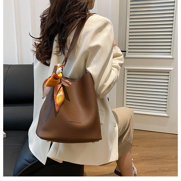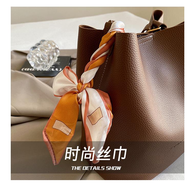 Otoño 2024 Nueva moda Bufanda de seda Bolso popular Textiles Retro Portátil Bolso bandolera tipo cubo para mujer