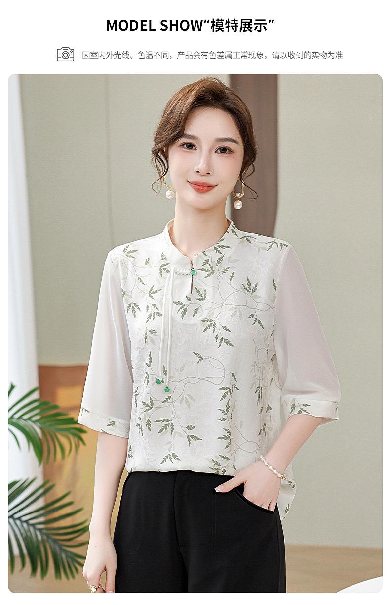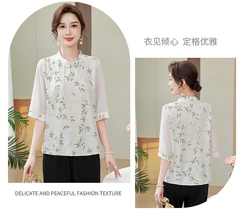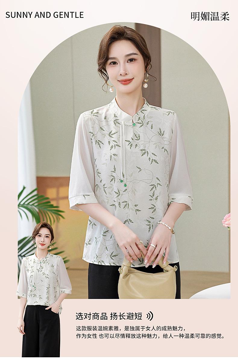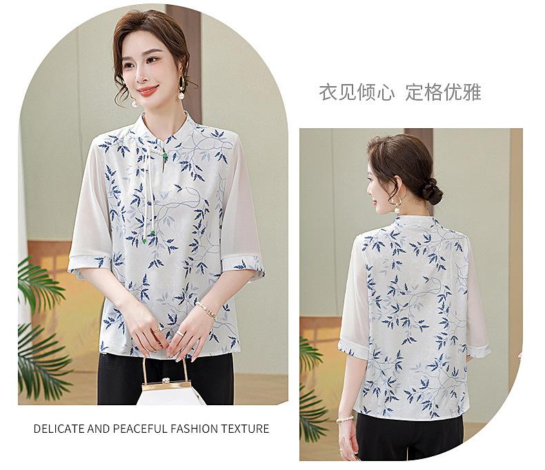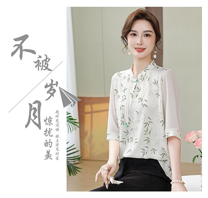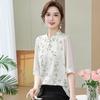 Camisa de Gasa de Verano para Madre Joven 2024 Nueva Camiseta de Manga Corta de Estilo Nacional Estilo Chino para Mujeres de Mediana Edad y Mayores