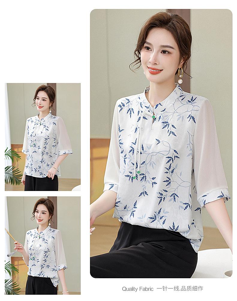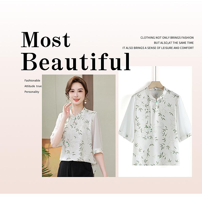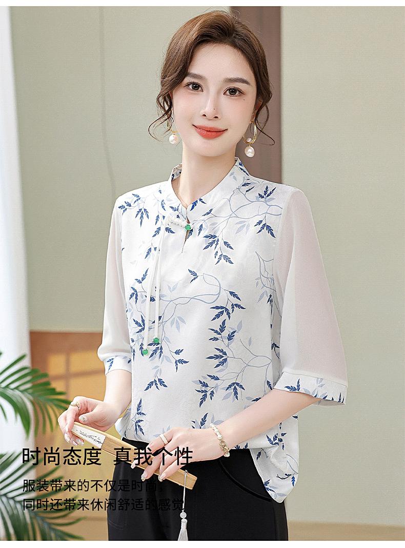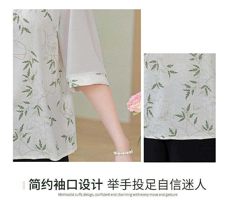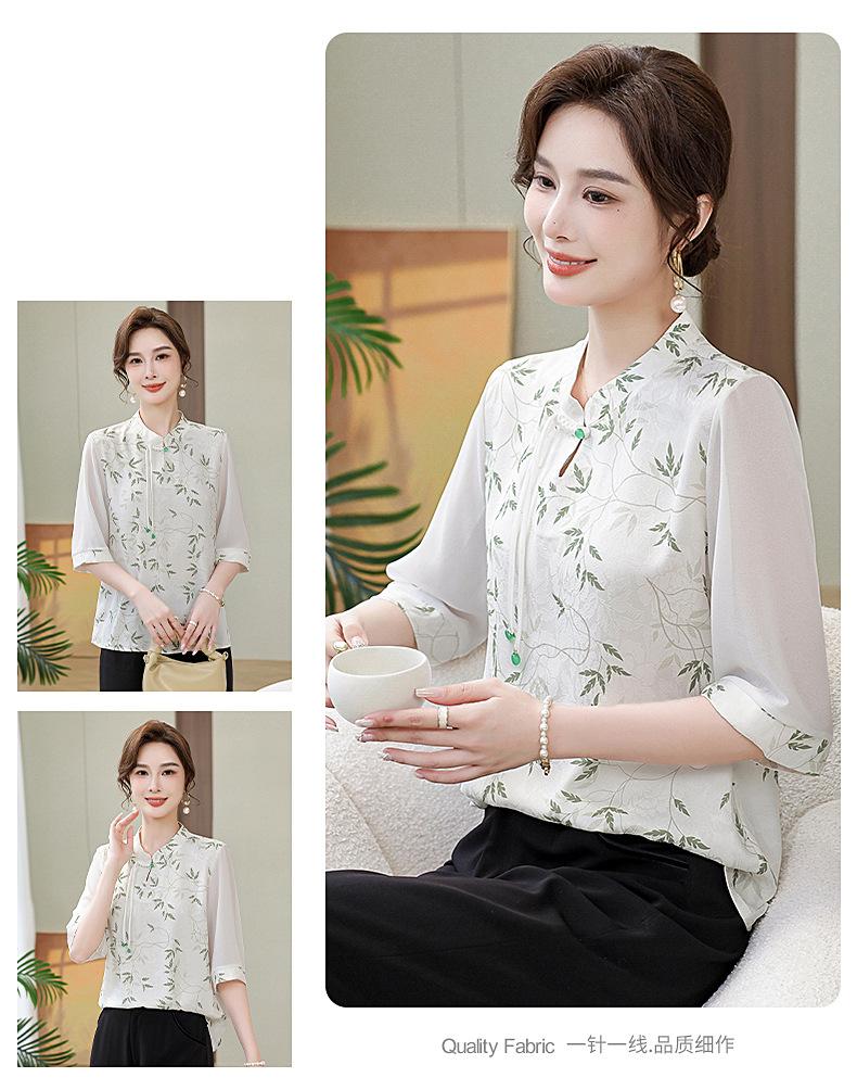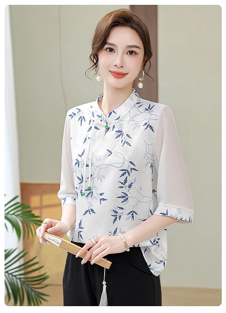 Camisa de Gasa de Verano para Madre Joven 2024 Nueva Camiseta de Manga Corta de Estilo Nacional Estilo Chino para Mujeres de Mediana Edad y Mayores