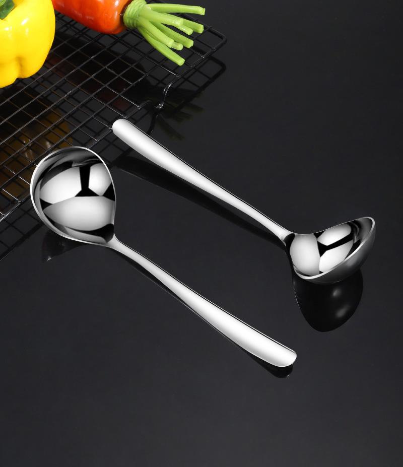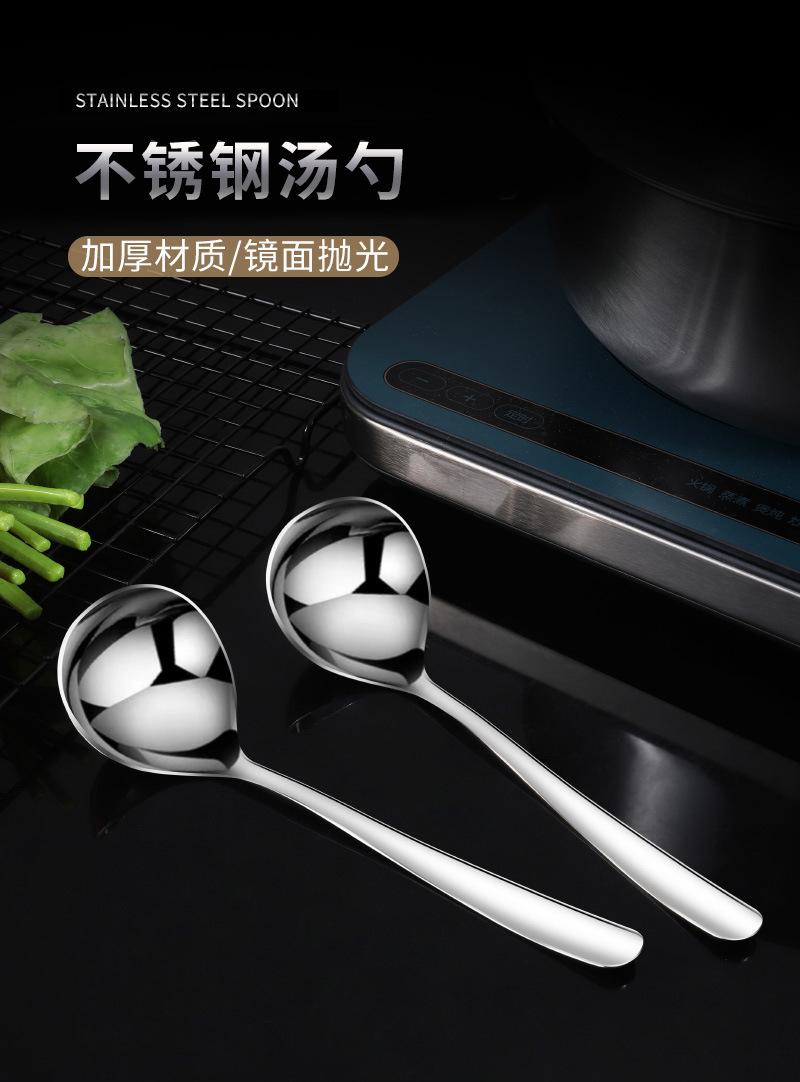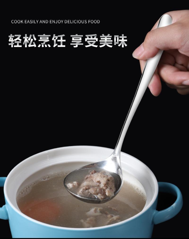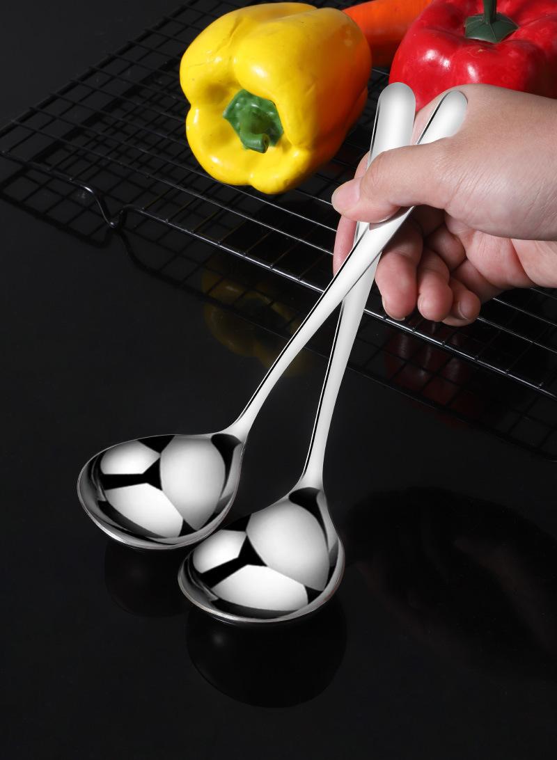 Cuchara de sopa de acero inoxidable, cuchara de cocina de mango largo, cuchara para olla caliente, cuchara de cabeza grande, cuchara grande espesa para sopa y papilla doméstica