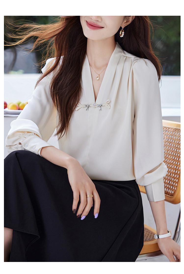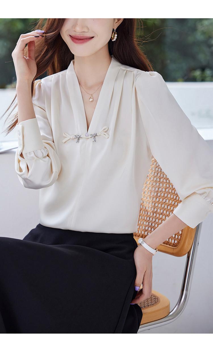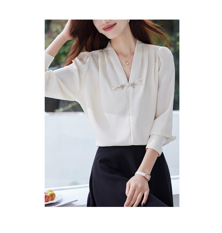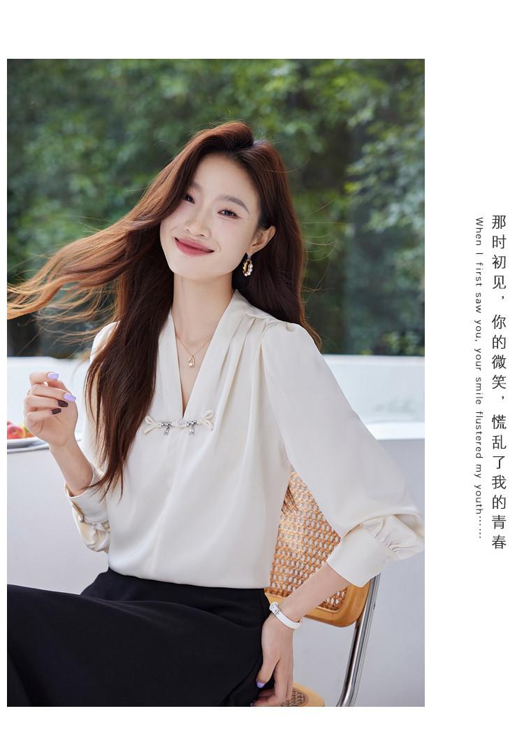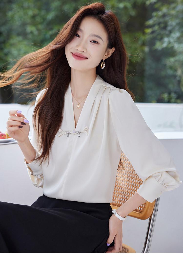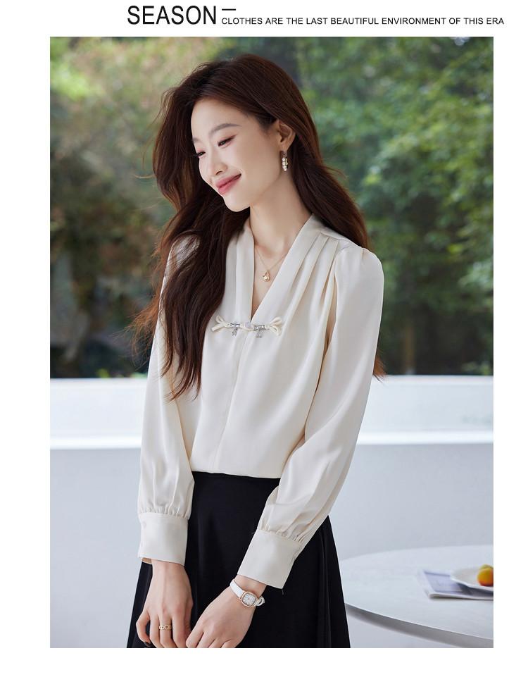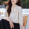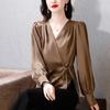 Camisa de satén de manga larga con cuello en V versátil coreana para mujer, estilo transfronterizo, otoño e invierno de 2024