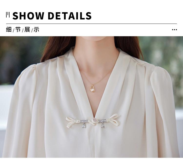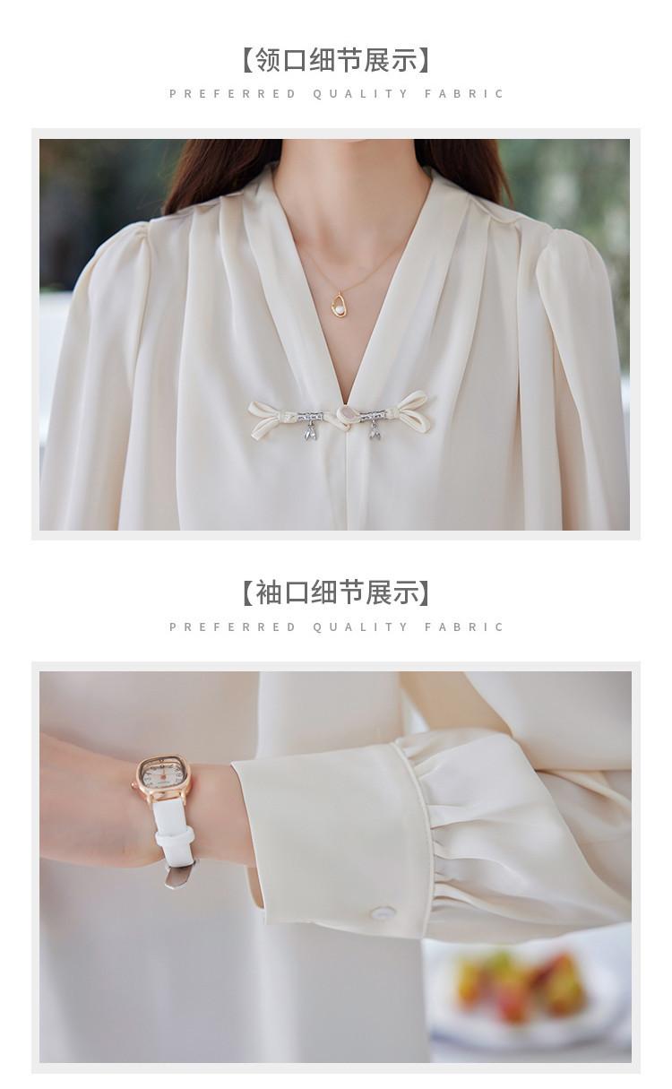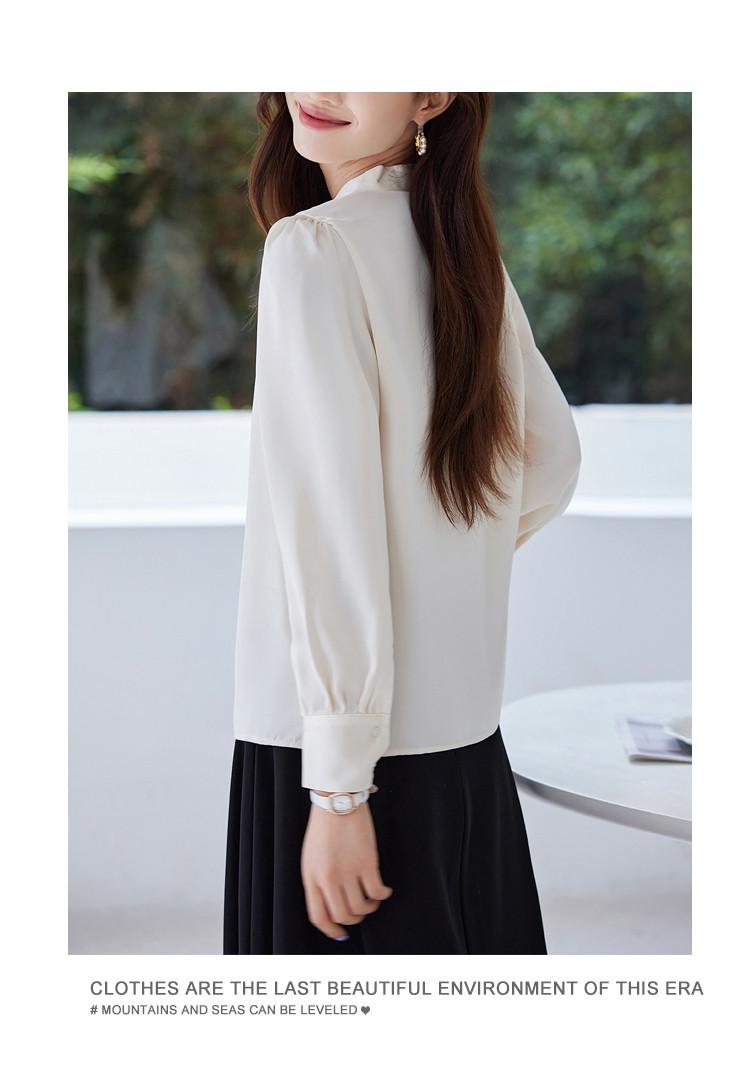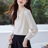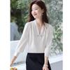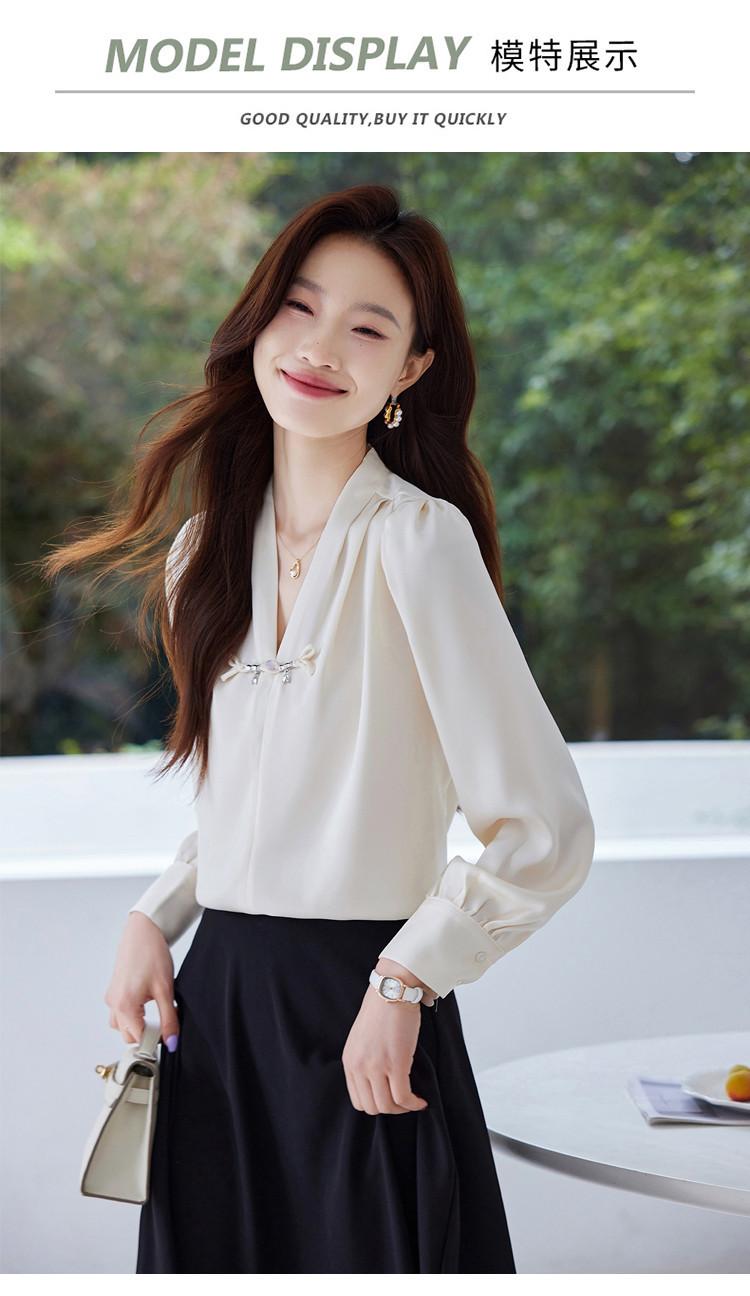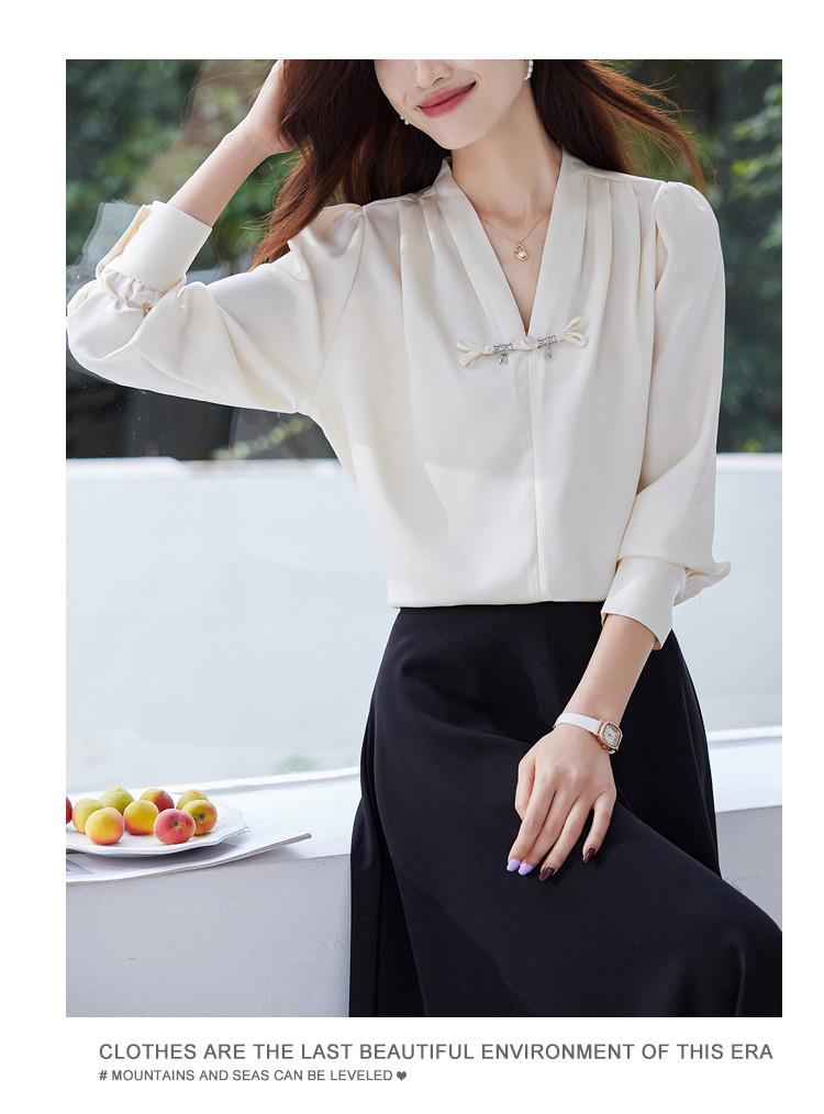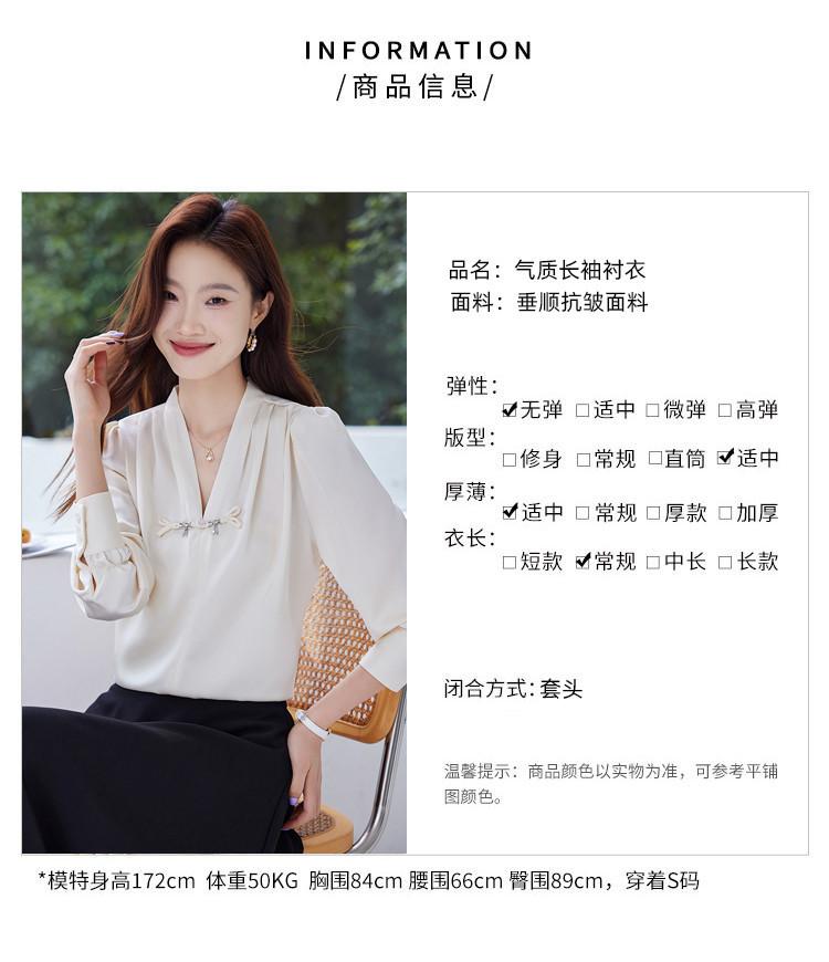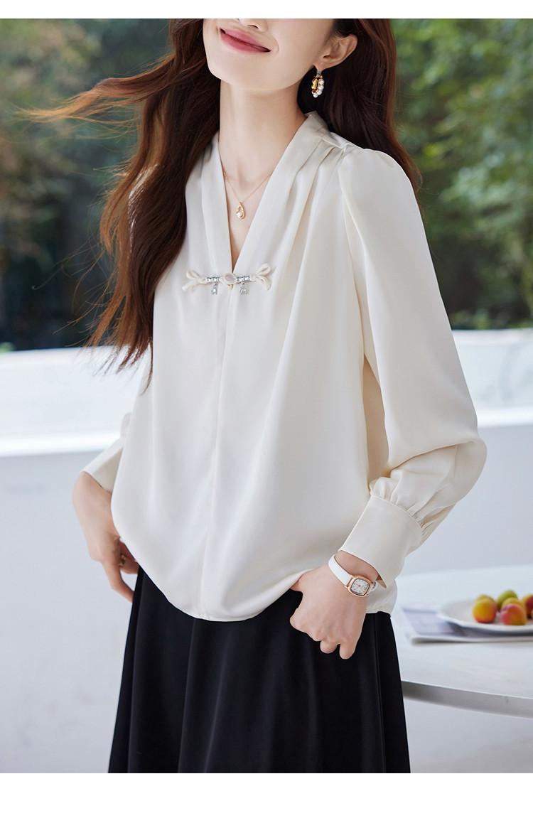 Camisa de satén de manga larga con cuello en V versátil coreana para mujer, estilo transfronterizo, otoño e invierno de 2024