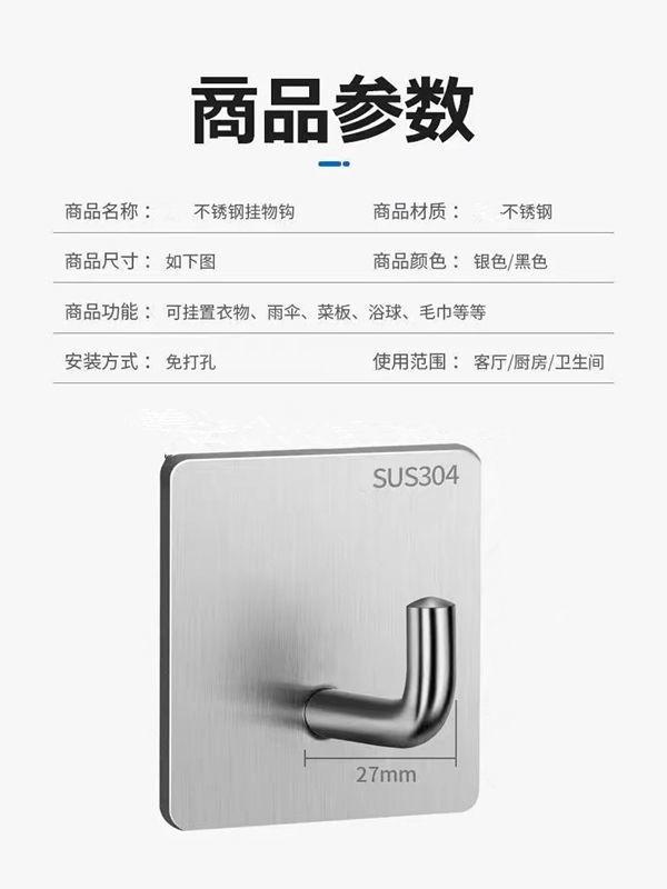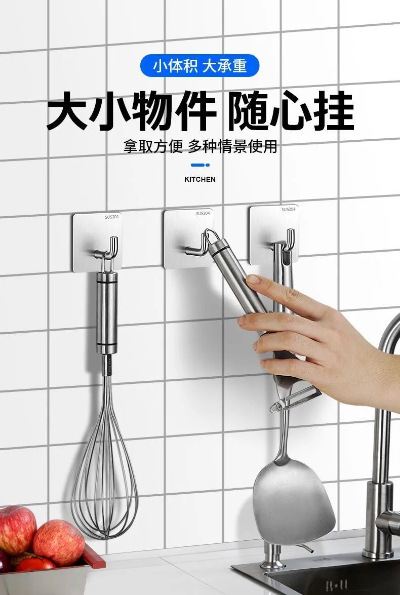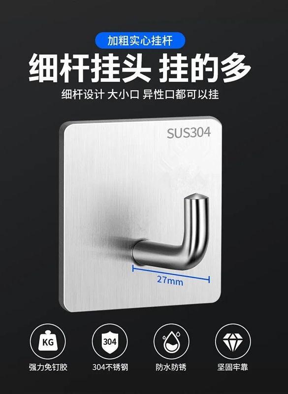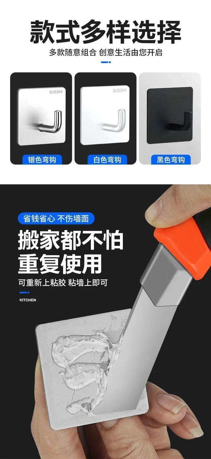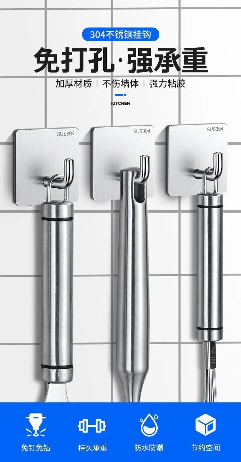 Gancho 304 adhesivo fuerte sin perforaciones para puerta de cocina y baño, adhesivo trasero sin costuras, gancho en forma de 7, gancho de carga de acero inoxidable para maletero.