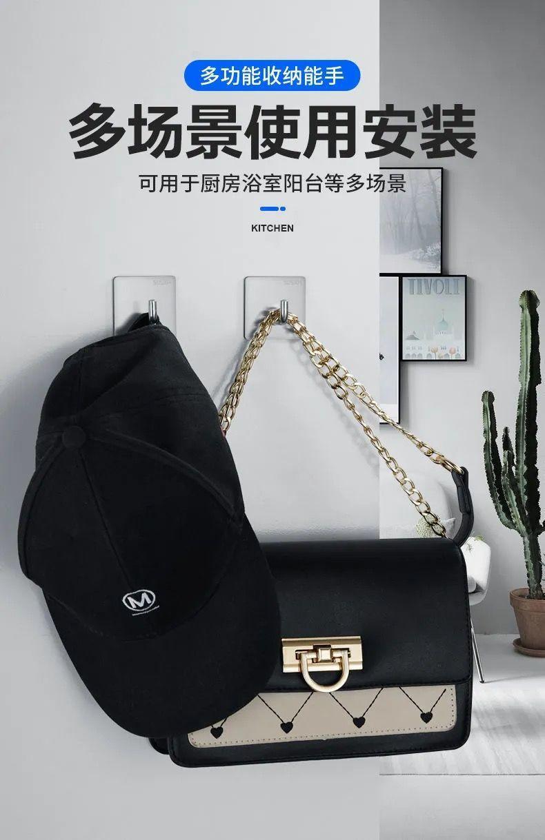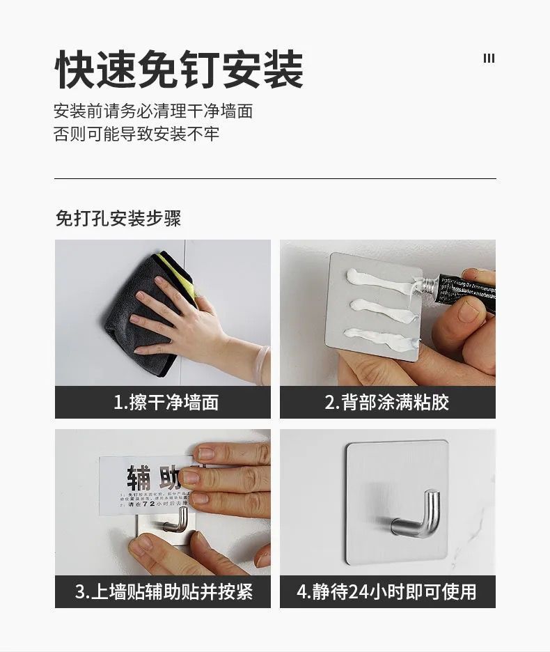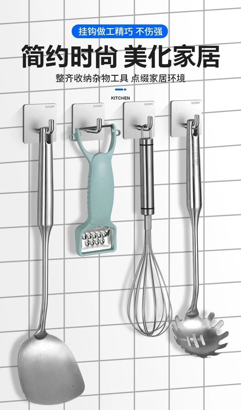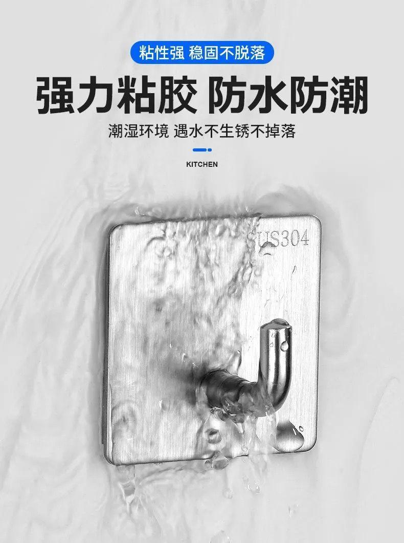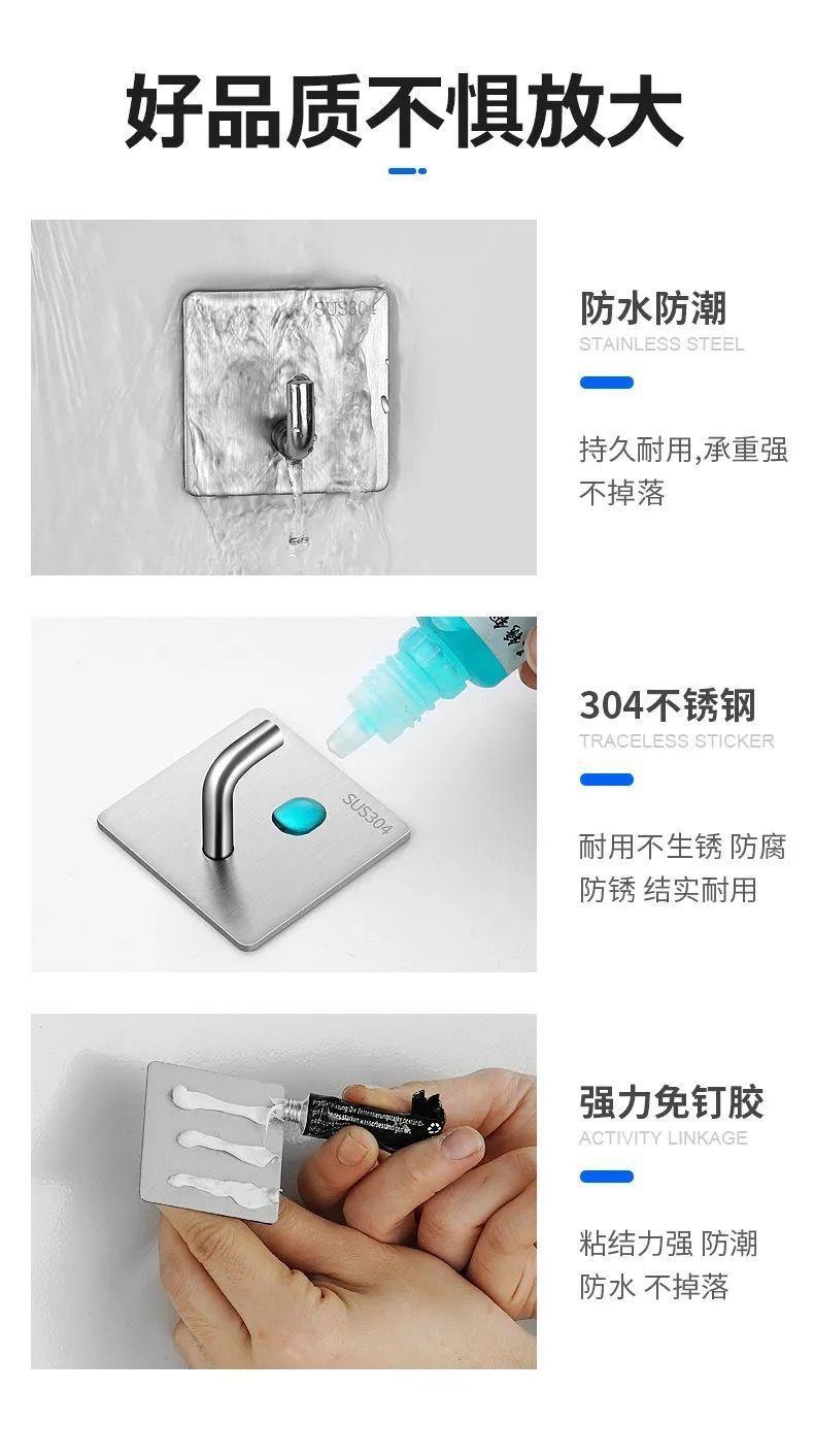 Gancho 304 adhesivo fuerte sin perforaciones para puerta de cocina y baño, adhesivo trasero sin costuras, gancho en forma de 7, gancho de carga de acero inoxidable para maletero.
