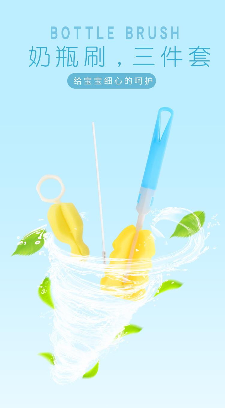 【Nombre】; Juego de tres piezas de cepillo para biberón de esponja