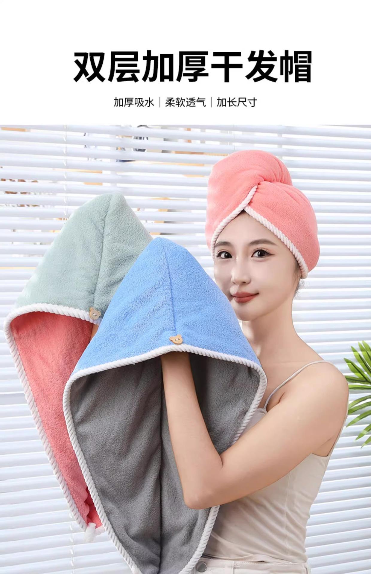 Gorro de secado de cabello grueso de doble capa para mujer, bolsa de secado rápido con gran capacidad de absorción de agua, toalla para lavar el cabello, nuevo estilo de gorro de ducha tipo turbante.