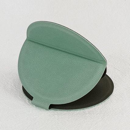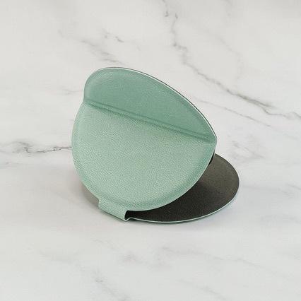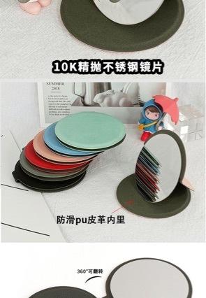Compra Espejo de maquillaje portátil redondo de acero inoxidable, espejo pequeño plegable de escritorio de PU, con logotipo, disponible al por mayor. al por mayor en Joom.pro