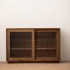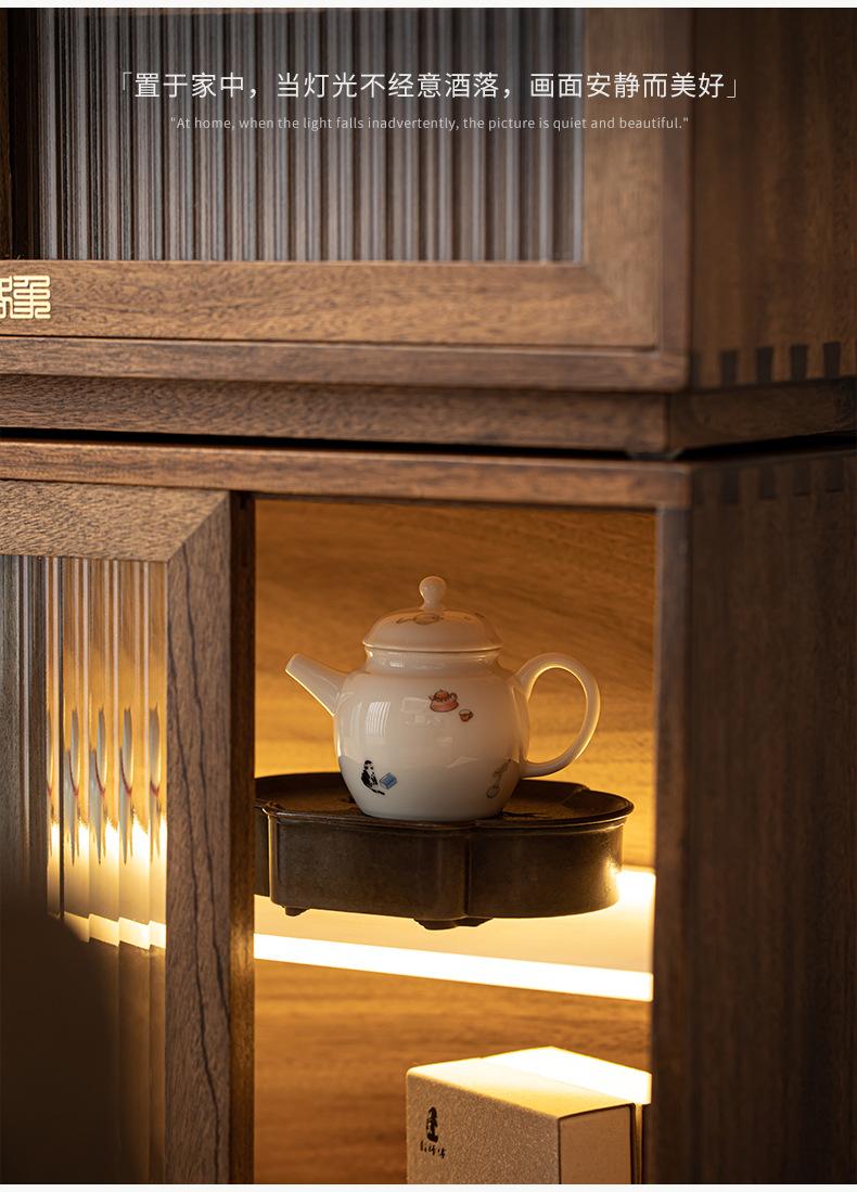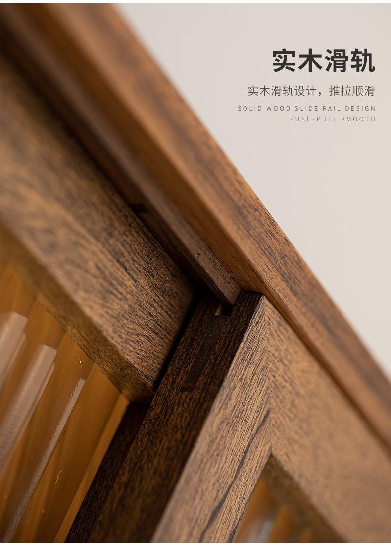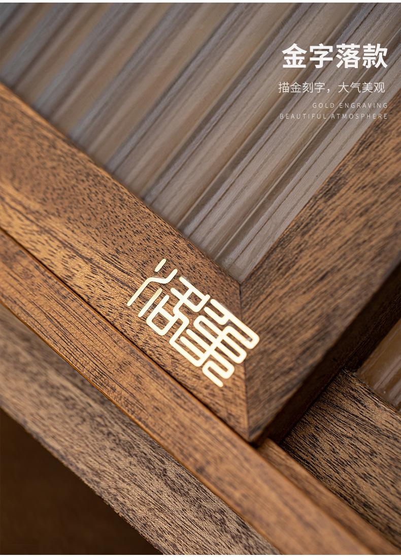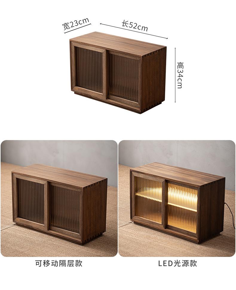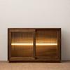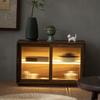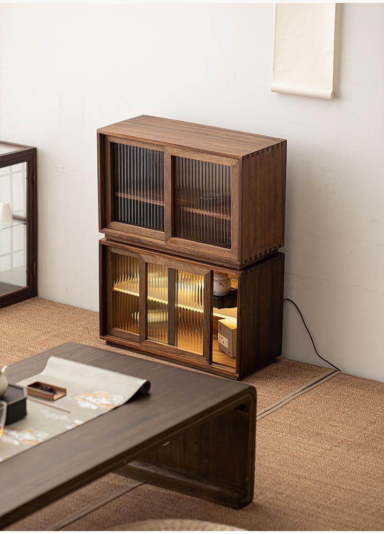Gabinete de almacenamiento de escritorio de nogal con lámpara de inducción y puerta corrediza a prueba de polvo. Nuevo gabinete de almacenamiento de estilo chino, juego de té, estante para guardar tazas.