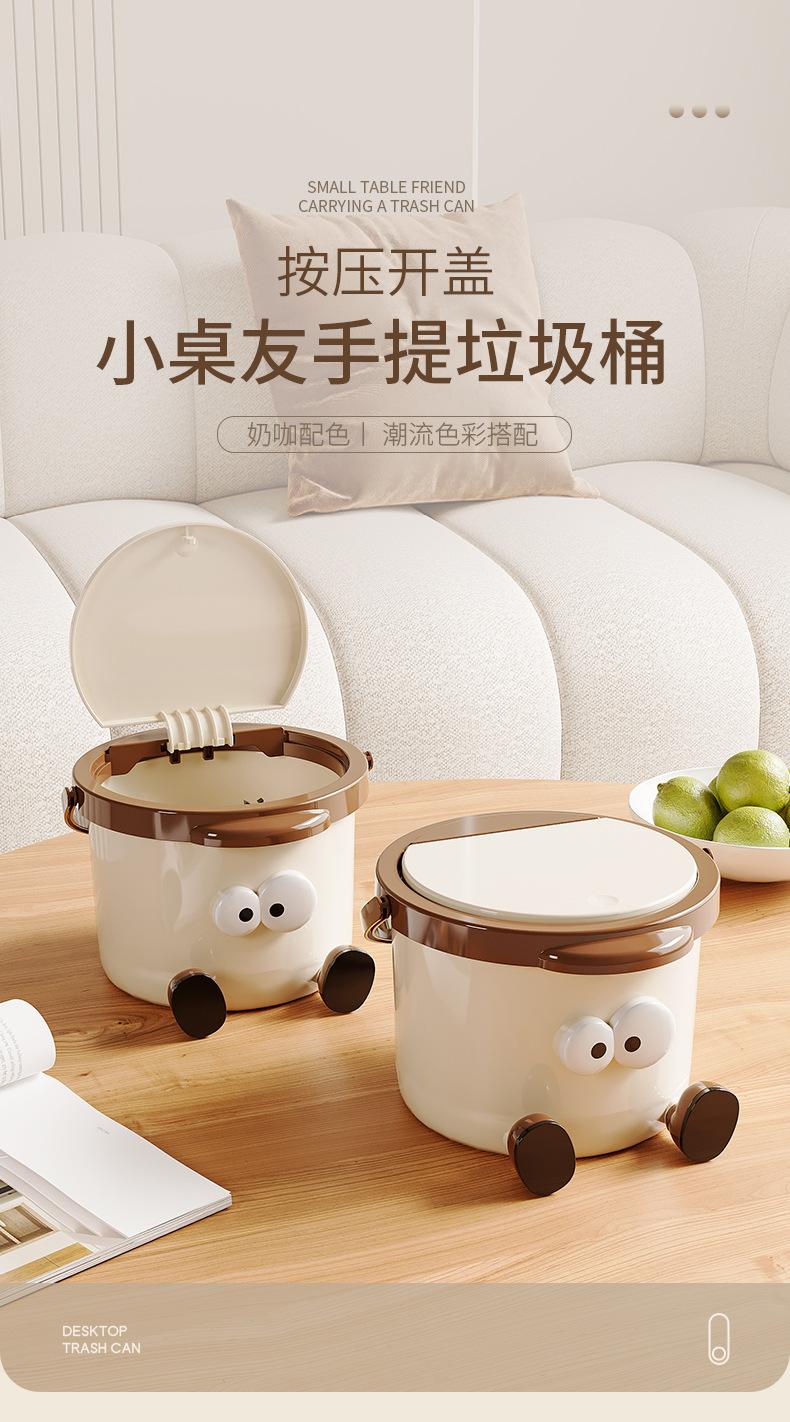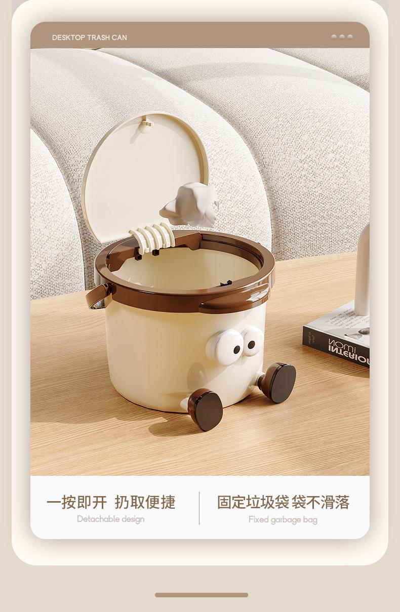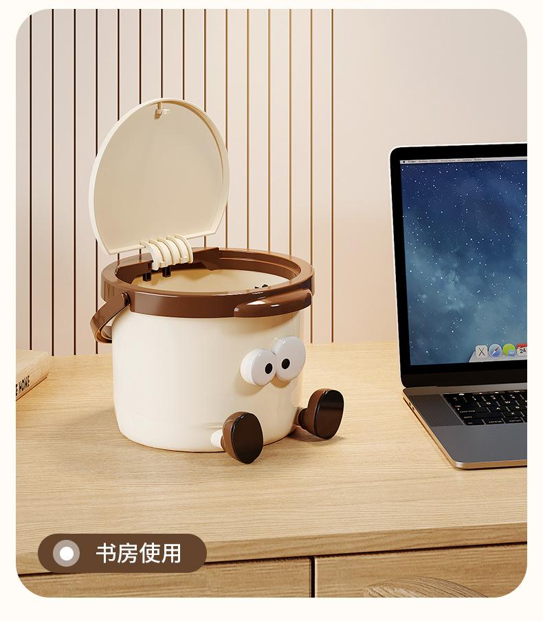 Papelera portátil de escritorio con tapa abierta, creativa, para dormitorio, sala de estar, gran capacidad, con dibujos animados