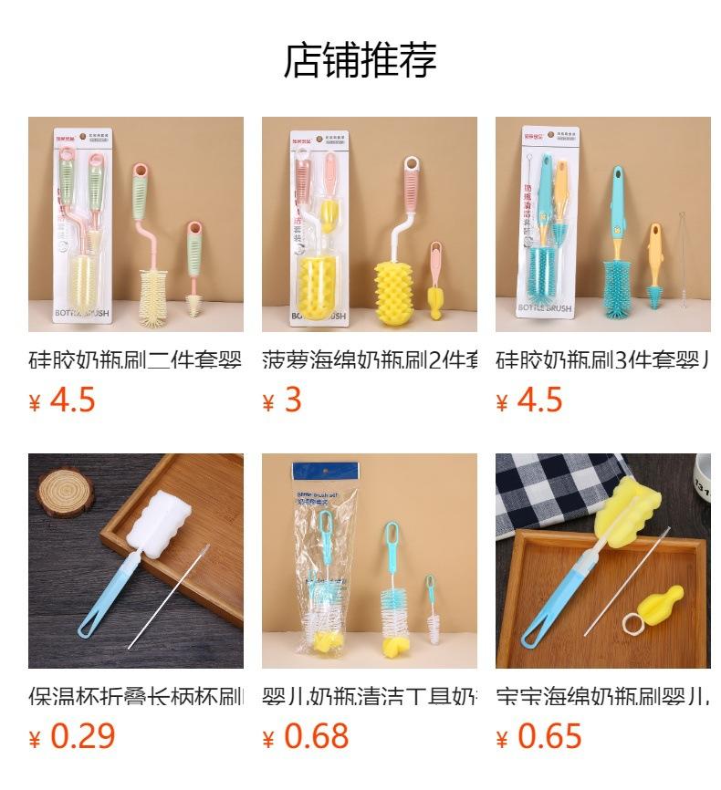 Tamaño del cepillo para biberones: longitud total 29 cm, ancho de la esponja 6.3 cm; tamaño del embalaje: longitud 18 cm, ancho 7 cm