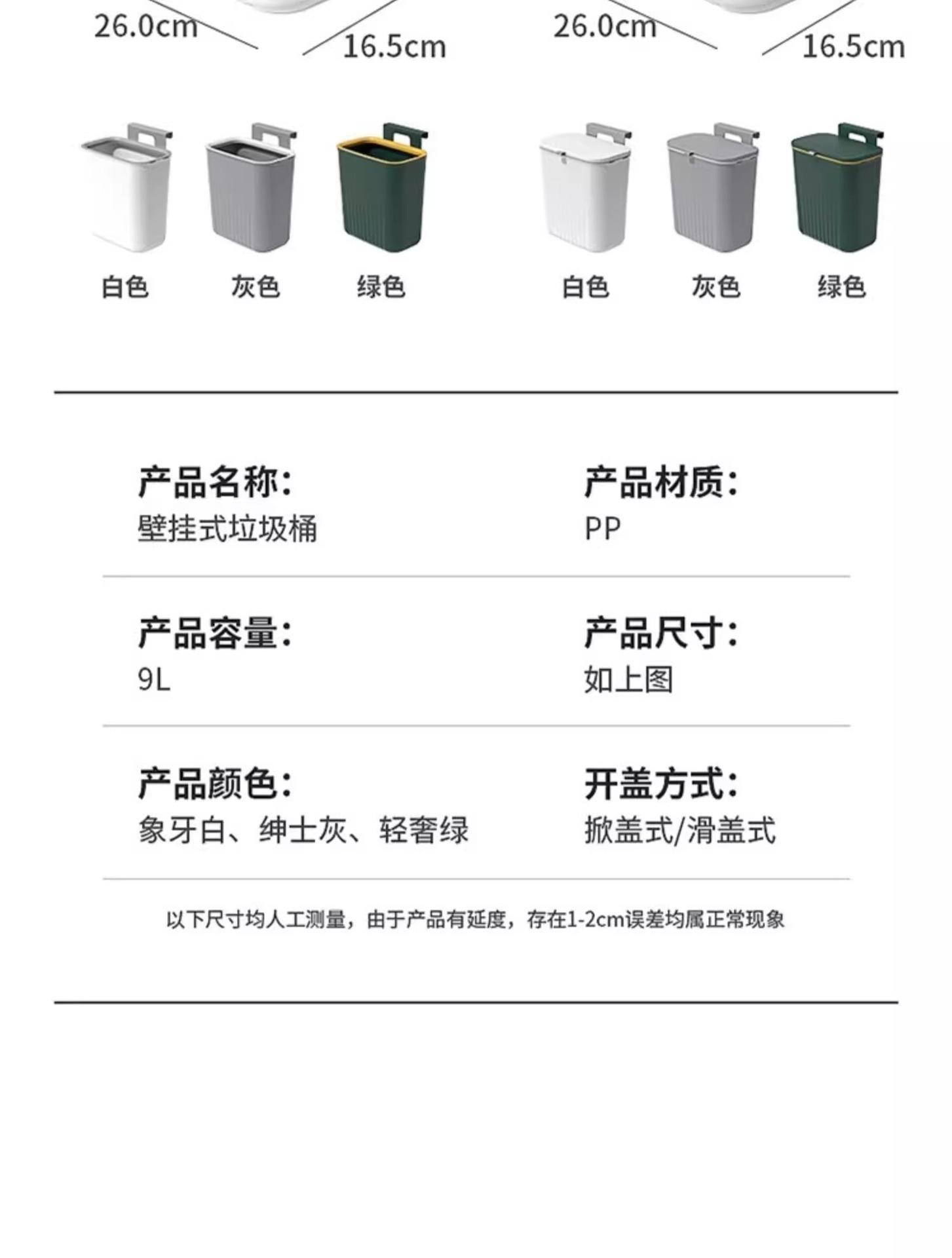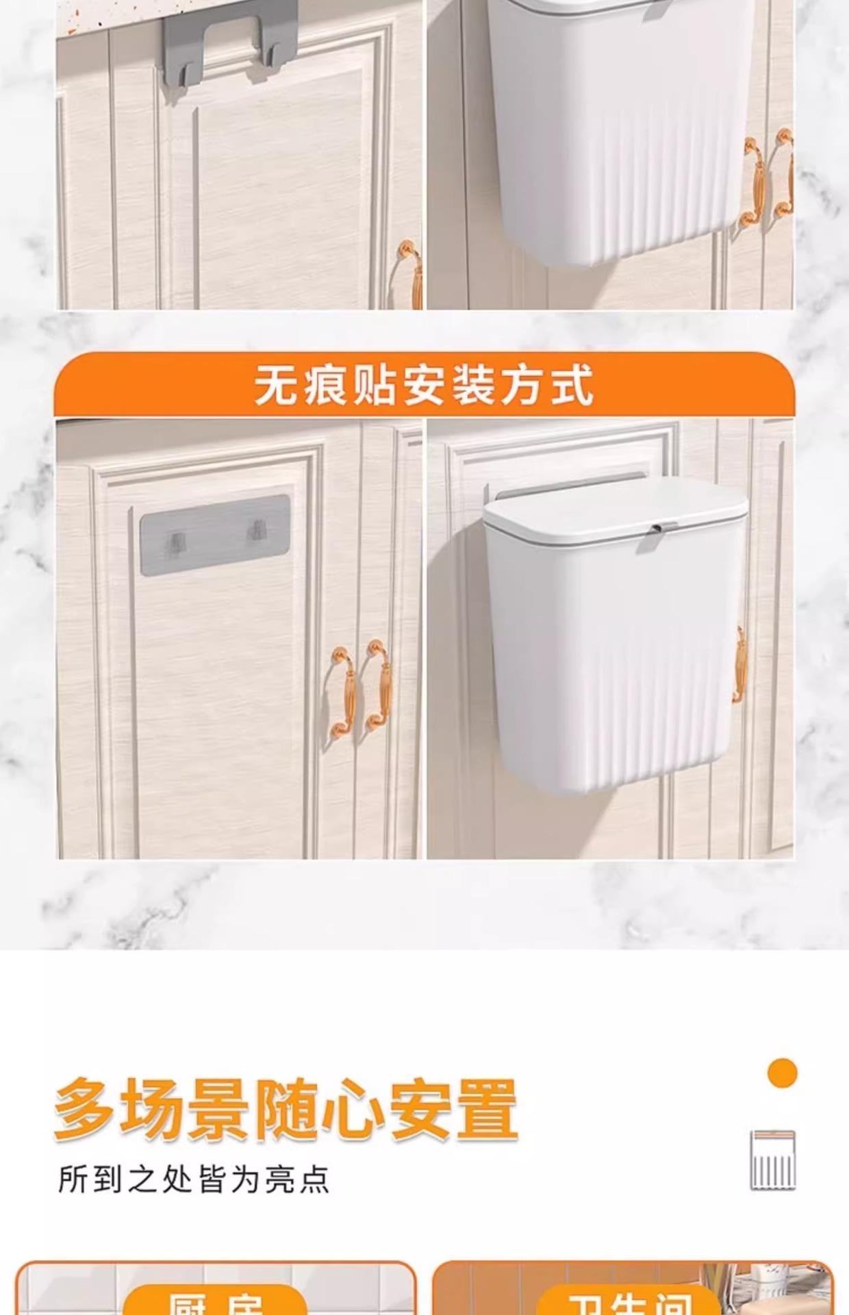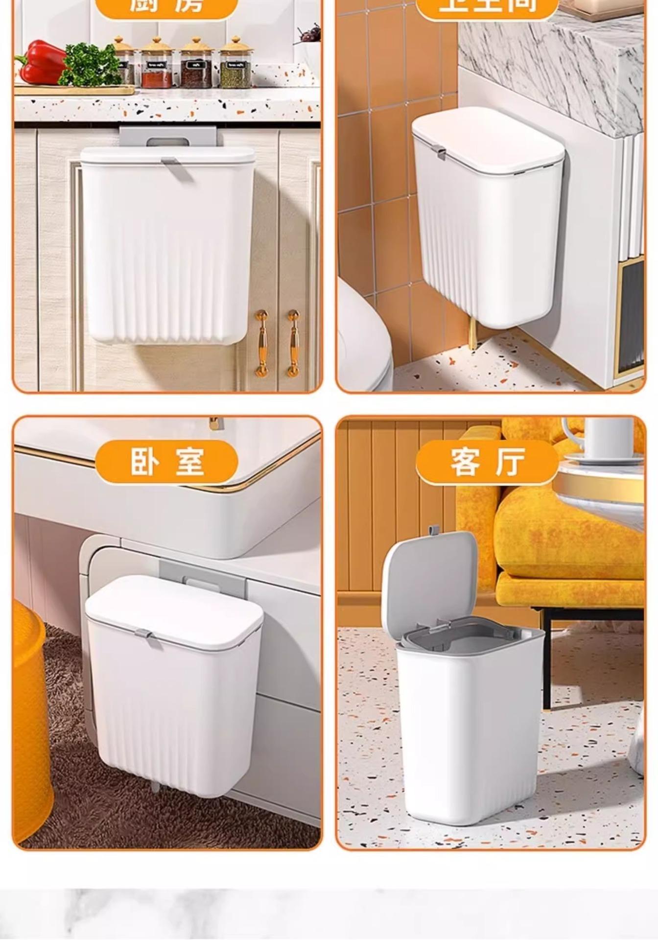 Cubo de basura para cocina, inodoro de pared con tapa, cubo de basura colgante para baño y sala de estar