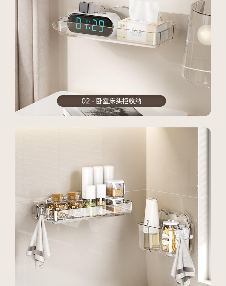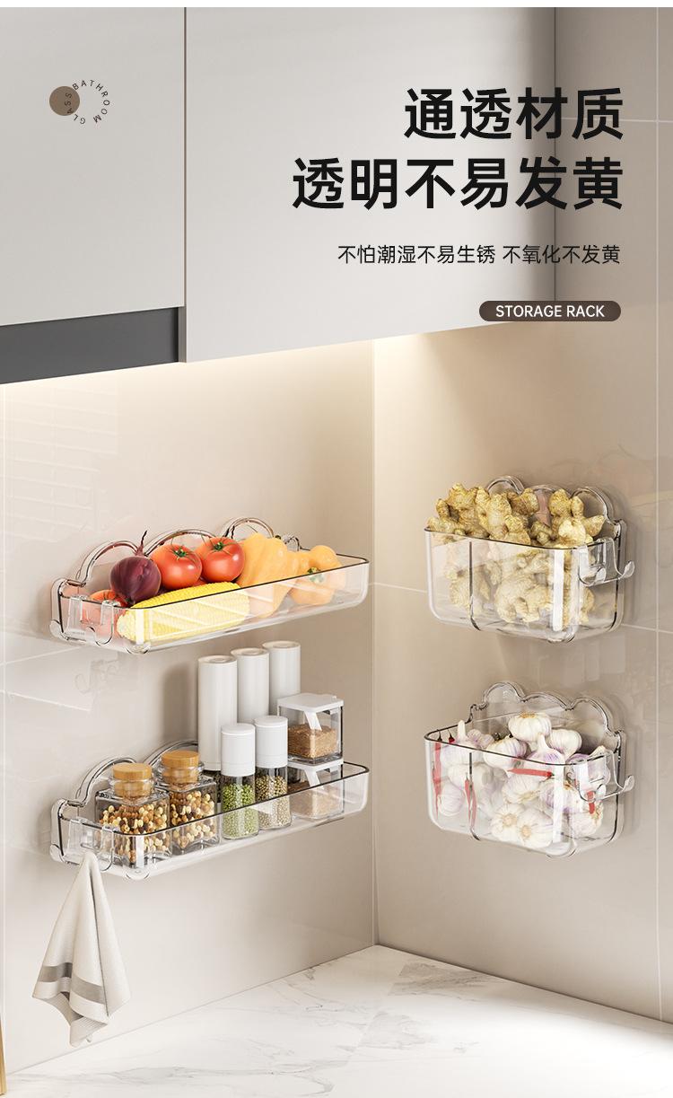 Compra Estante de baño transparente alto, para colgar en la pared, sin perforaciones, para lavar platos, caja de almacenamiento para cocina al por mayor en Joom.pro