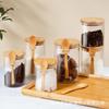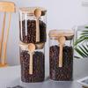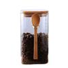 Frasco de Almacenamiento de Vidrio con Cuchara Frasco para Té Tapa de Bambú Cuadrado Vidrio Borosilicatado Alto Cuchara de Madera Frasco Sellado Frasco de Almacenamiento